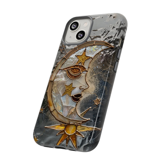 Cosmic Moon & Stars Stained Glass Starry Night Phone Case