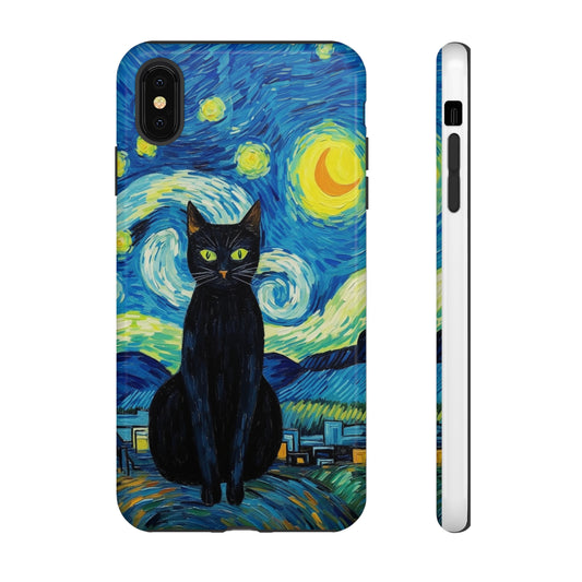 Starry Night Van Gogh Black Cat iPhone, Samsung Galaxy, Google Pixel Case | Embrace Artistic Whimsy and Feline Charm