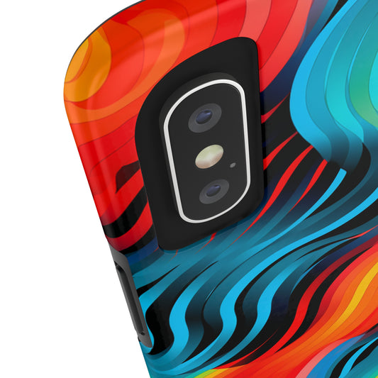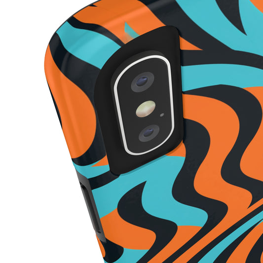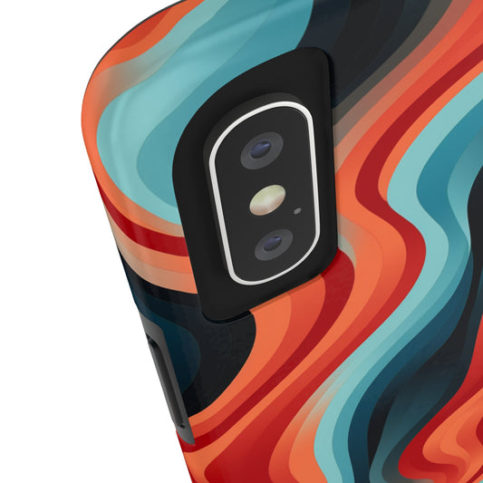 Abstract Wave Pattern Black, Blue, and Orange Psychedelic Tough iPhone Case | Embrace Vibrant Style and Reliable Protection