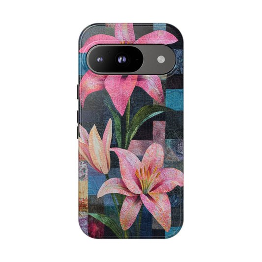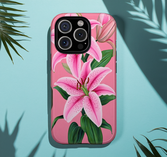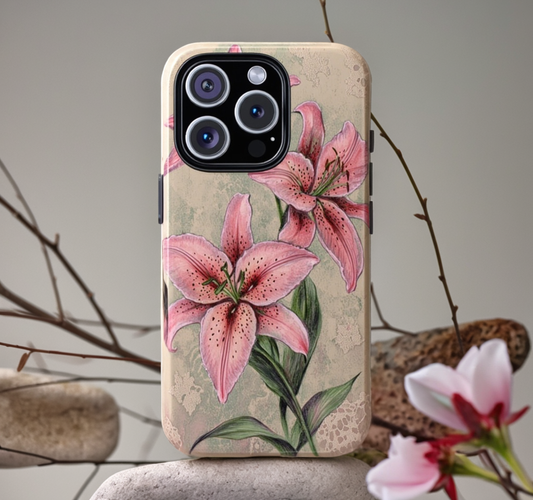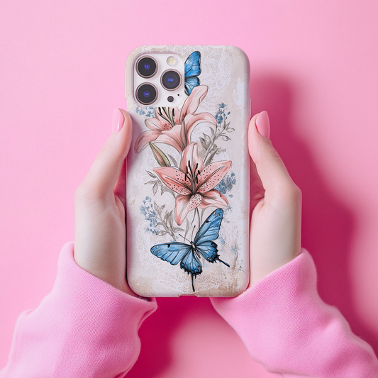 Pink Tiger Lilies and Blue Butterflies Phone Case
