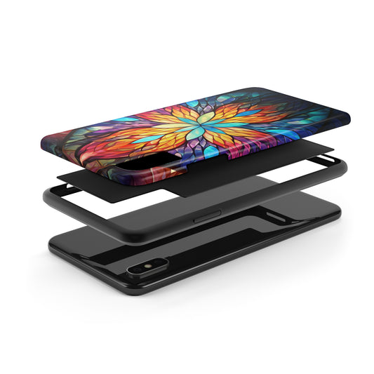 Stained Glass Tough iPhone Case | Trippy Psychedelic Colorful Flowers Floral Aesthetic Retro iPhone 14 Plus 13 12 7 8 Se Trendy Hippie Boho
