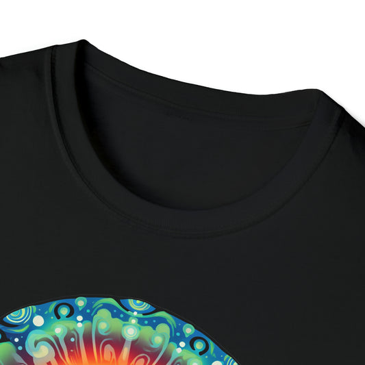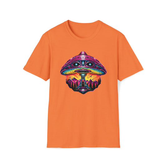 Trippy UFO Galactic Tee - Unisex Cosmic Alien Encounter T-Shirt, Vibrant Space Design