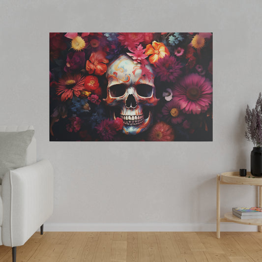 Psychedelic Sugar Skull and Flowers | Vibrant Stretched Canvas Print