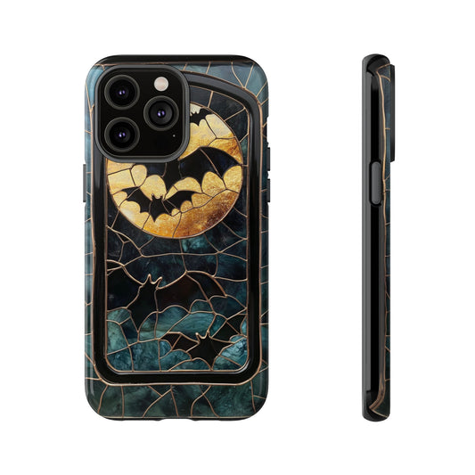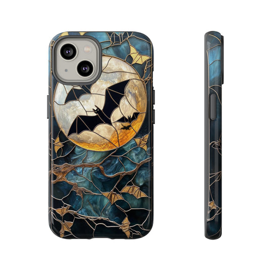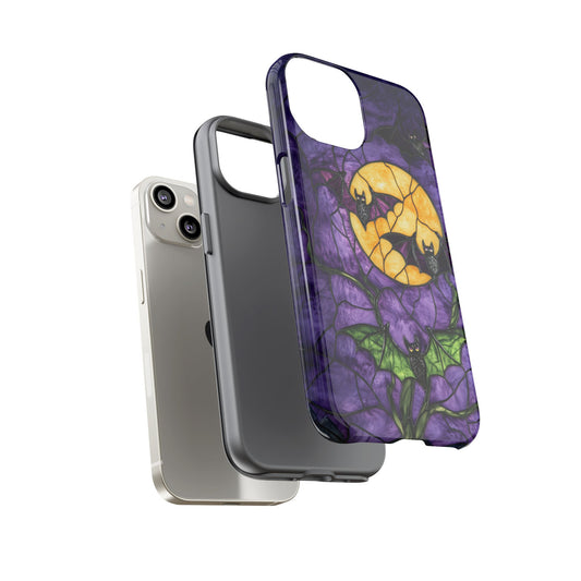 Halloween Phone Case Bats Stained Glass Style Spooky Moon Phone Cover