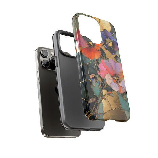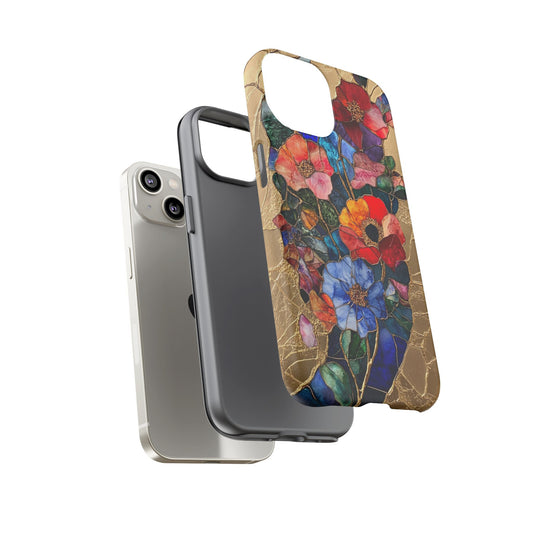 Stained Glass Style Floral Aesthetic Gold Inlay Japanese Art Phone Case