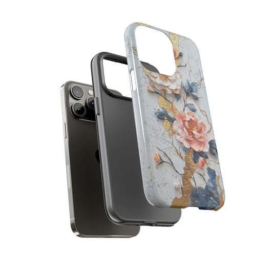 White Marble Style Floral Aesthetic Gold Inlay Japanese Art Phone Case