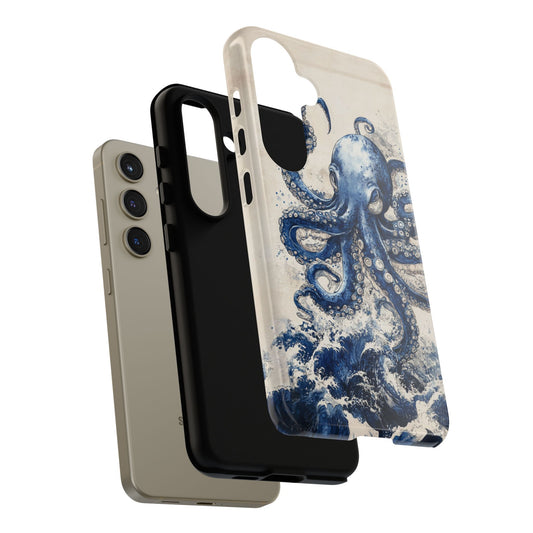 Vintage Japanese Art Style Blue Octopus and Waves Phone Cover