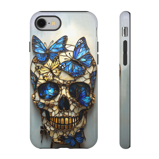 Gold and Blue Stained Glass Skull and Butterflies Phone Cover