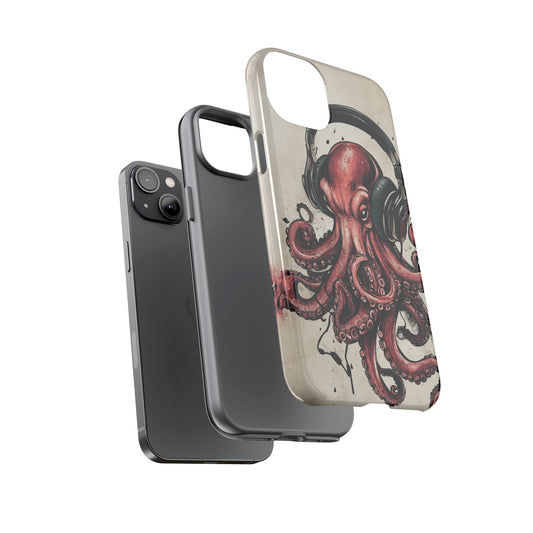 Retro Style Japanese Octopus Listening to Headphones Phone Cover