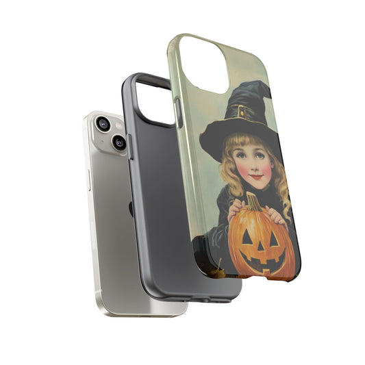 Vintage Halloween Card Witch and Jack-o'-lantern Phone Cover