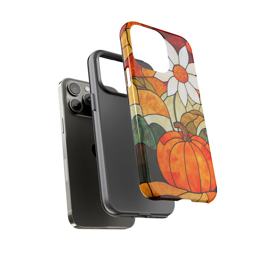 Fall Vibe Phone Case Art Floral and Pumpkin Stained Glass Style Phone Case