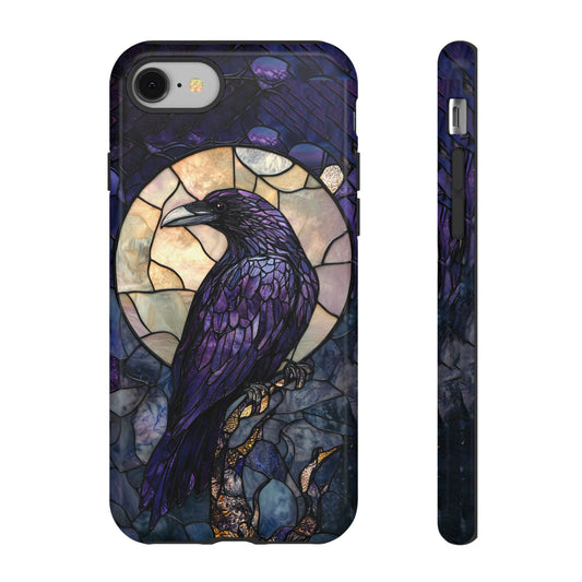 Halloween Phone Case Purple Raven Stained Glass Style Spooky Moon Phone Cover