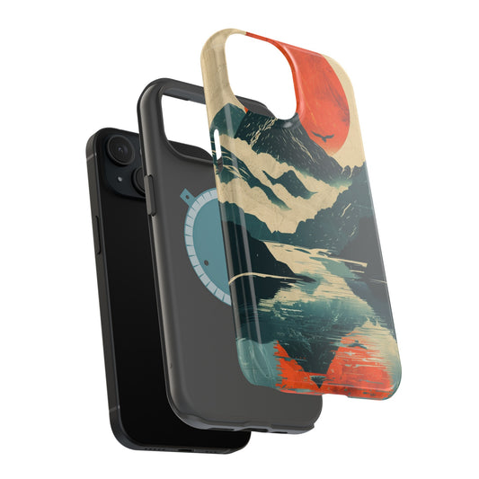 Retro iPhone Case Mountain Sunset Lake Reflection MagSafe Phone Case