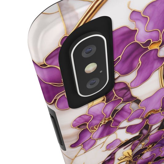 Purple & Gold Orchid Elegance: Stained Glass Art Nouveau Phone Case | Bohemian Flair for iPhone 14 down to iPhone 7 Models