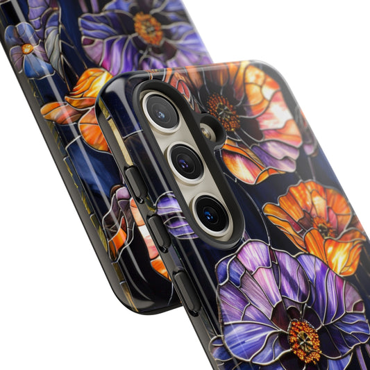 Stained Glass Phone Tough Case Purple Floral Aesthetic | Flower Power