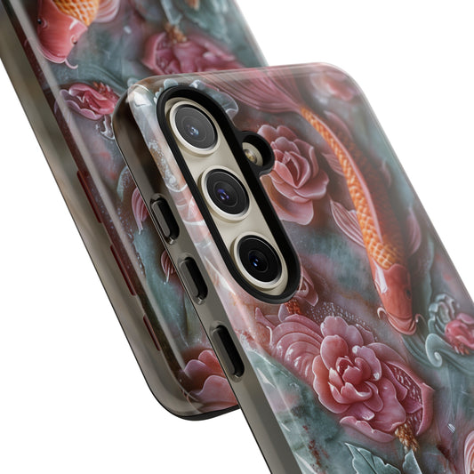 Pink Marble Fish Asian Jade Carving Koi Art Phone Case