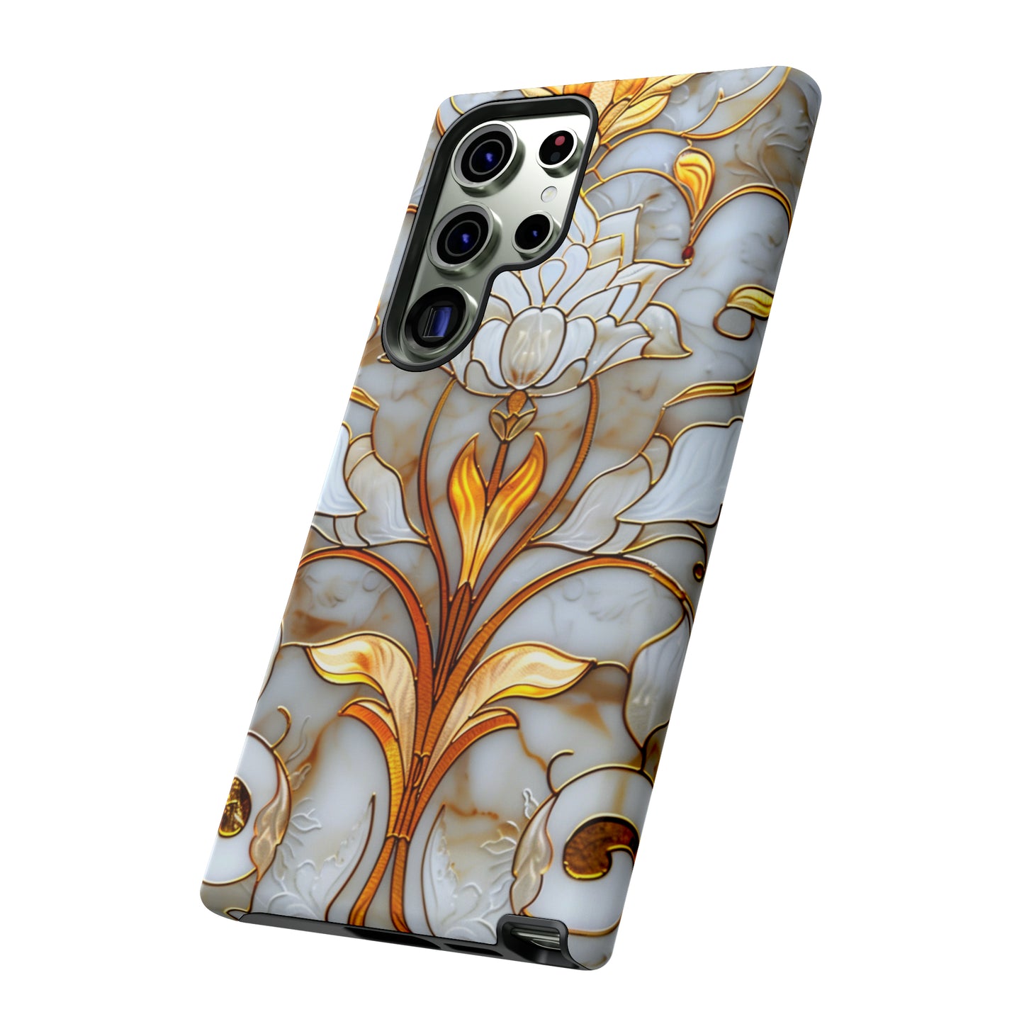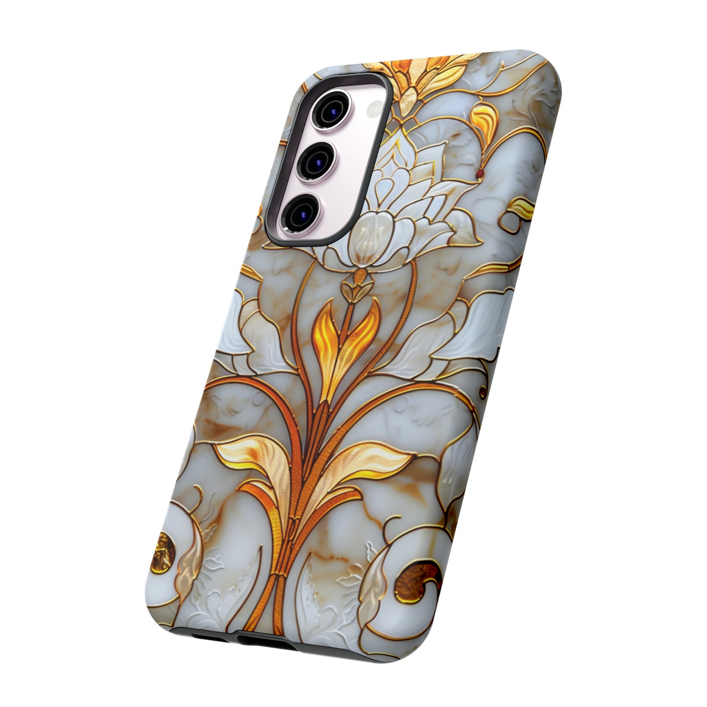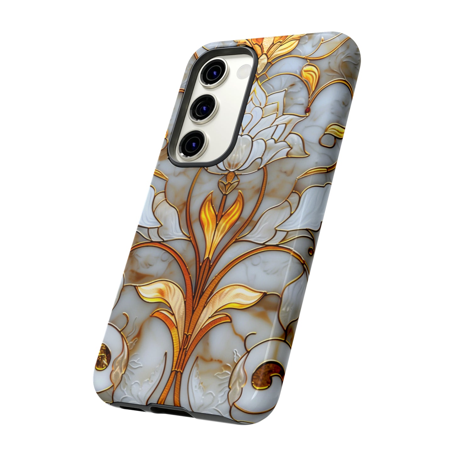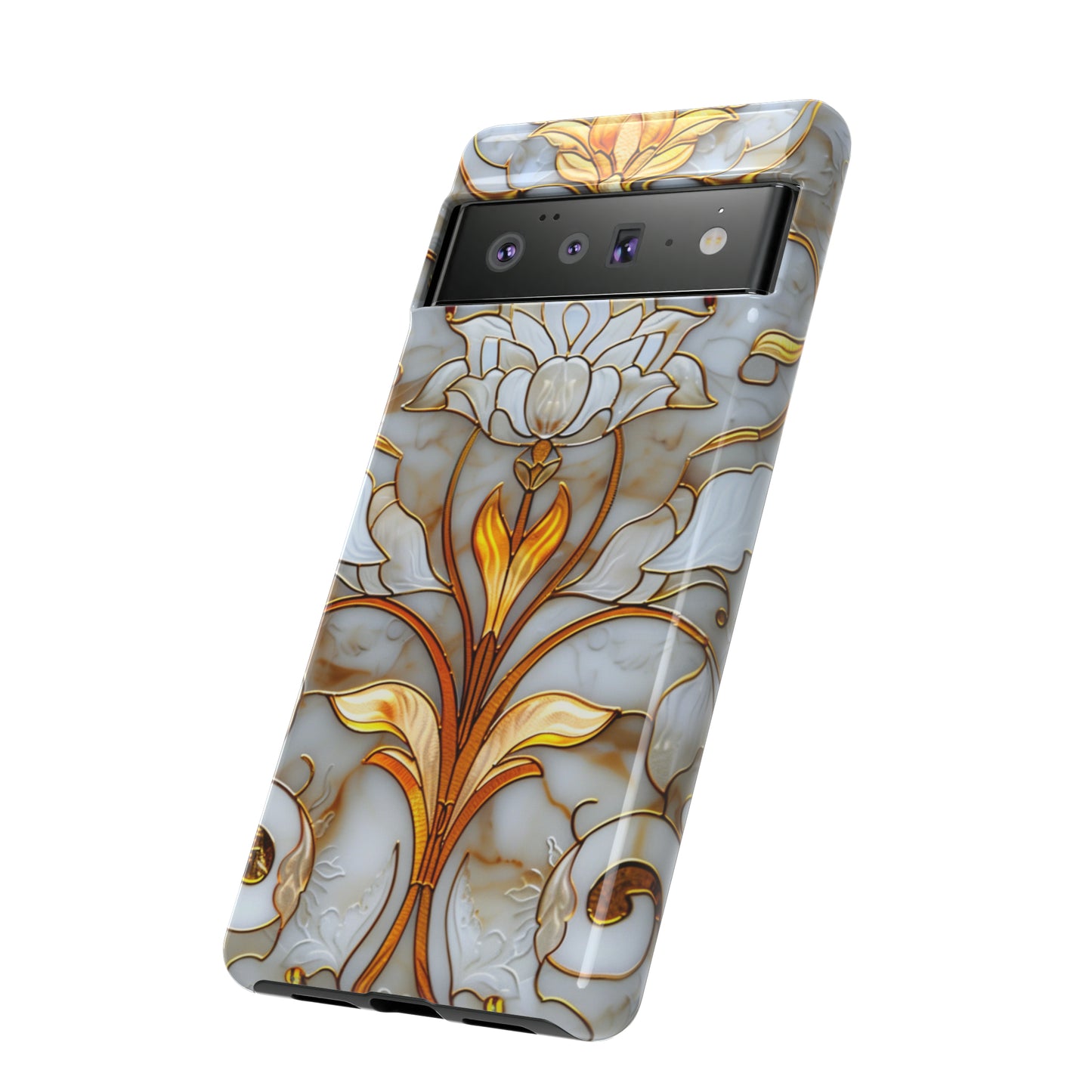 Elevate your style with our Art Deco Stained Glass Floral Phone Case. Inspired by the iconic Art Deco era, this case features a stunning stained glass floral design that adds a touch of elegance to your device. Compatible with iPhone and Samsung Galaxy models, it provides both protection and aesthetic appeal. Crafted with precision and attention to detail, this case is sure to turn heads wherever you go.