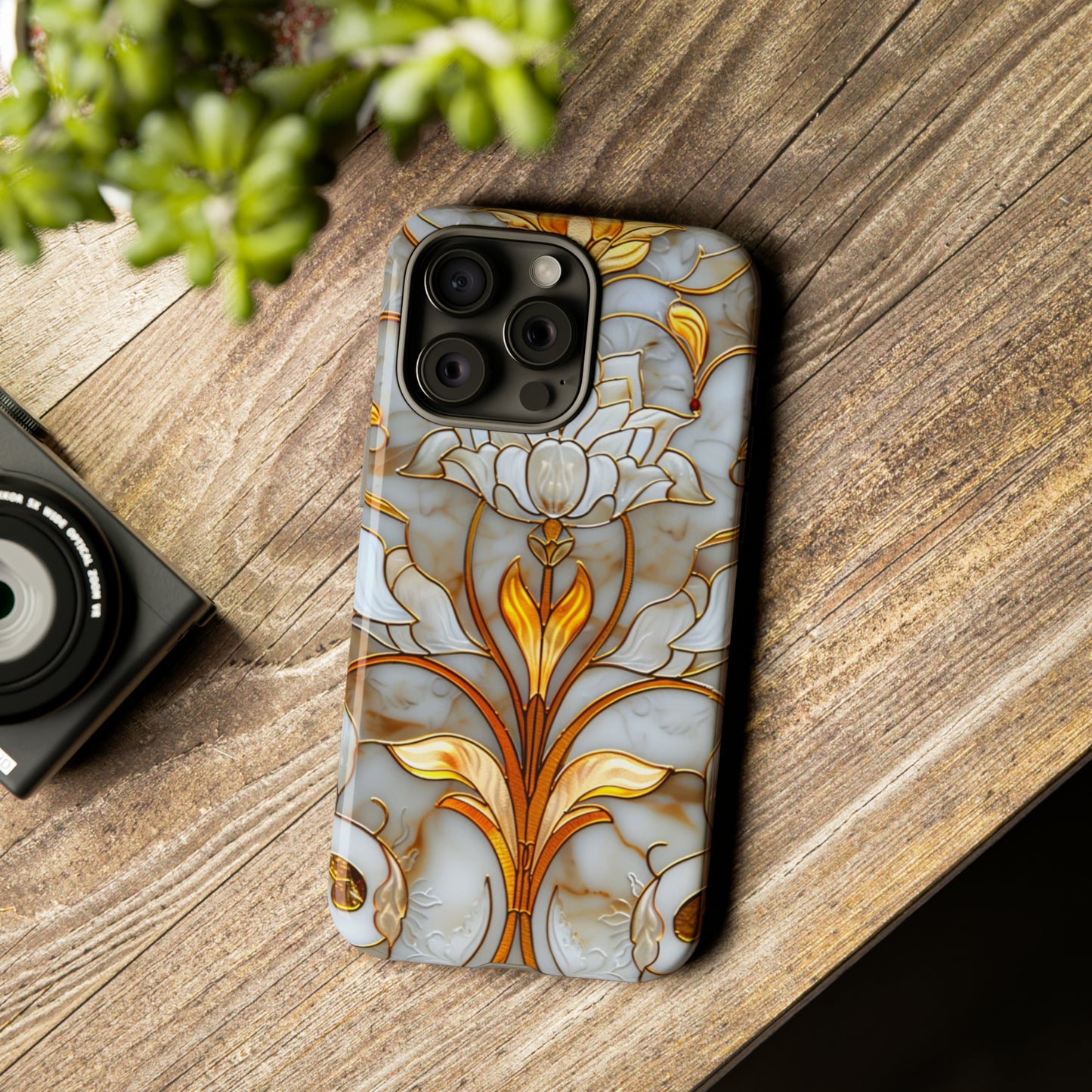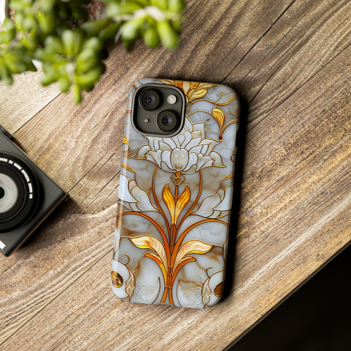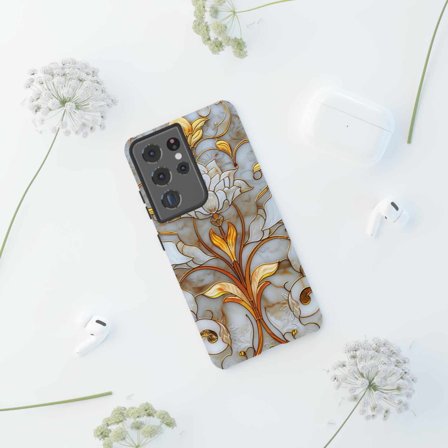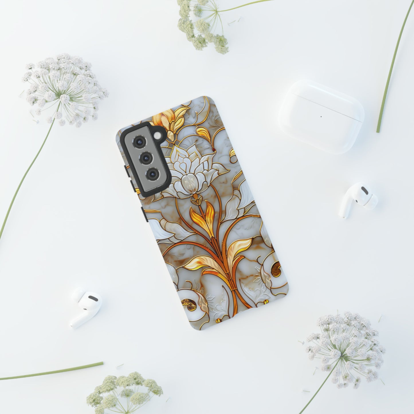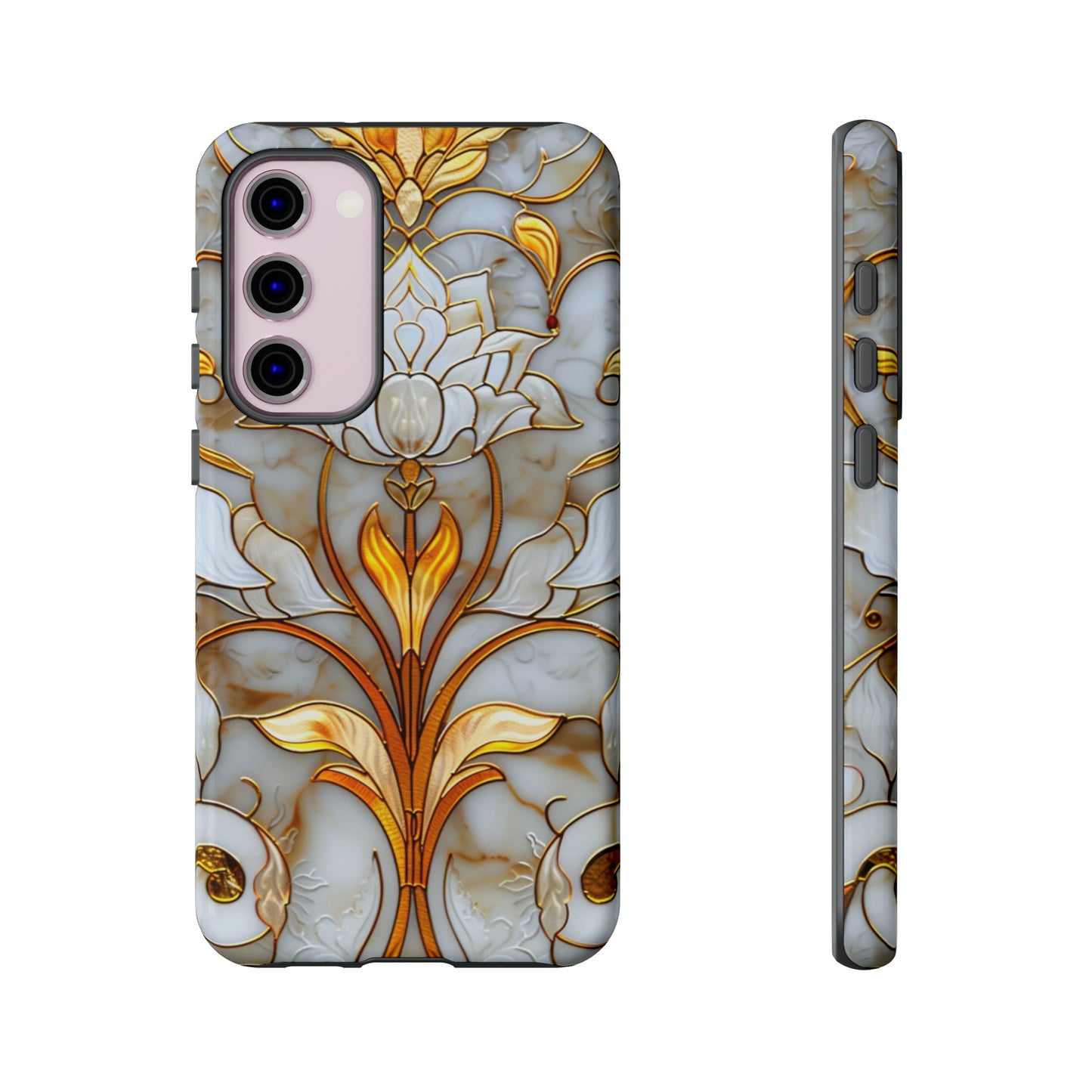 Elevate your style with our Art Deco Stained Glass Floral Phone Case. Inspired by the iconic Art Deco era, this case features a stunning stained glass floral design that adds a touch of elegance to your device. Compatible with iPhone and Samsung Galaxy models, it provides both protection and aesthetic appeal. Crafted with precision and attention to detail, this case is sure to turn heads wherever you go.