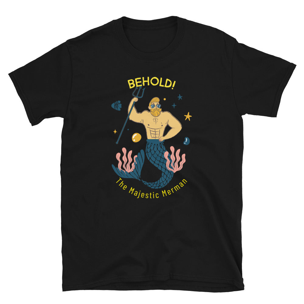 Whether you're a lover of mythical creatures, a fan of marine-inspired art, or simply want to make a statement with your fashion, our "Behold the Majestic Merman" T-Shirt is a must-have addition to your wardrobe. It's perfect for casual outings, beach excursions, or as a conversation starter among fellow mermaid and fantasy enthusiasts.