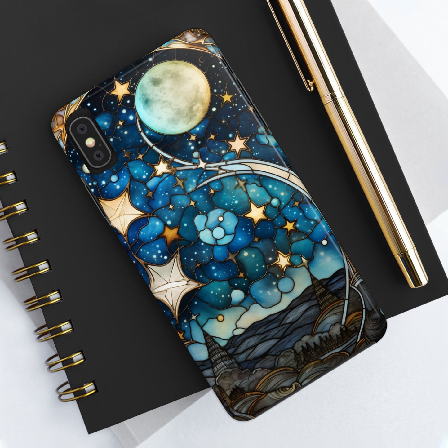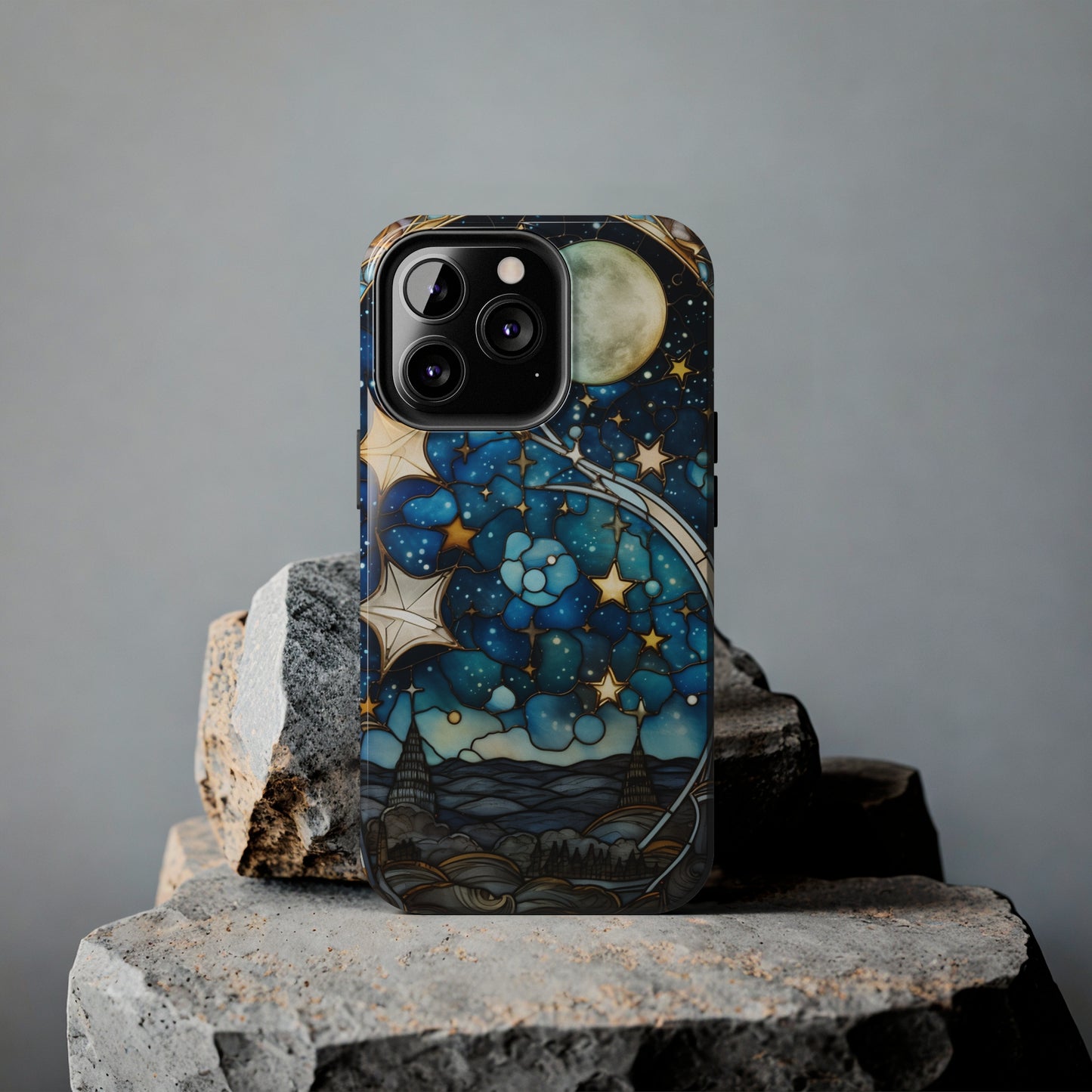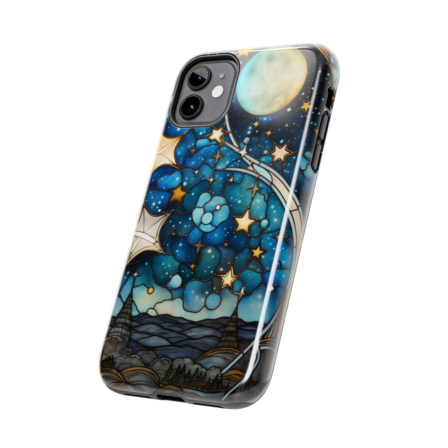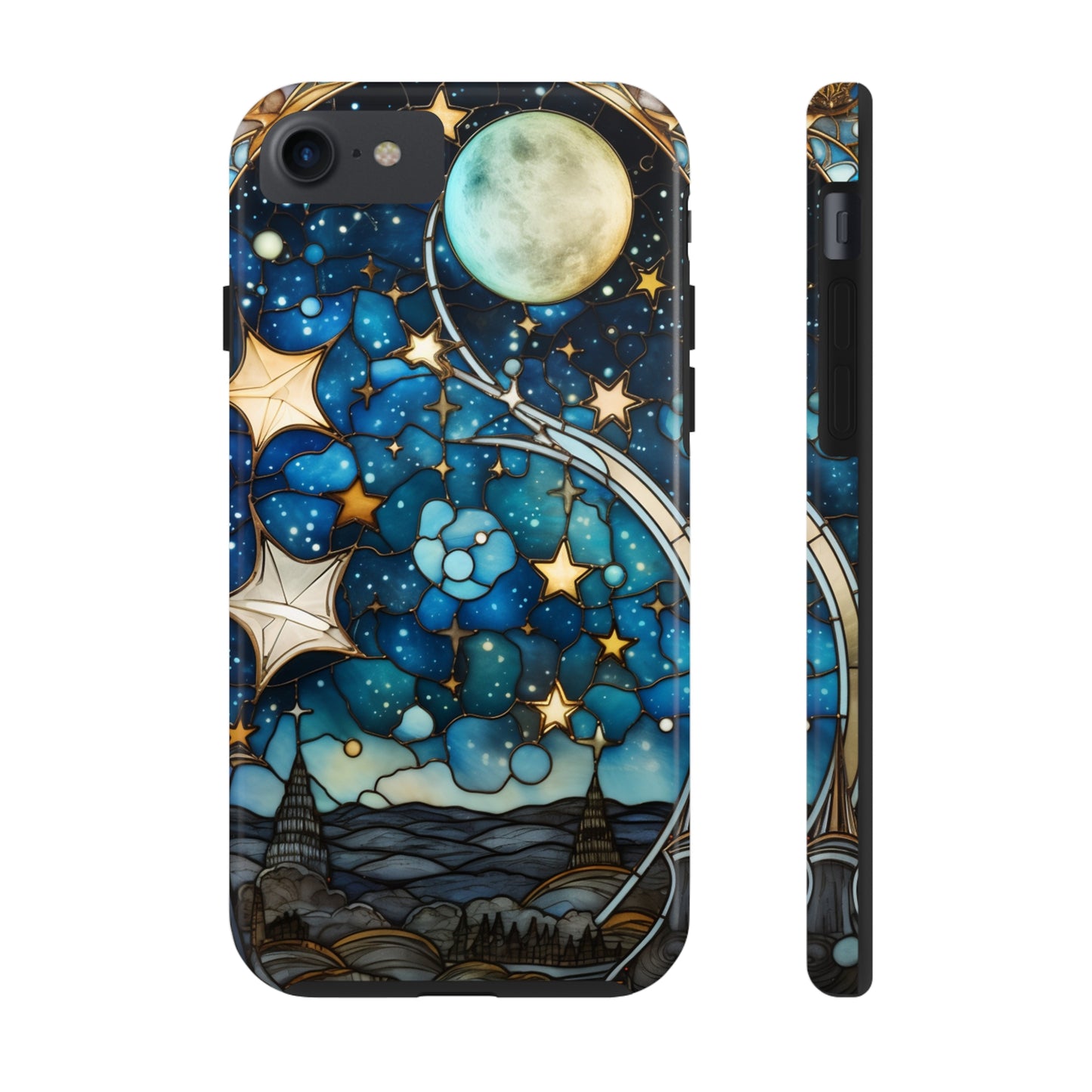 Dive into the ethereal realm of celestial dreams with our "Boho Starry Night" iPhone case. Inspired by the enchanting hues of a starlit sky and the intricate detailing of stained glass artistry, this case is a perfect blend of bohemian charm and modern aesthetics.