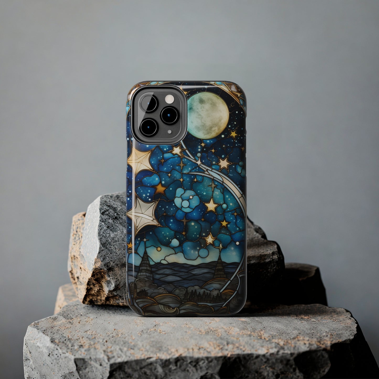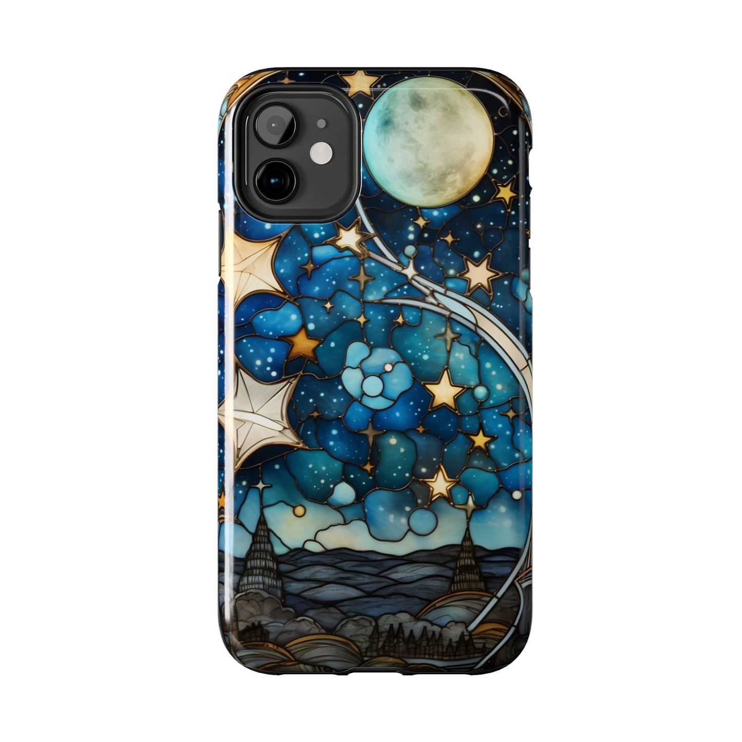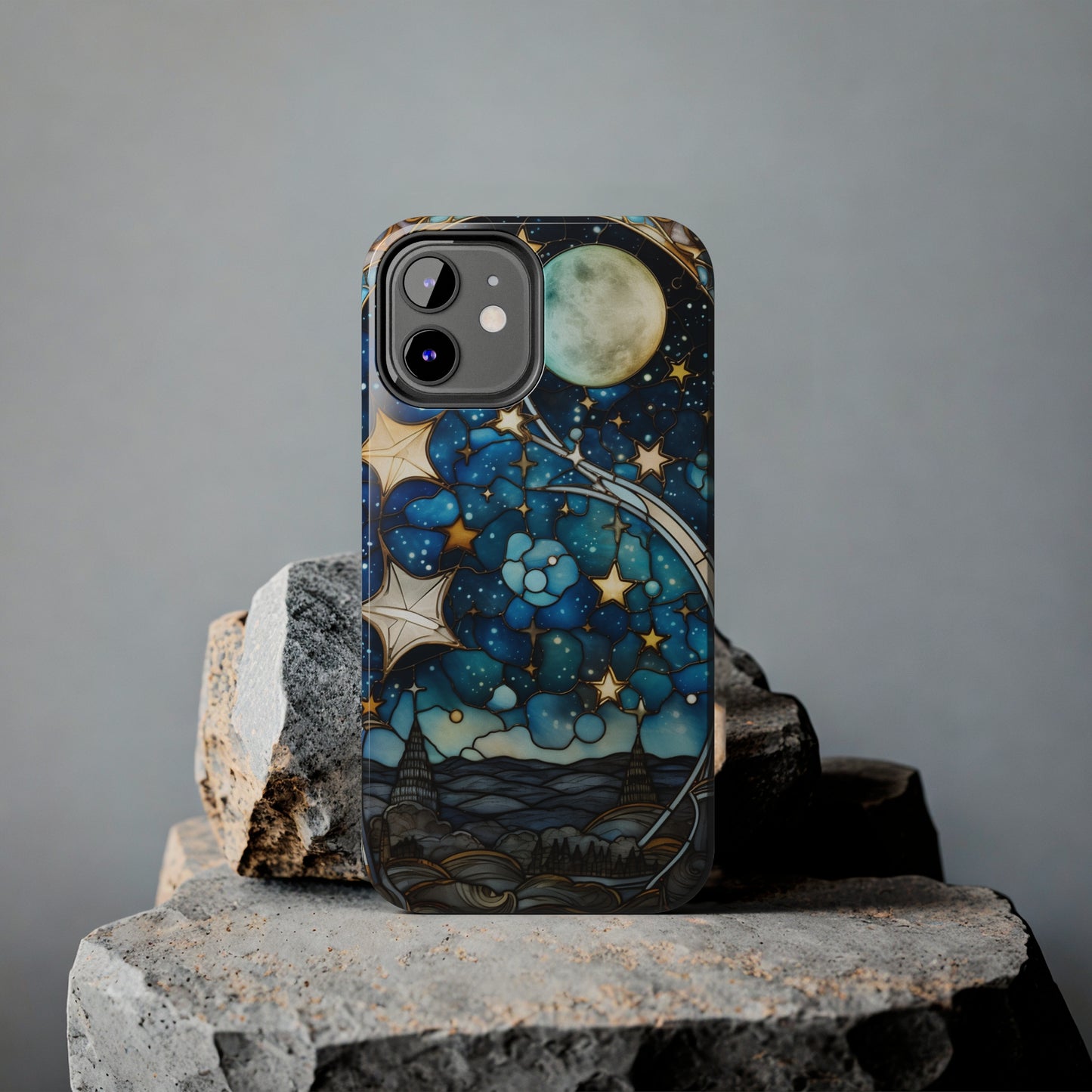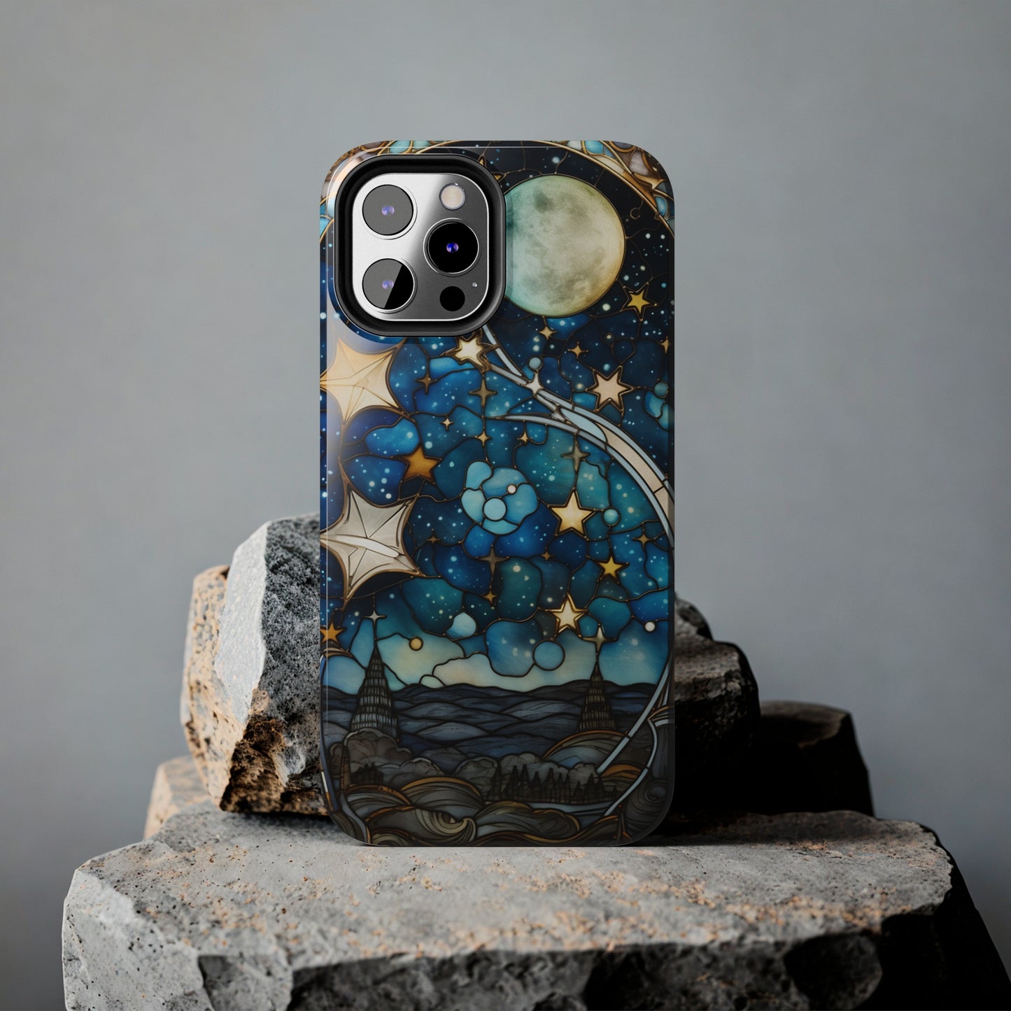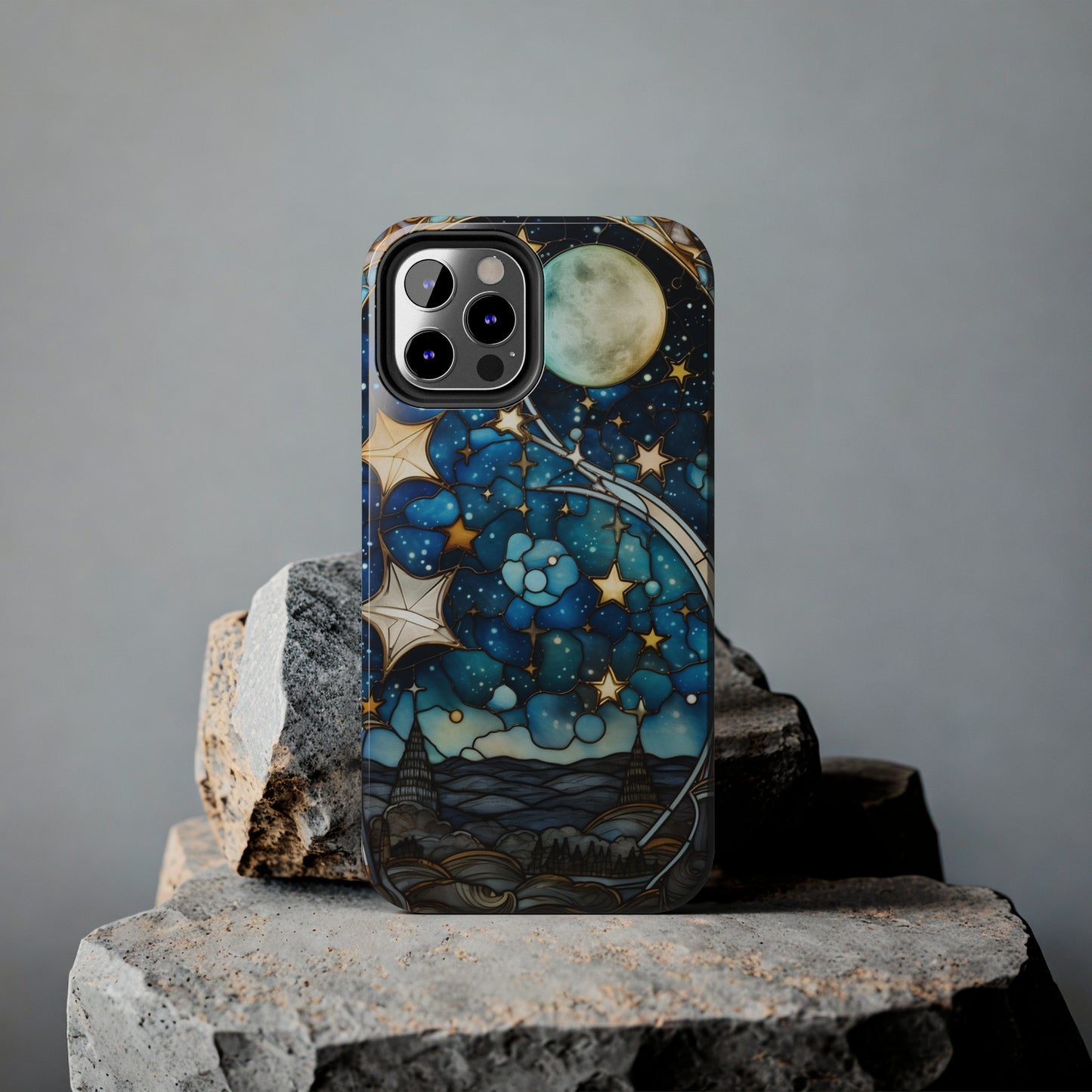 Dive into the ethereal realm of celestial dreams with our "Boho Starry Night" iPhone case. Inspired by the enchanting hues of a starlit sky and the intricate detailing of stained glass artistry, this case is a perfect blend of bohemian charm and modern aesthetics.