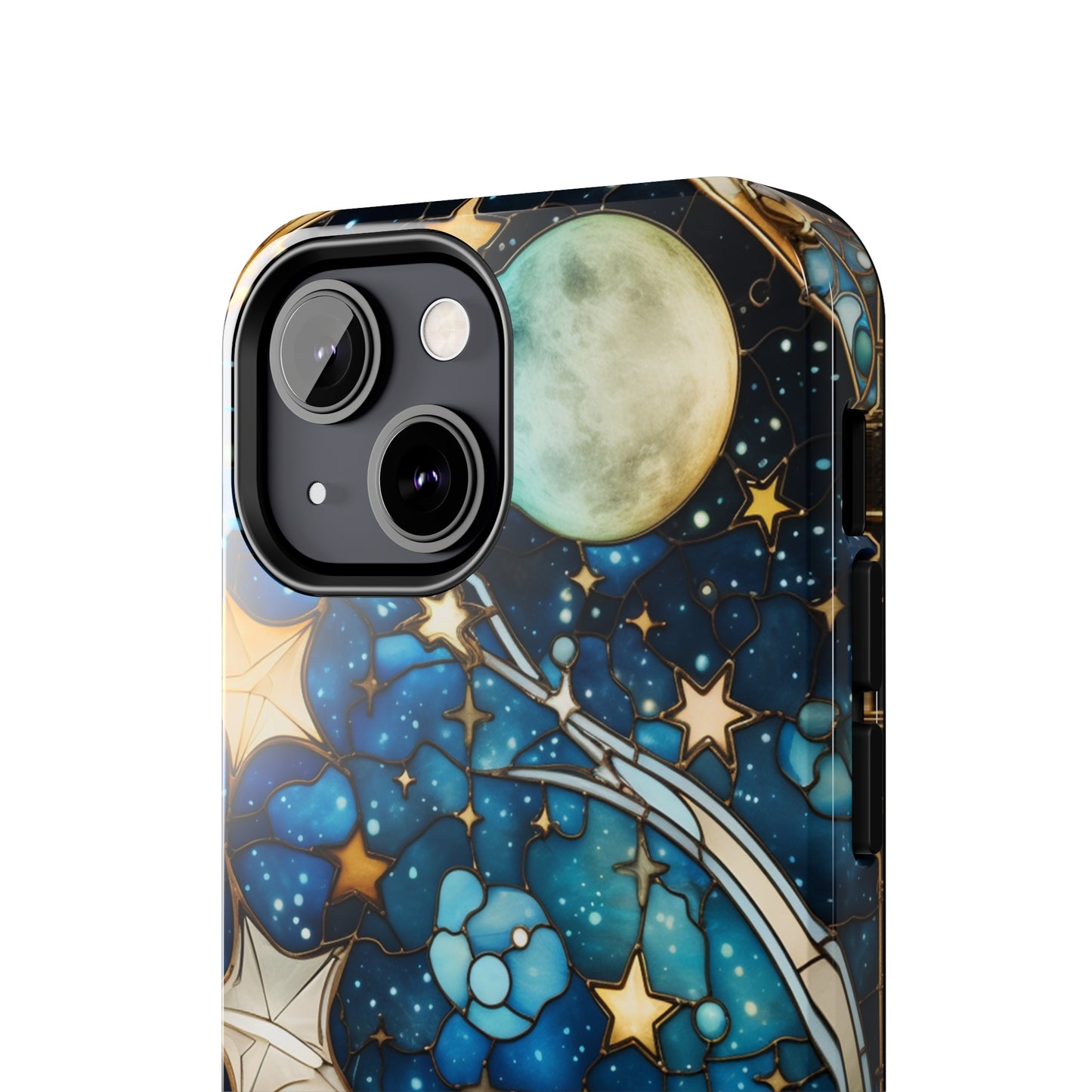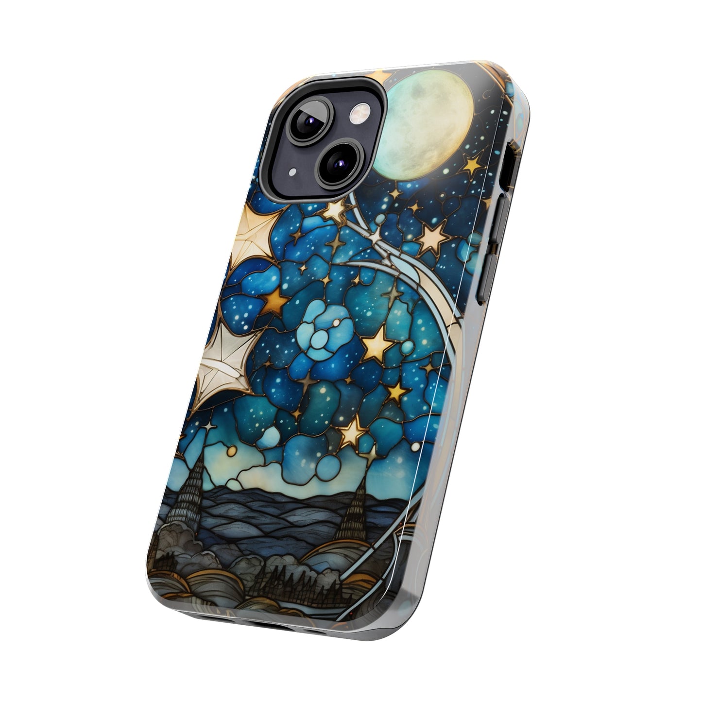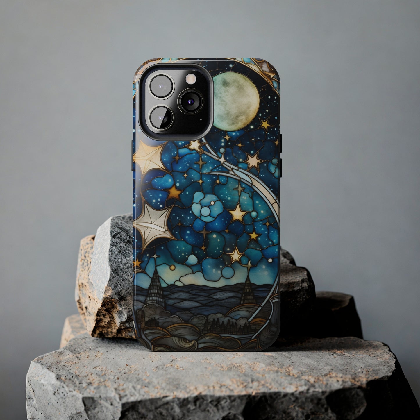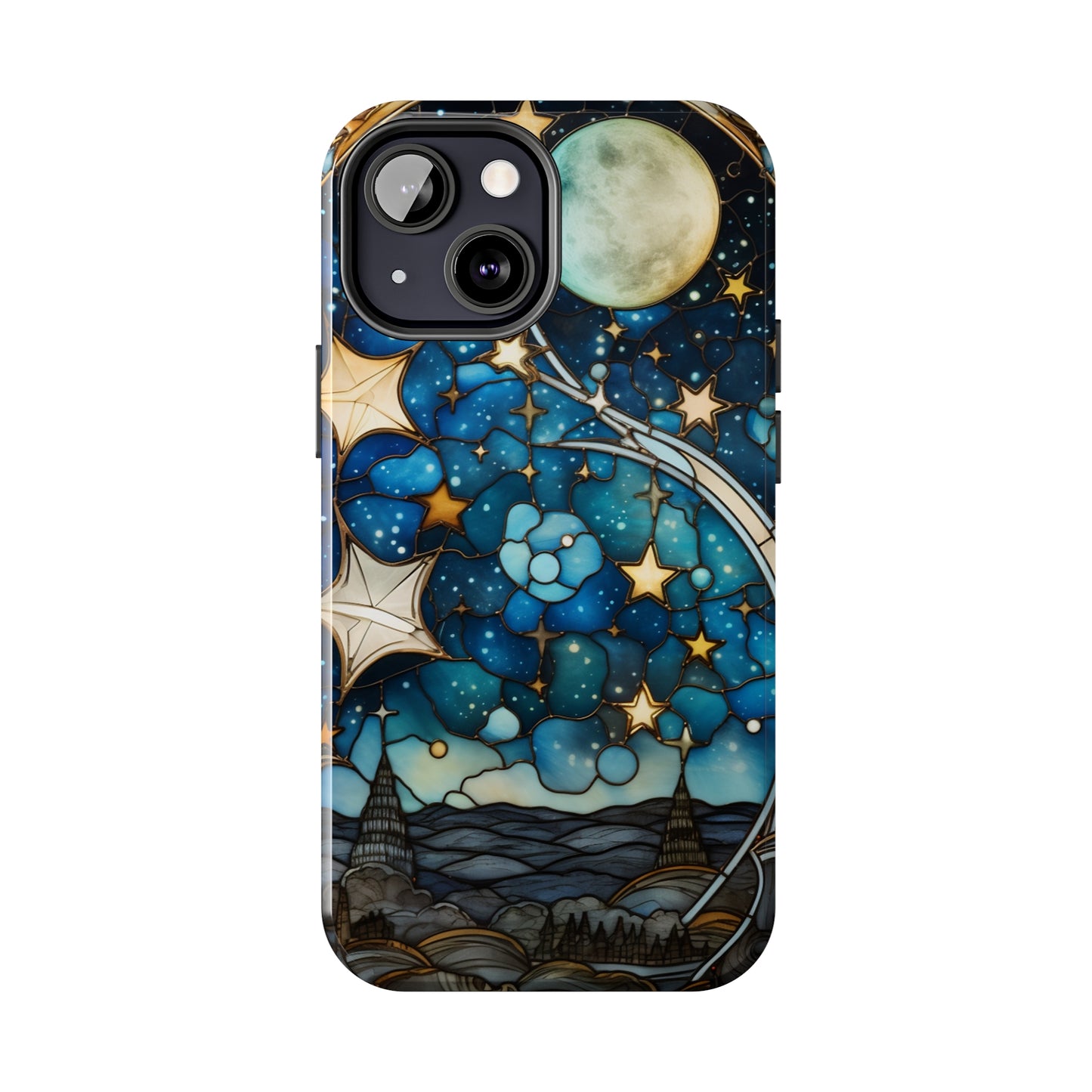 Dive into the ethereal realm of celestial dreams with our "Boho Starry Night" iPhone case. Inspired by the enchanting hues of a starlit sky and the intricate detailing of stained glass artistry, this case is a perfect blend of bohemian charm and modern aesthetics.