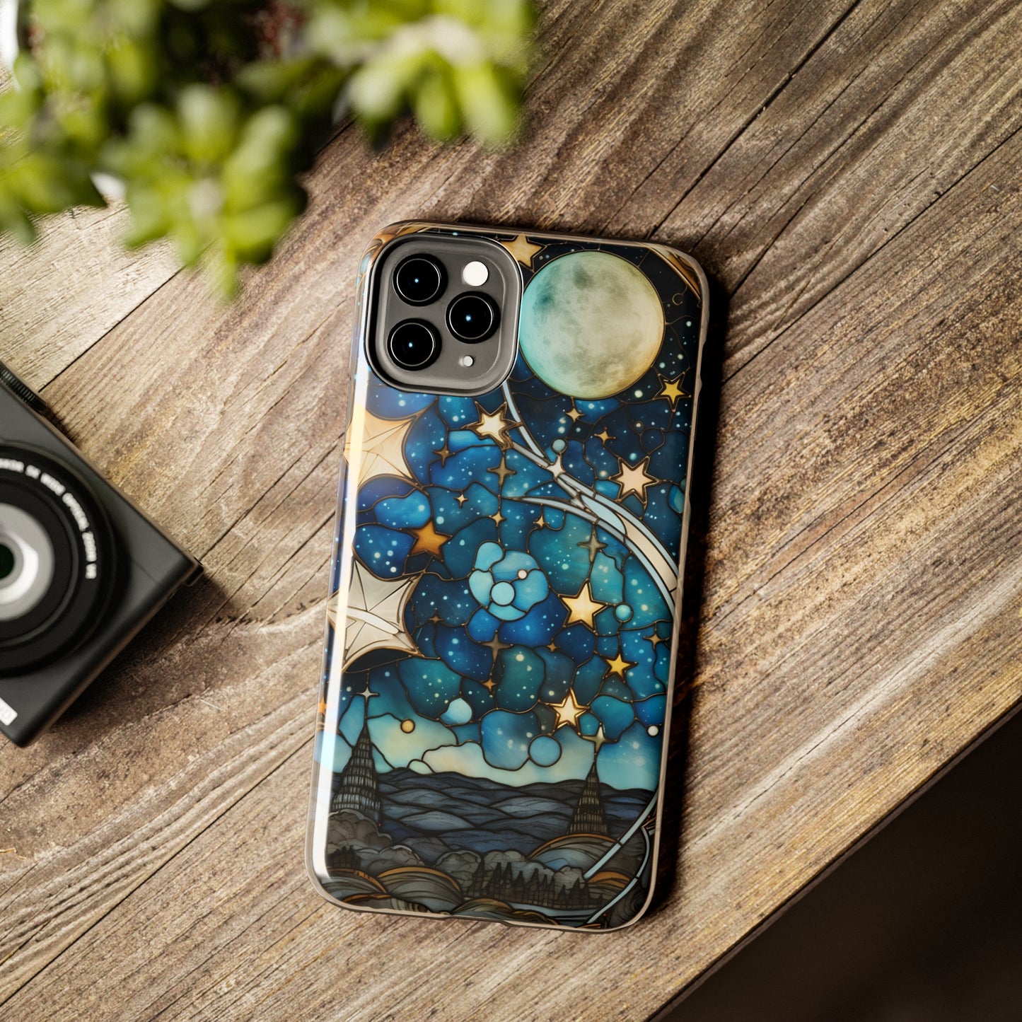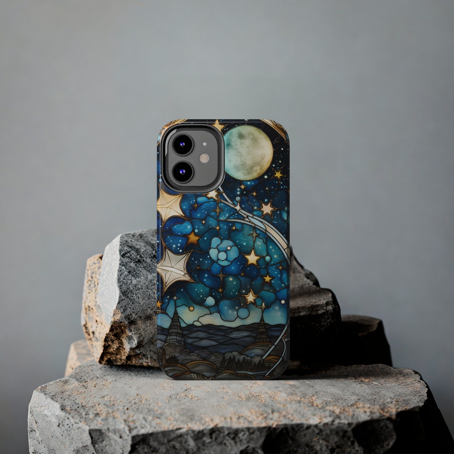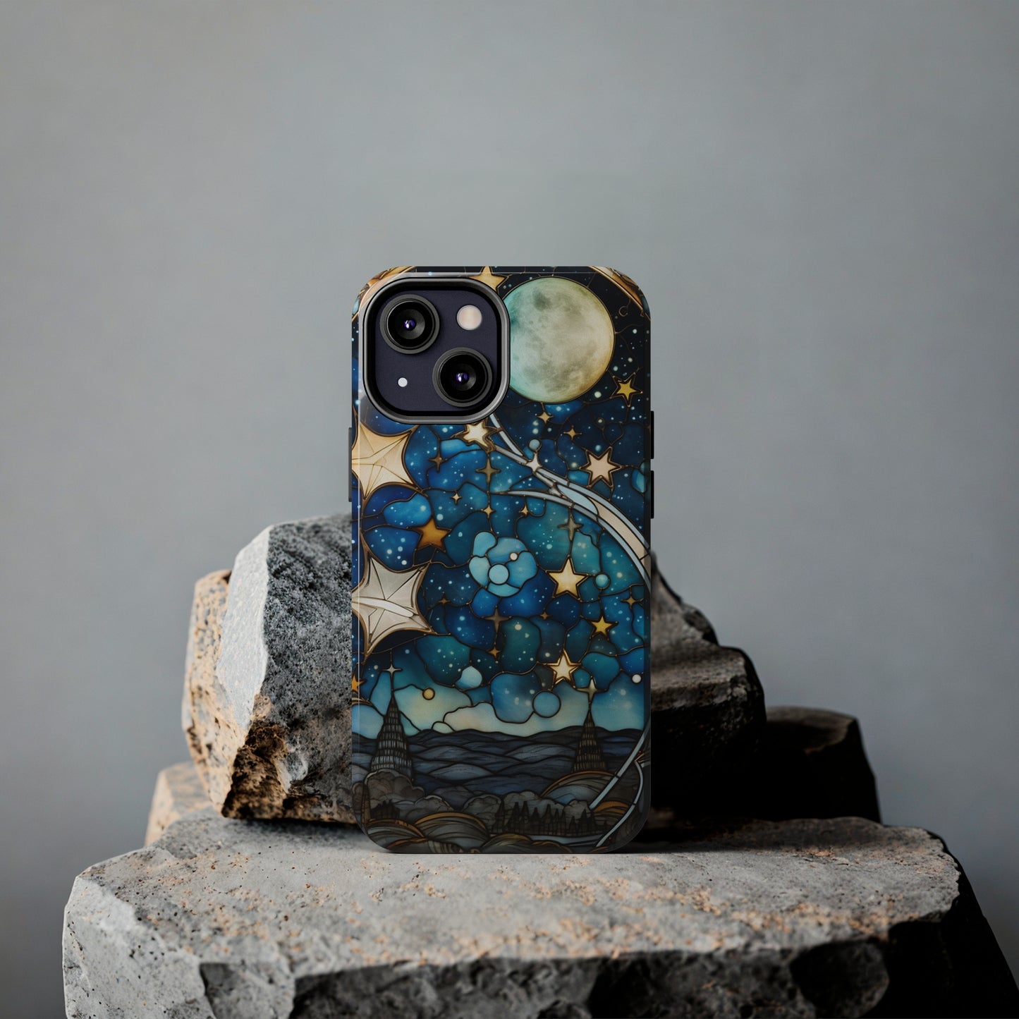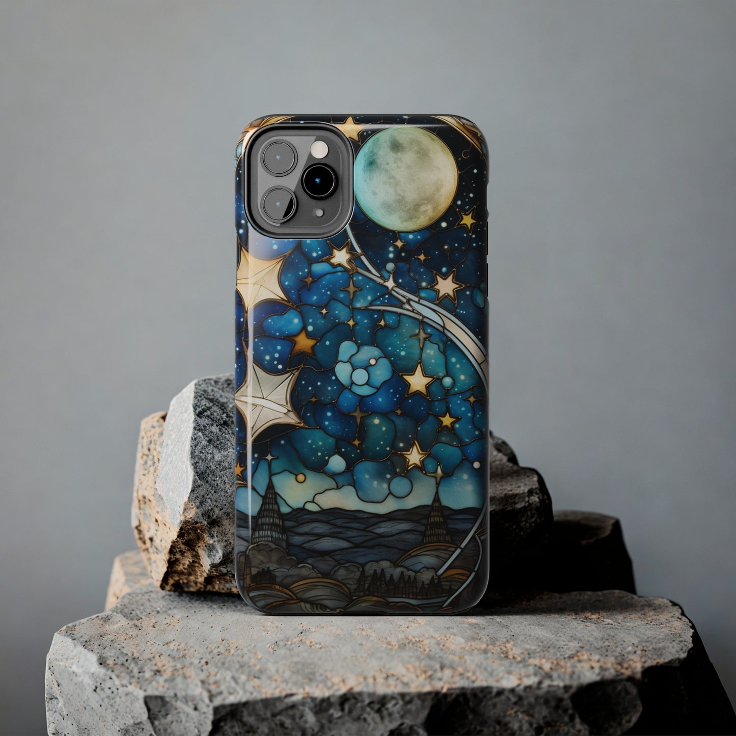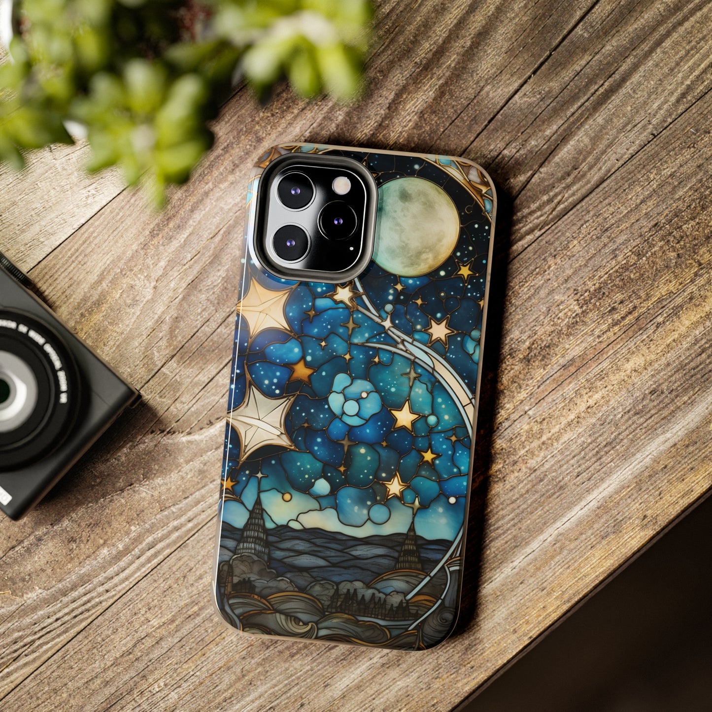 Dive into the ethereal realm of celestial dreams with our "Boho Starry Night" iPhone case. Inspired by the enchanting hues of a starlit sky and the intricate detailing of stained glass artistry, this case is a perfect blend of bohemian charm and modern aesthetics.