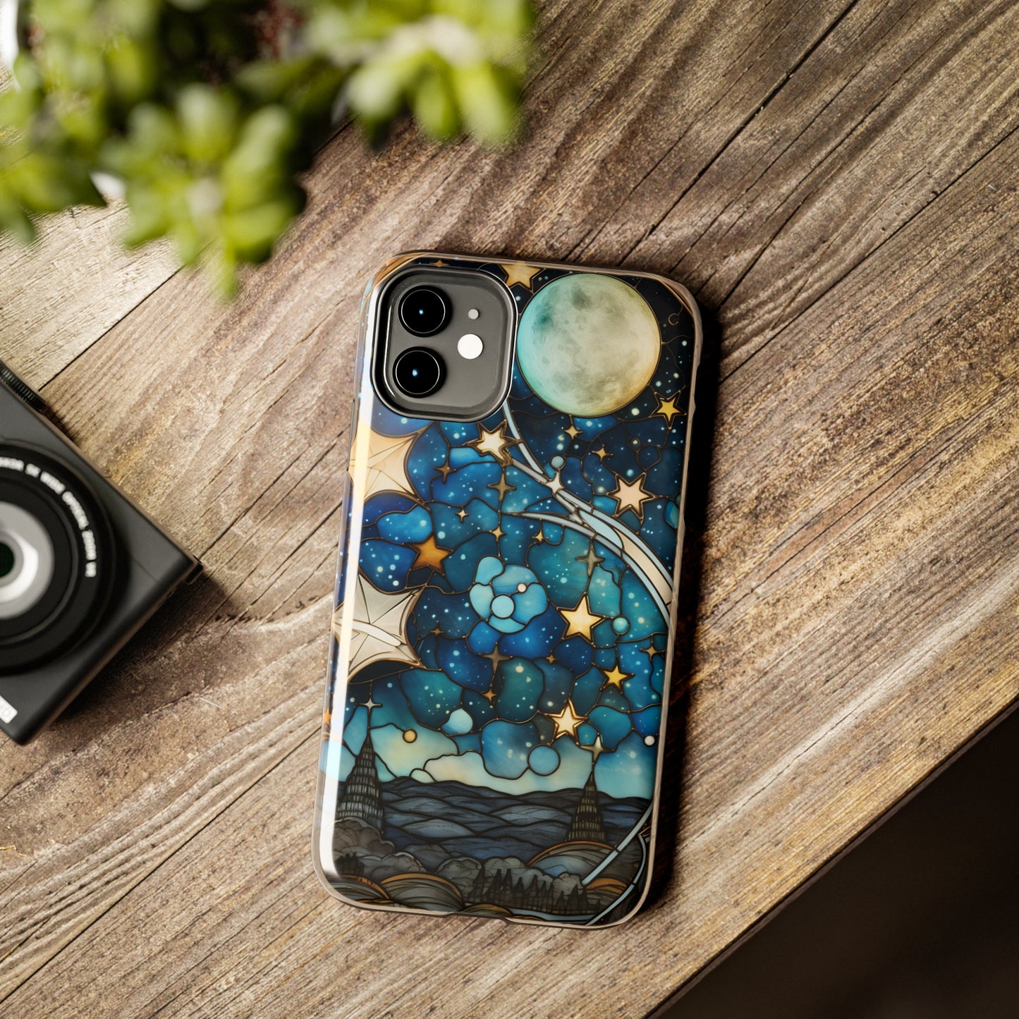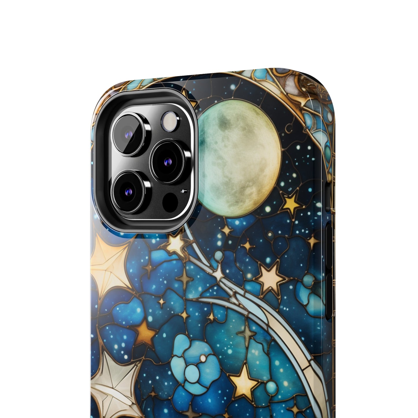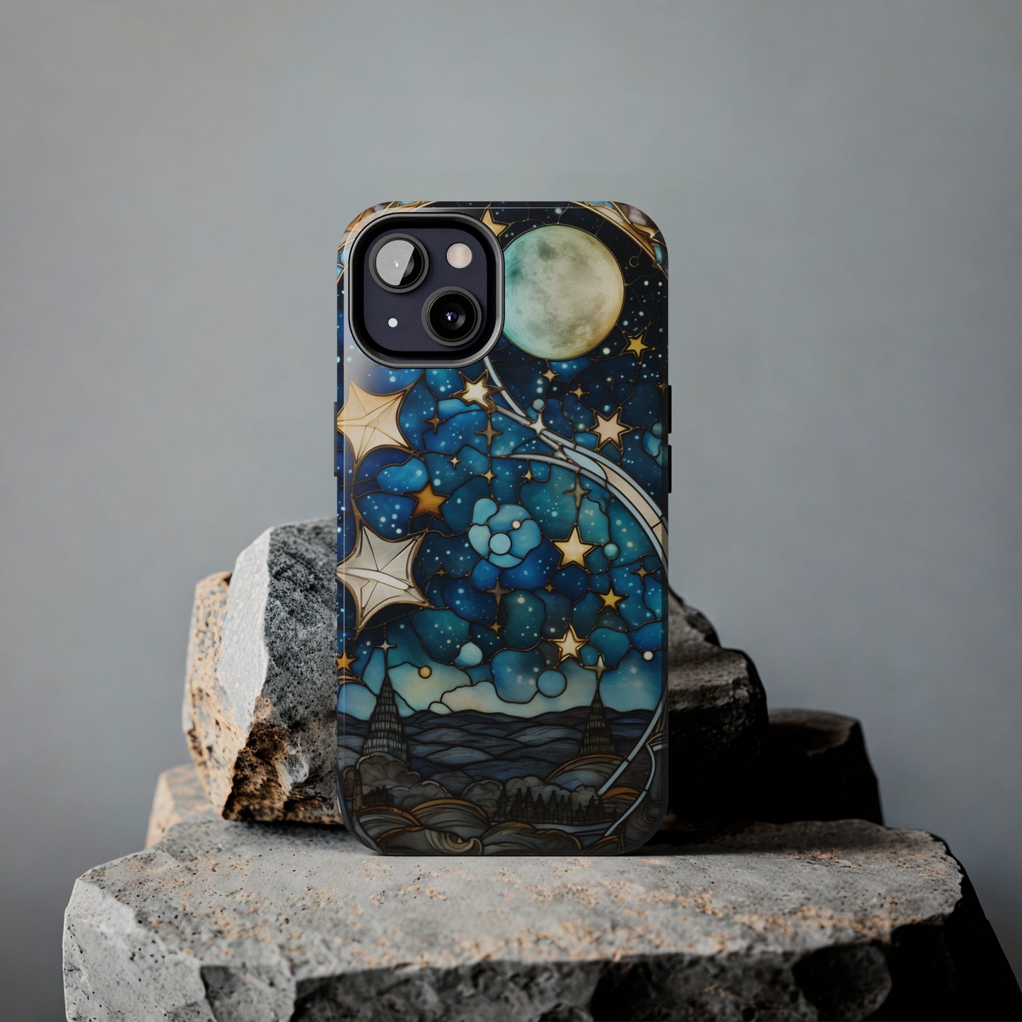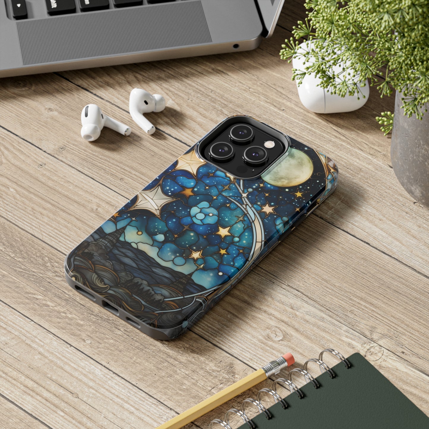 Dive into the ethereal realm of celestial dreams with our "Boho Starry Night" iPhone case. Inspired by the enchanting hues of a starlit sky and the intricate detailing of stained glass artistry, this case is a perfect blend of bohemian charm and modern aesthetics.