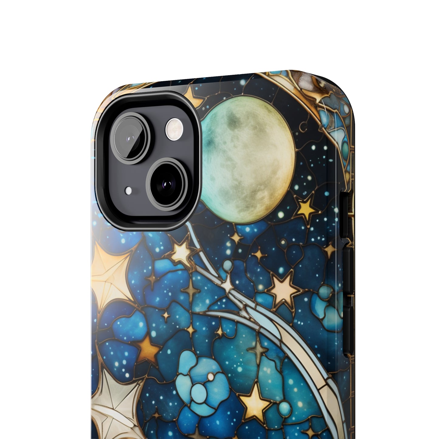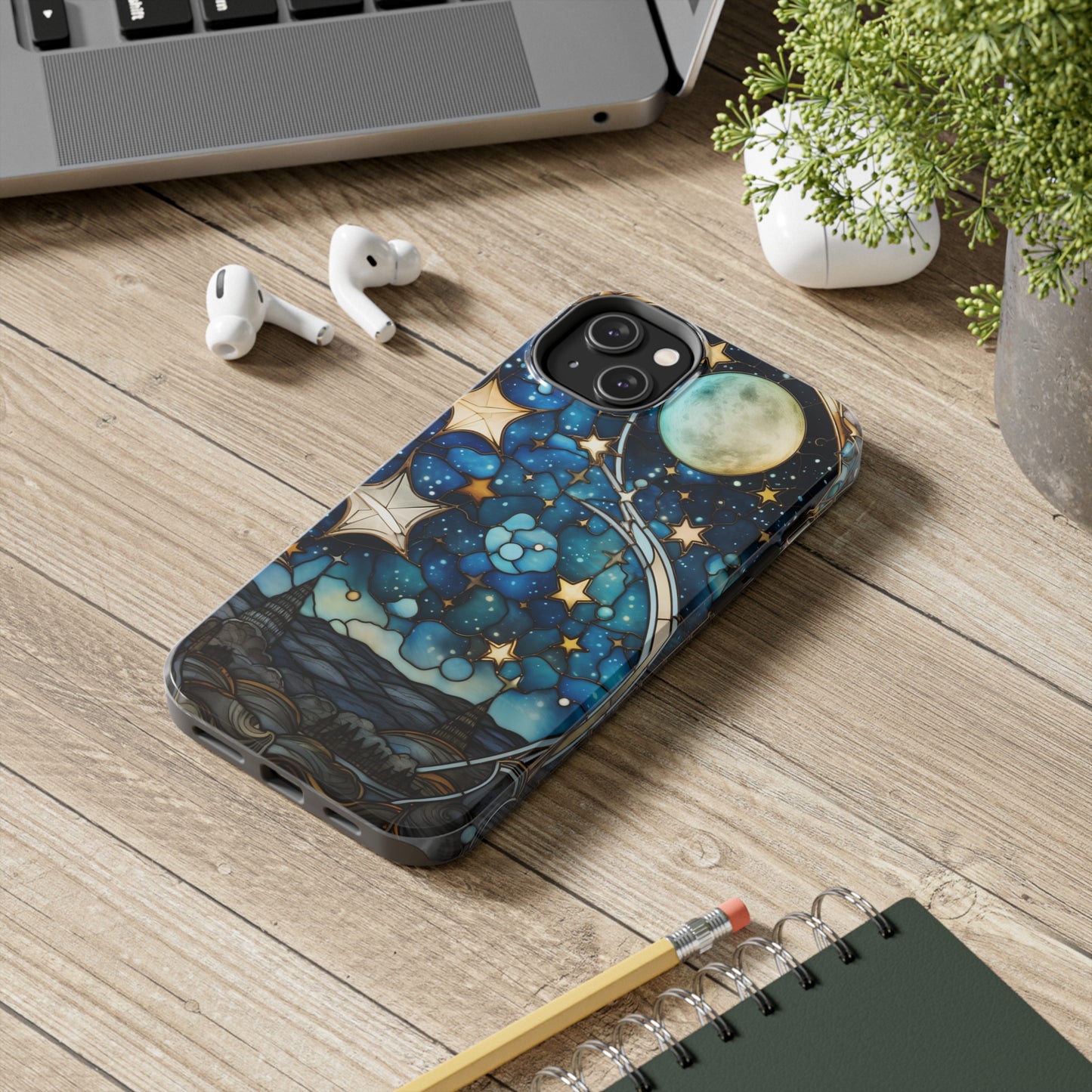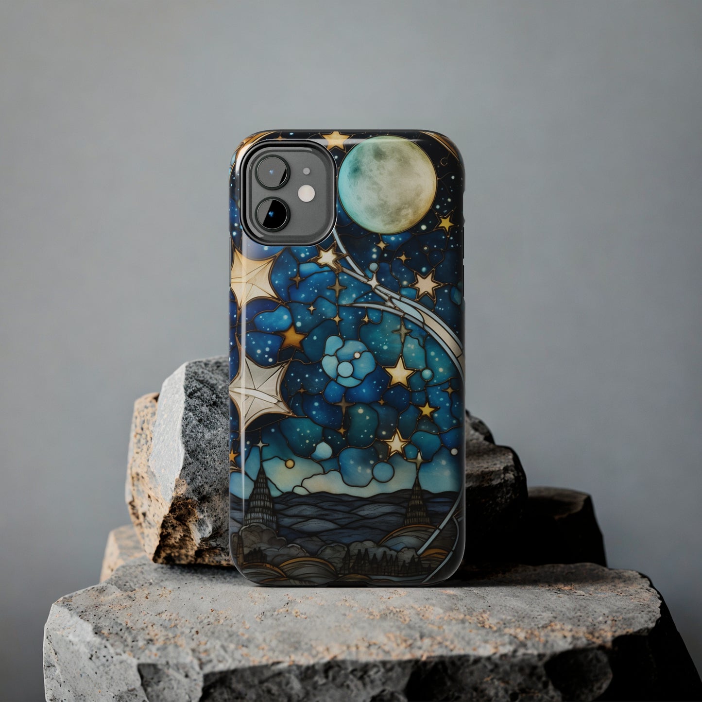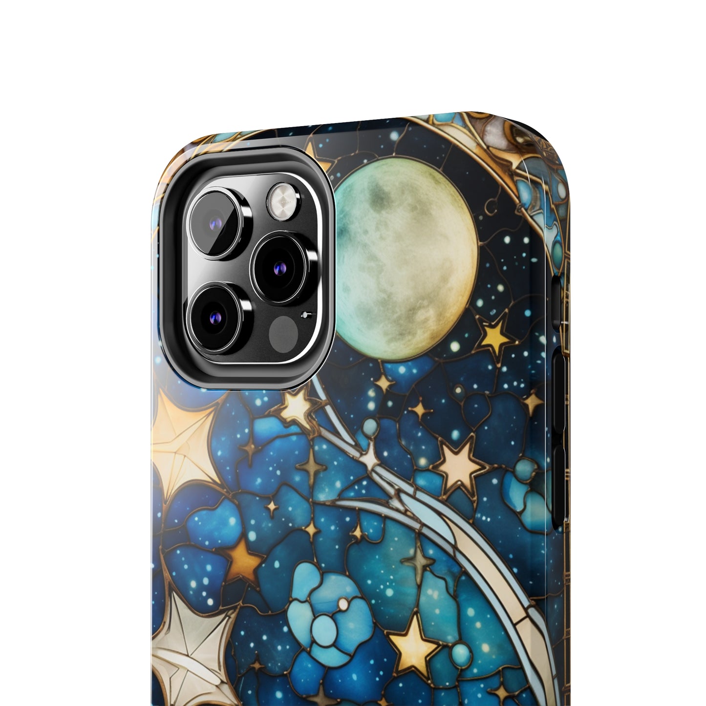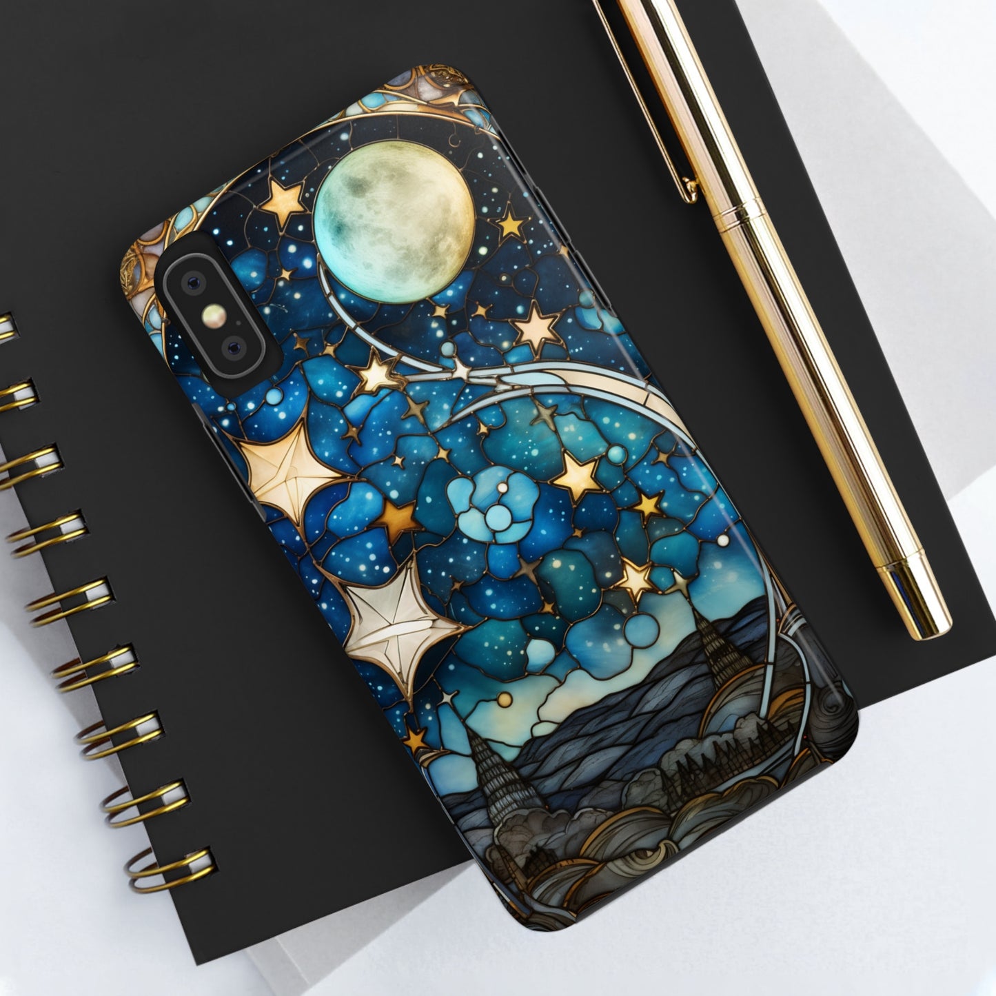 Dive into the ethereal realm of celestial dreams with our "Boho Starry Night" iPhone case. Inspired by the enchanting hues of a starlit sky and the intricate detailing of stained glass artistry, this case is a perfect blend of bohemian charm and modern aesthetics.