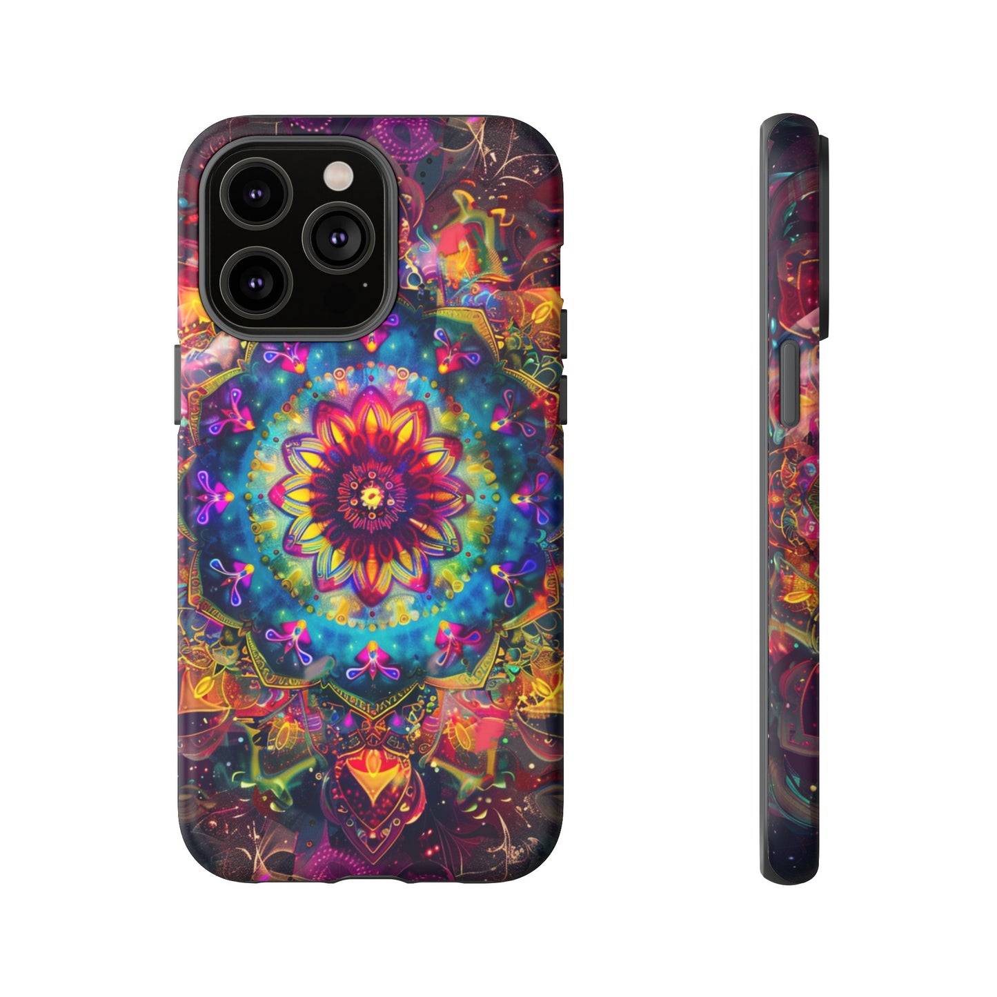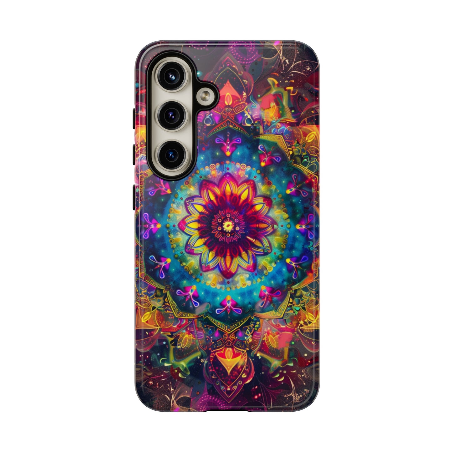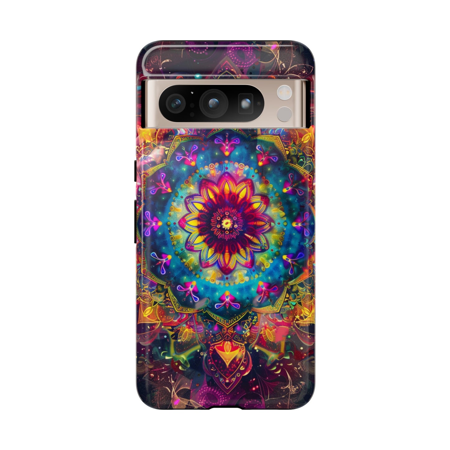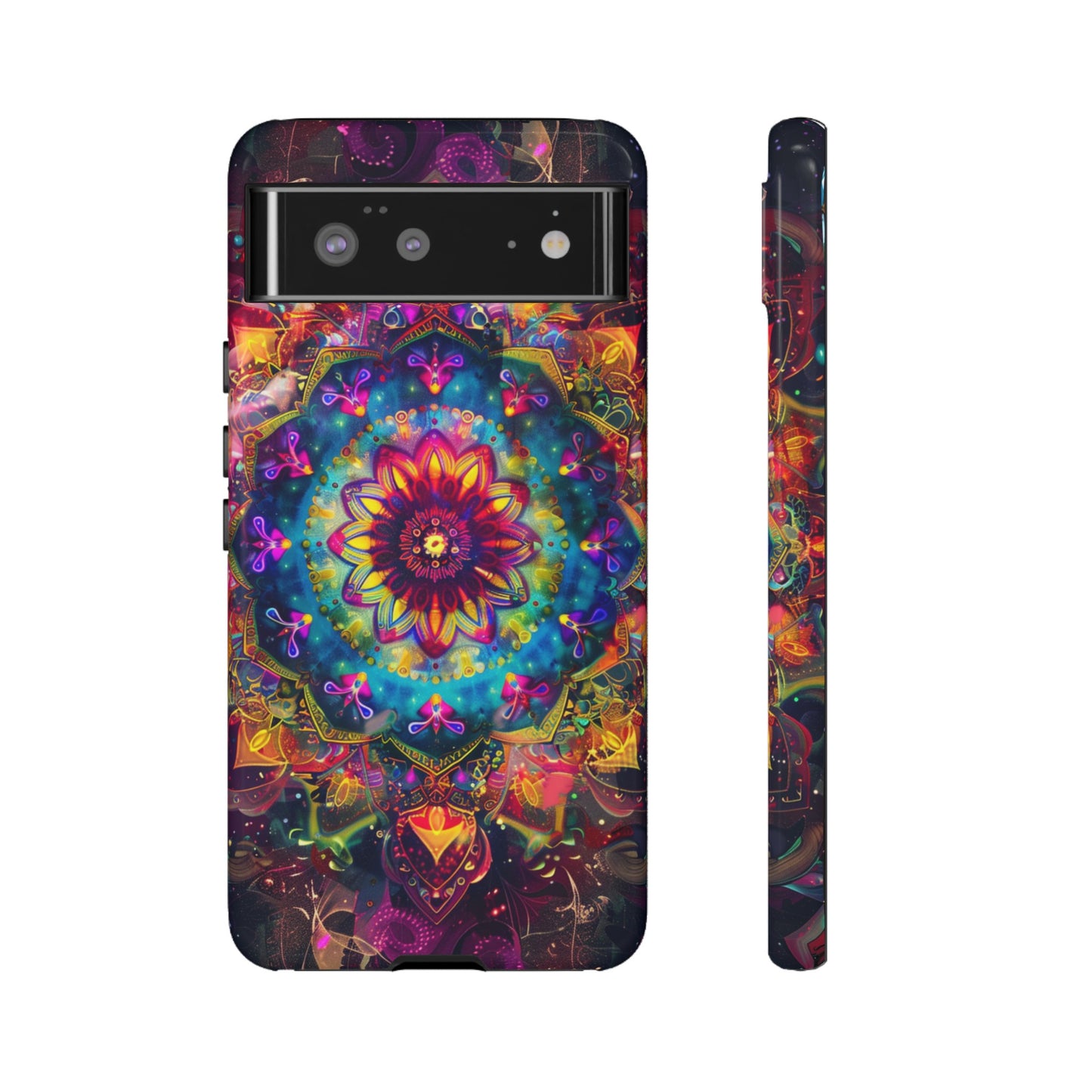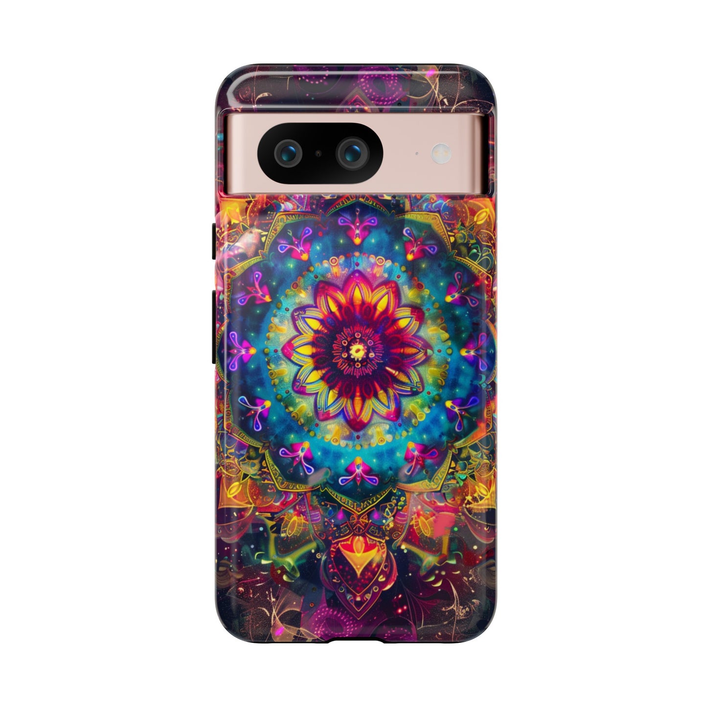 Explore the universe and spirituality with our Cosmic Stained Glass Mandala Phone Case. Ideal for iPhone, Samsung Galaxy, and Google Pixel users looking for a blend of art and protection."
