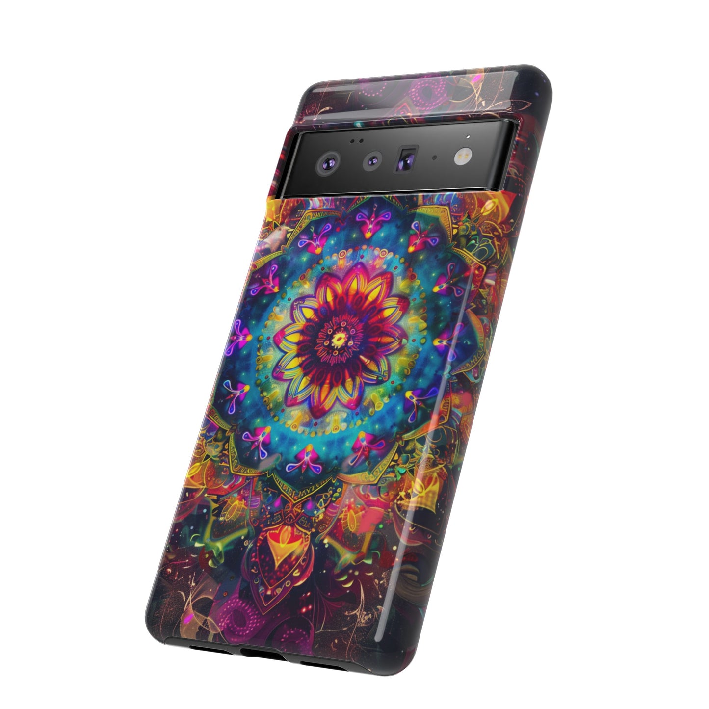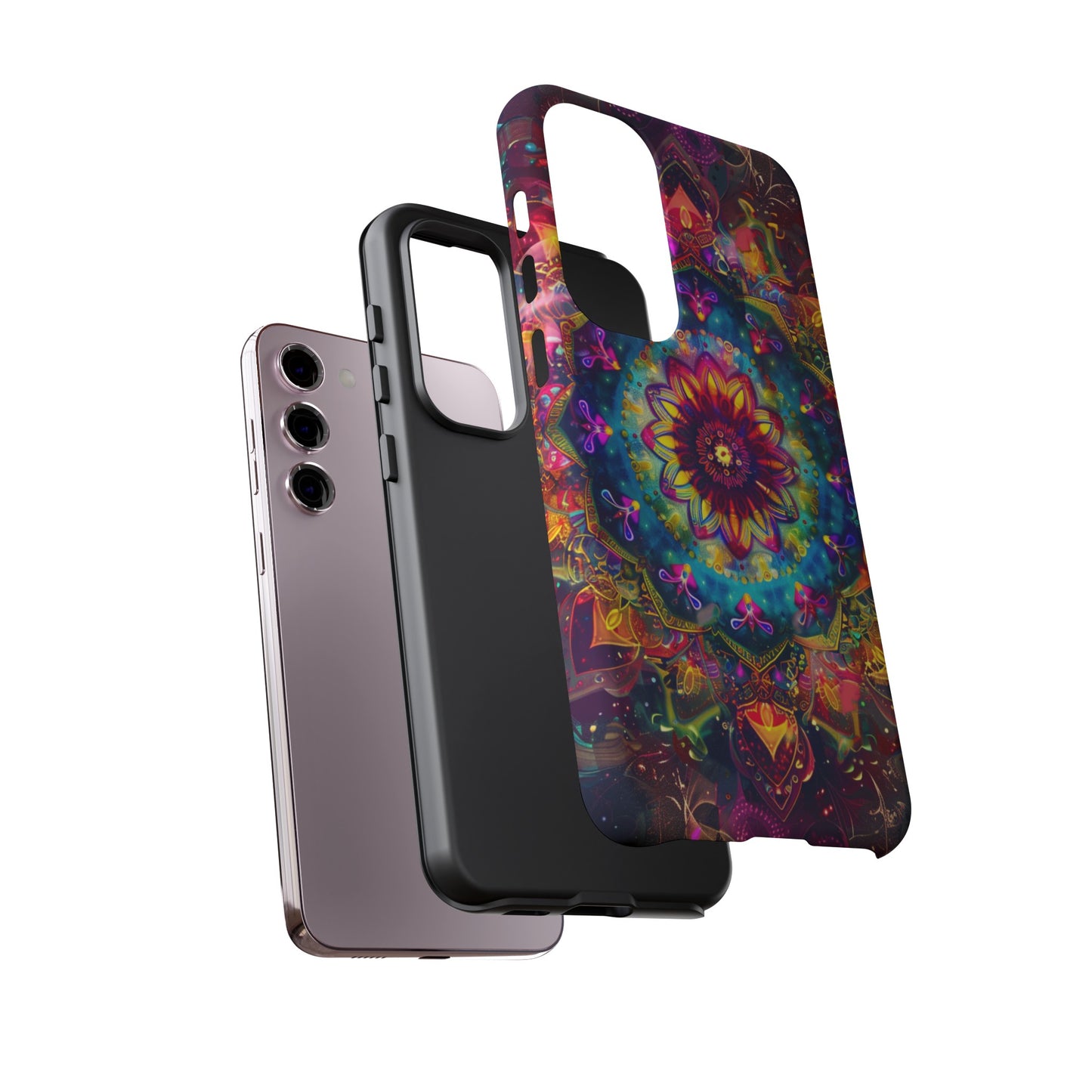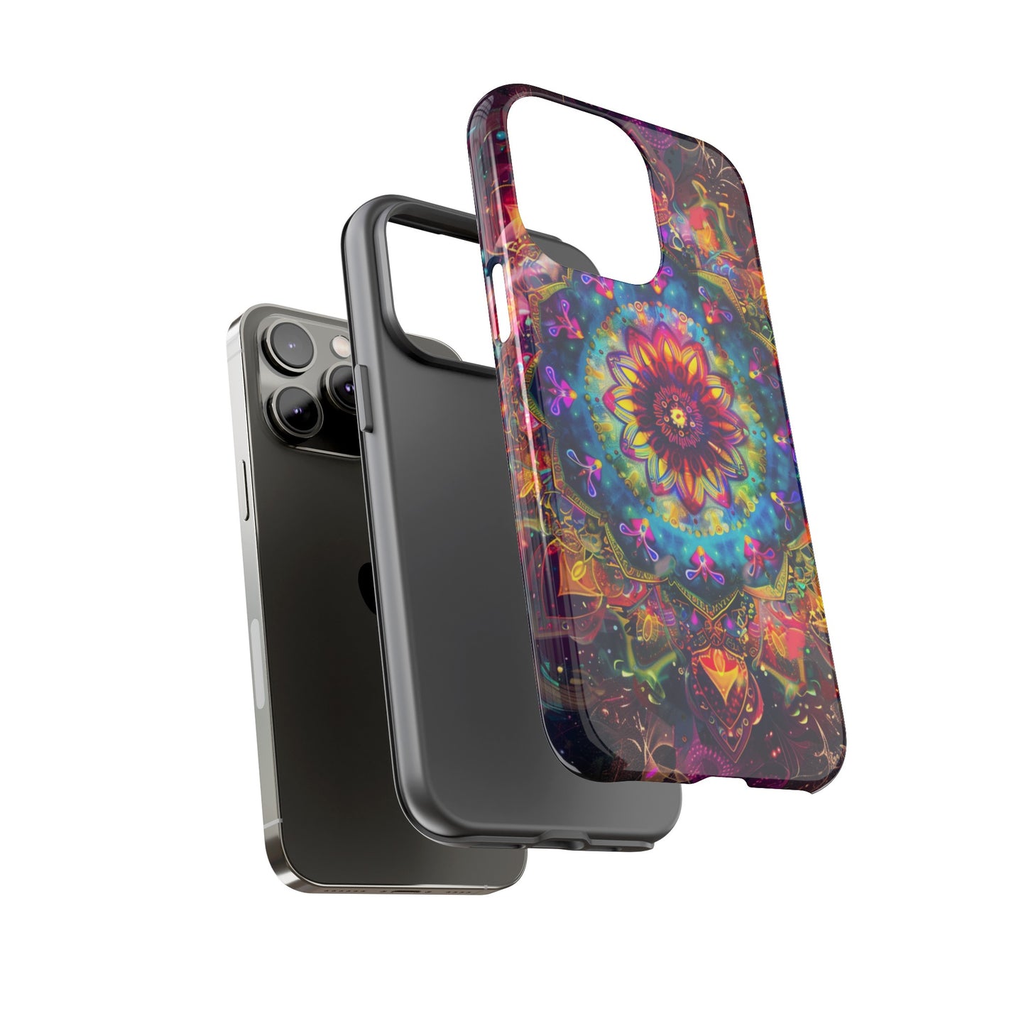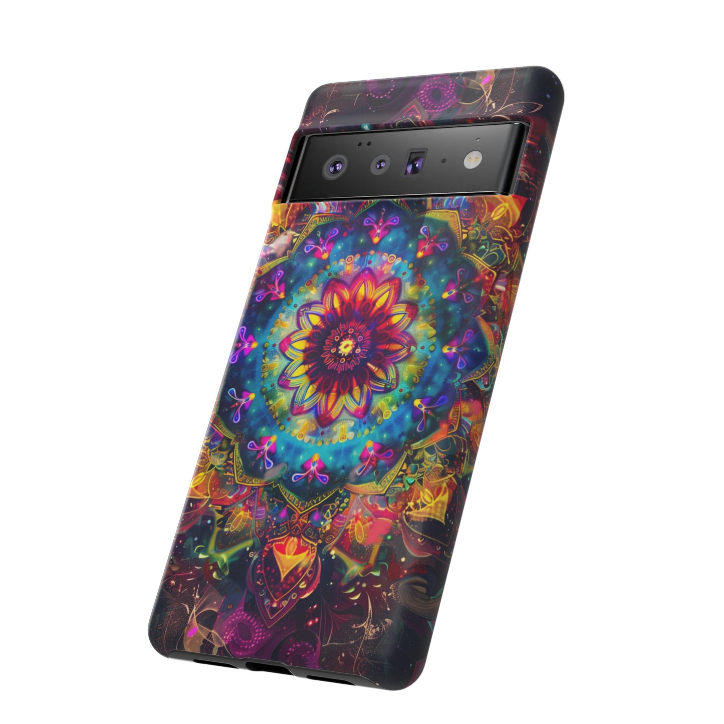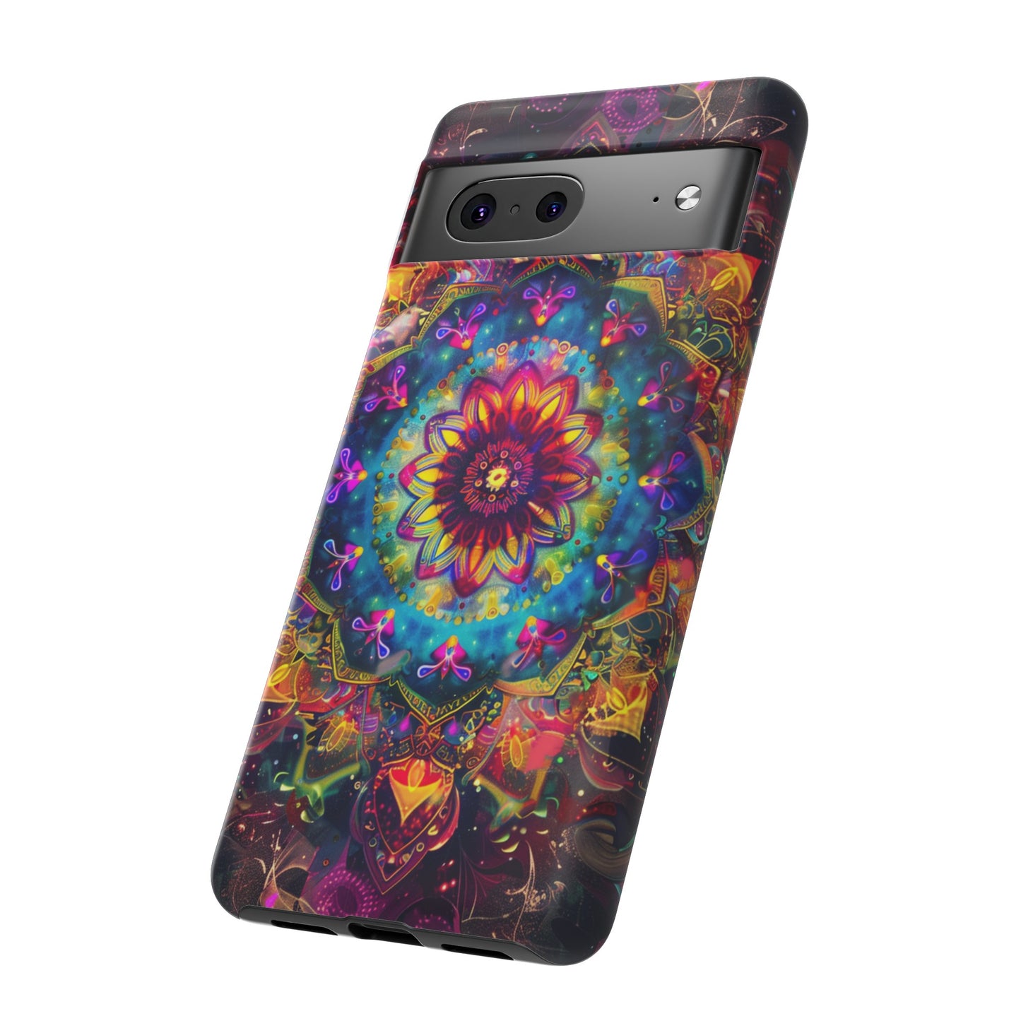 Explore the universe and spirituality with our Cosmic Stained Glass Mandala Phone Case. Ideal for iPhone, Samsung Galaxy, and Google Pixel users looking for a blend of art and protection."