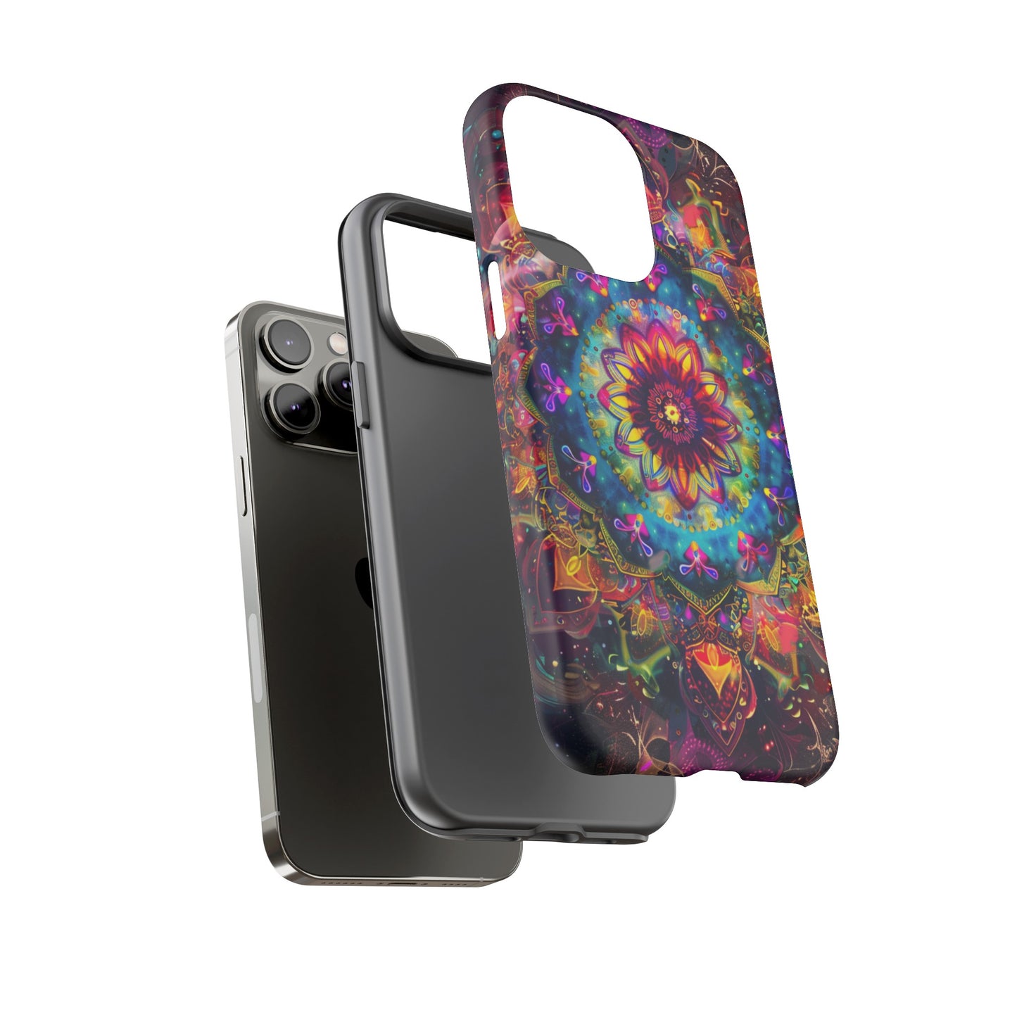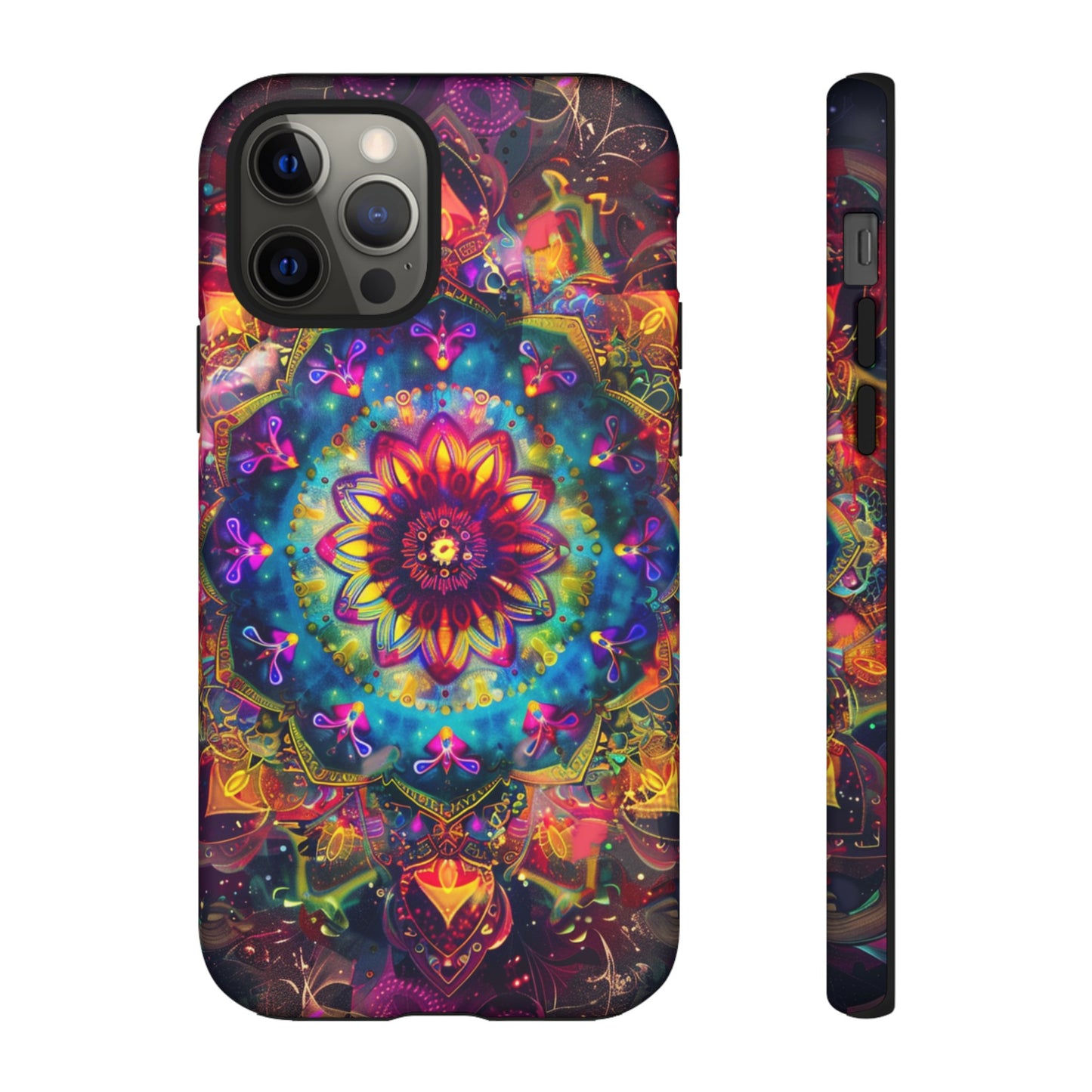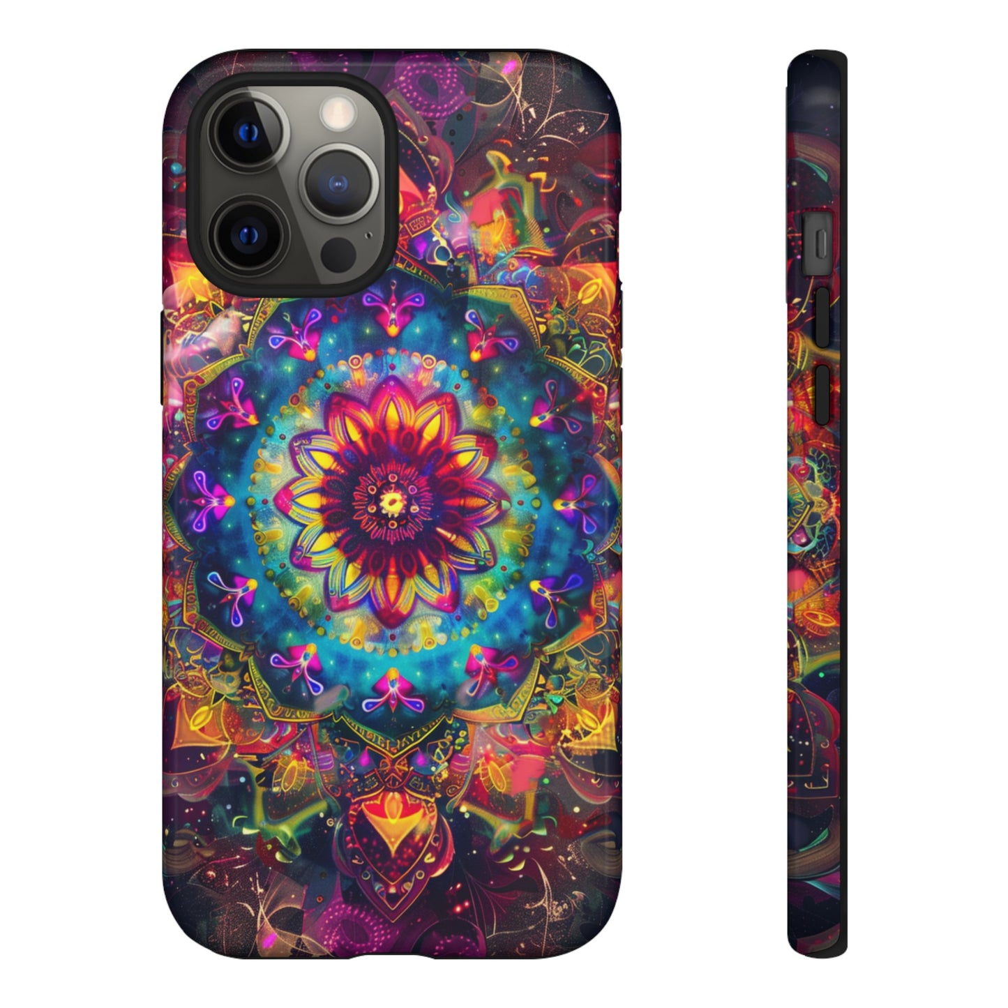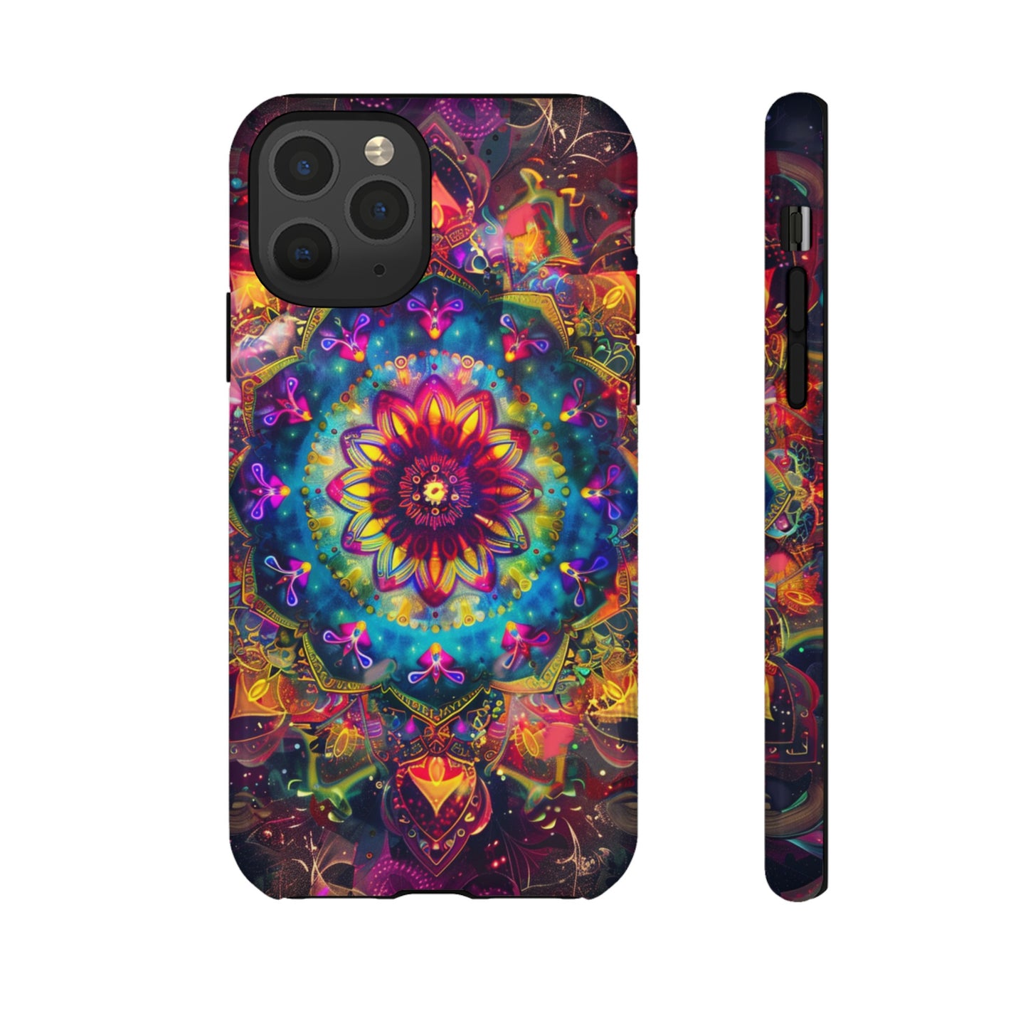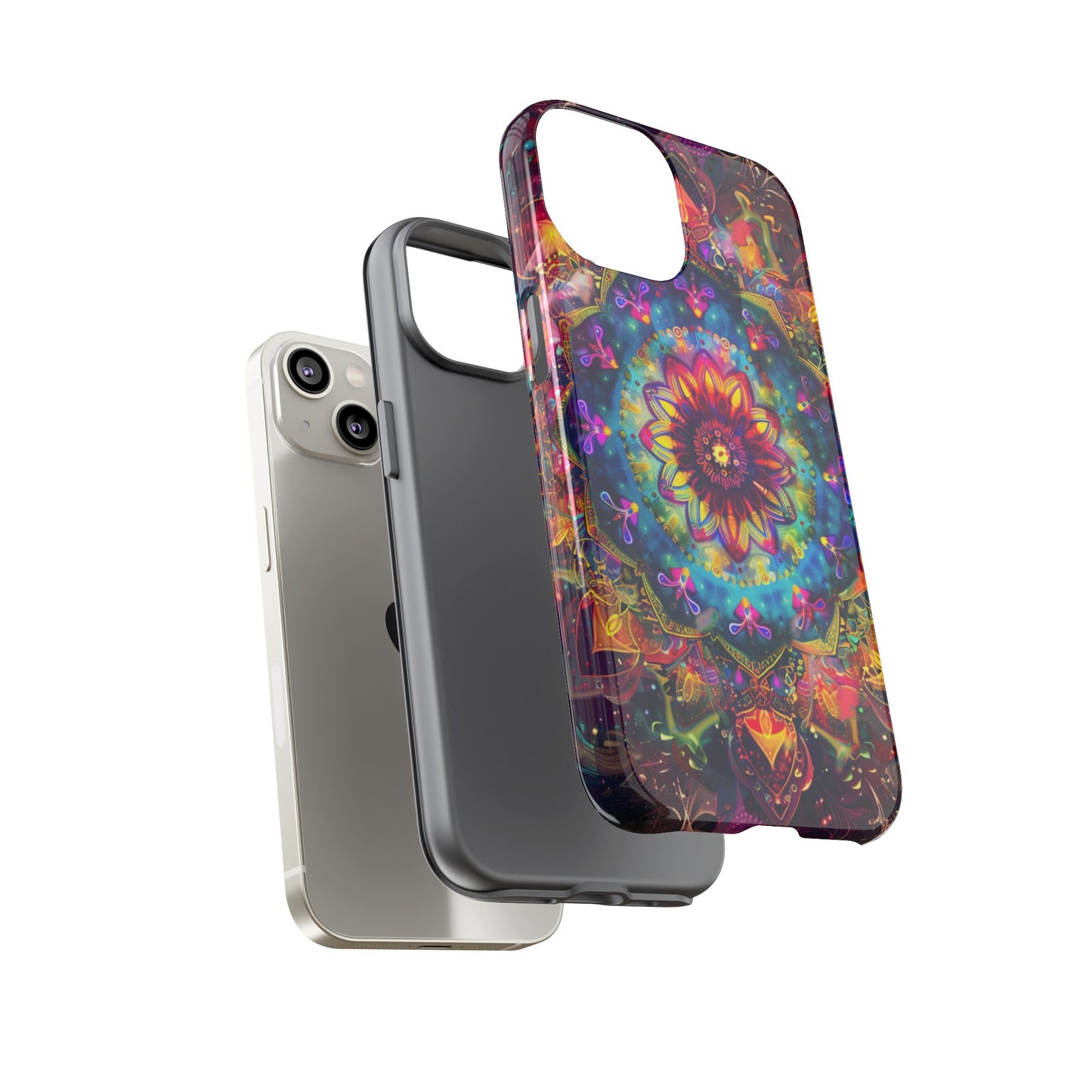 Explore the universe and spirituality with our Cosmic Stained Glass Mandala Phone Case. Ideal for iPhone, Samsung Galaxy, and Google Pixel users looking for a blend of art and protection."