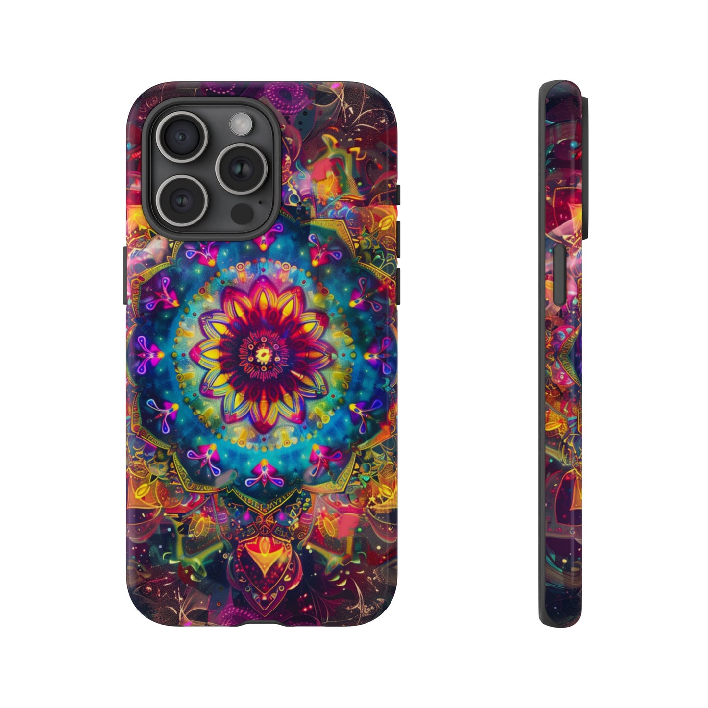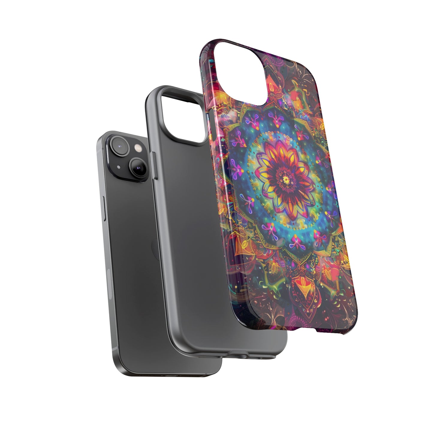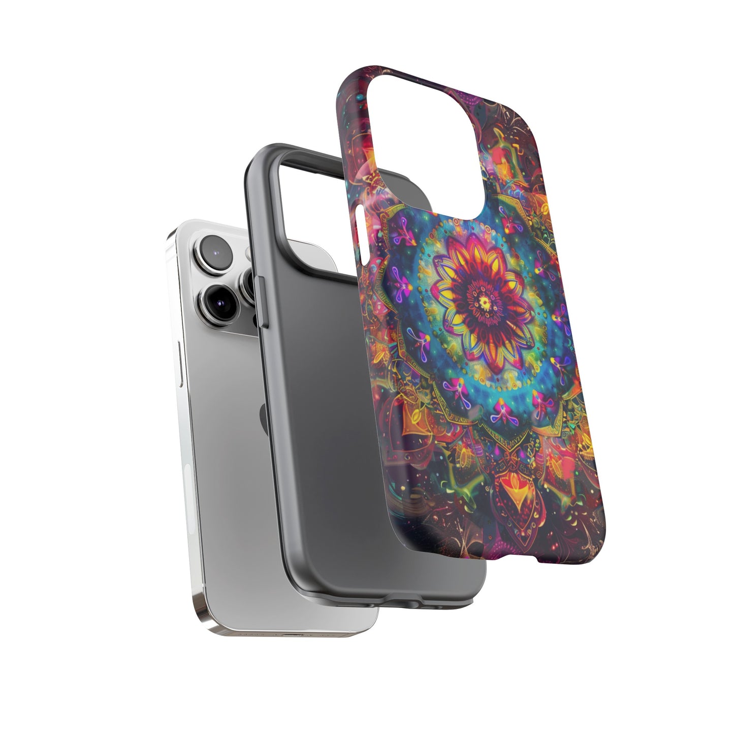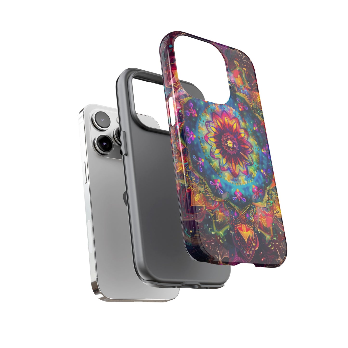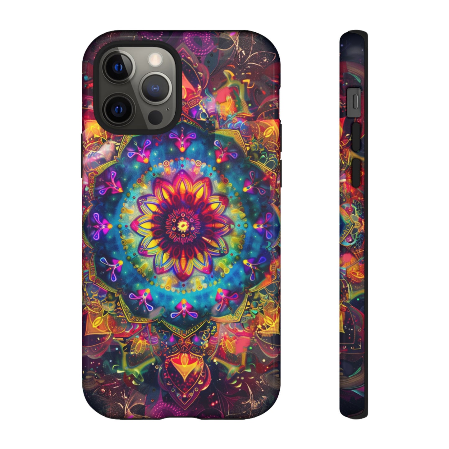 Explore the universe and spirituality with our Cosmic Stained Glass Mandala Phone Case. Ideal for iPhone, Samsung Galaxy, and Google Pixel users looking for a blend of art and protection."