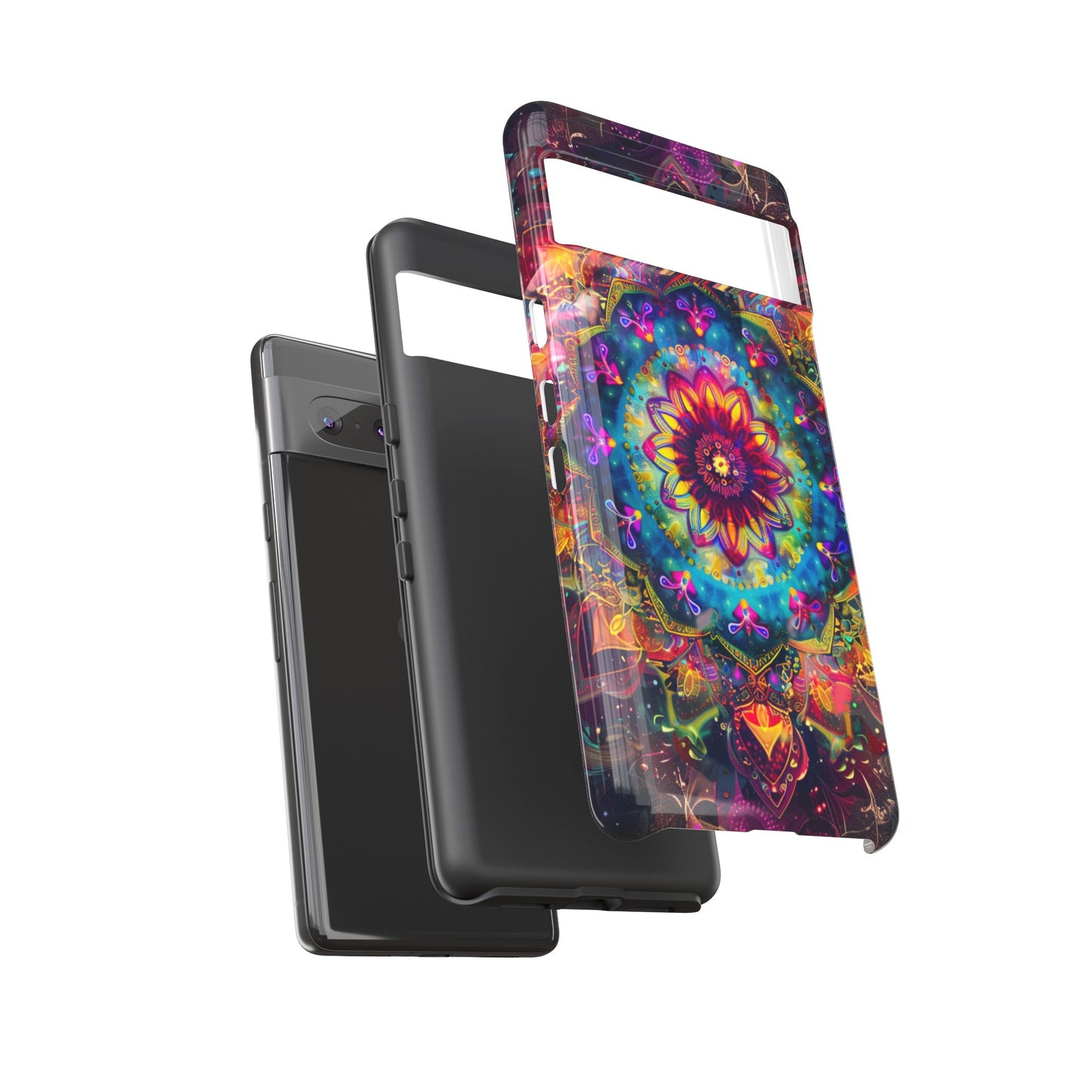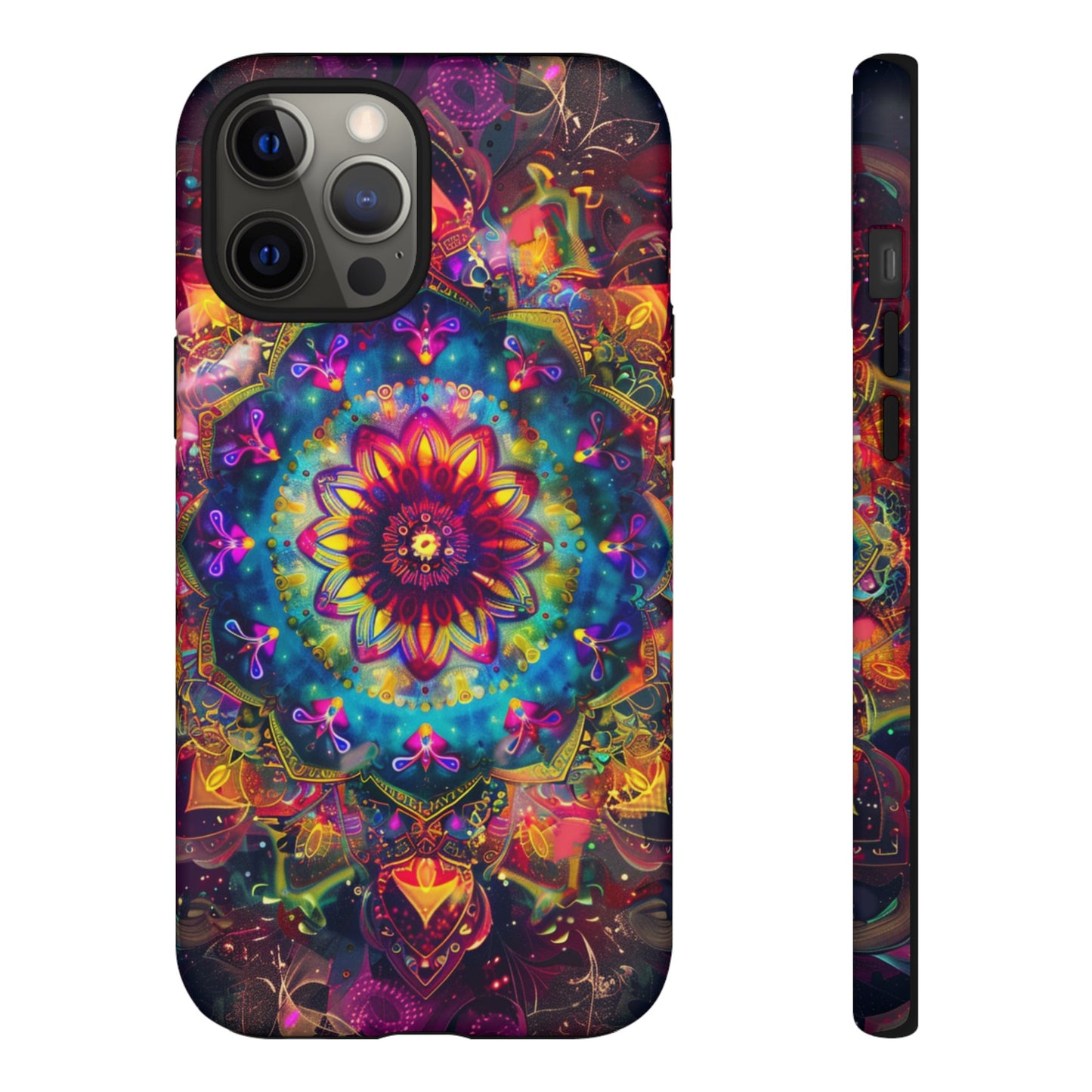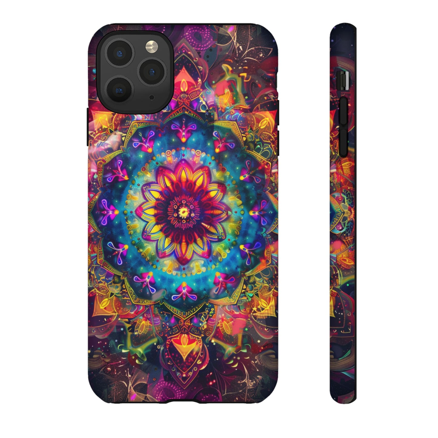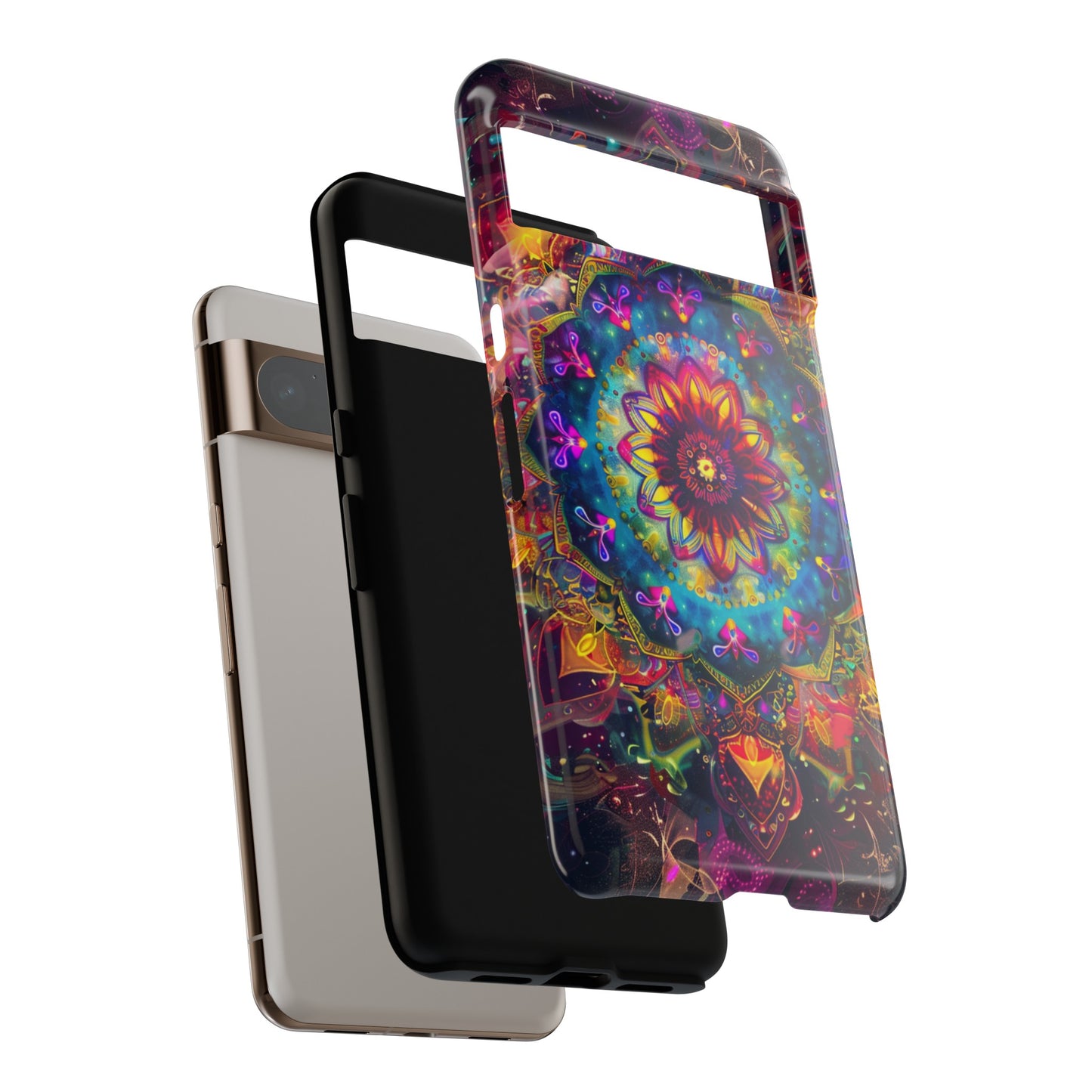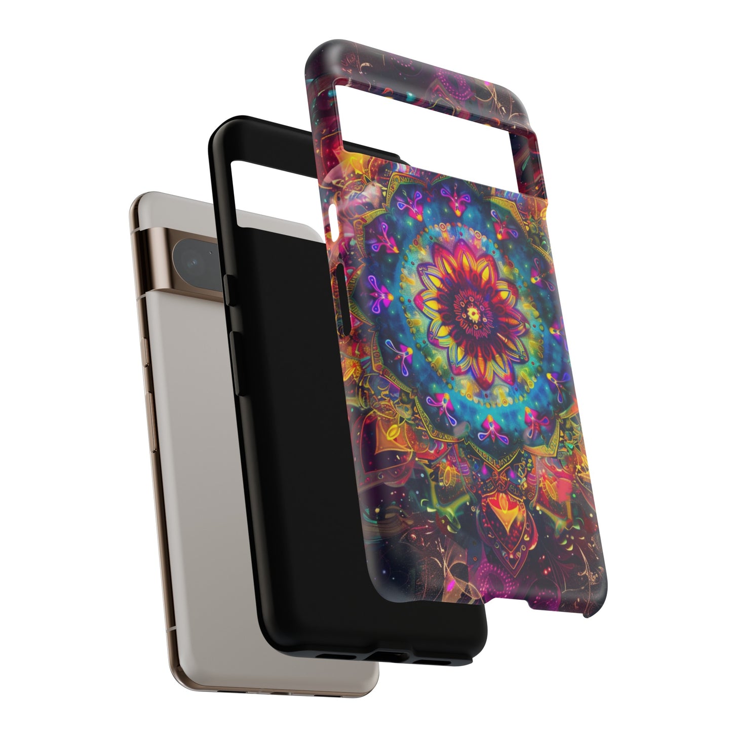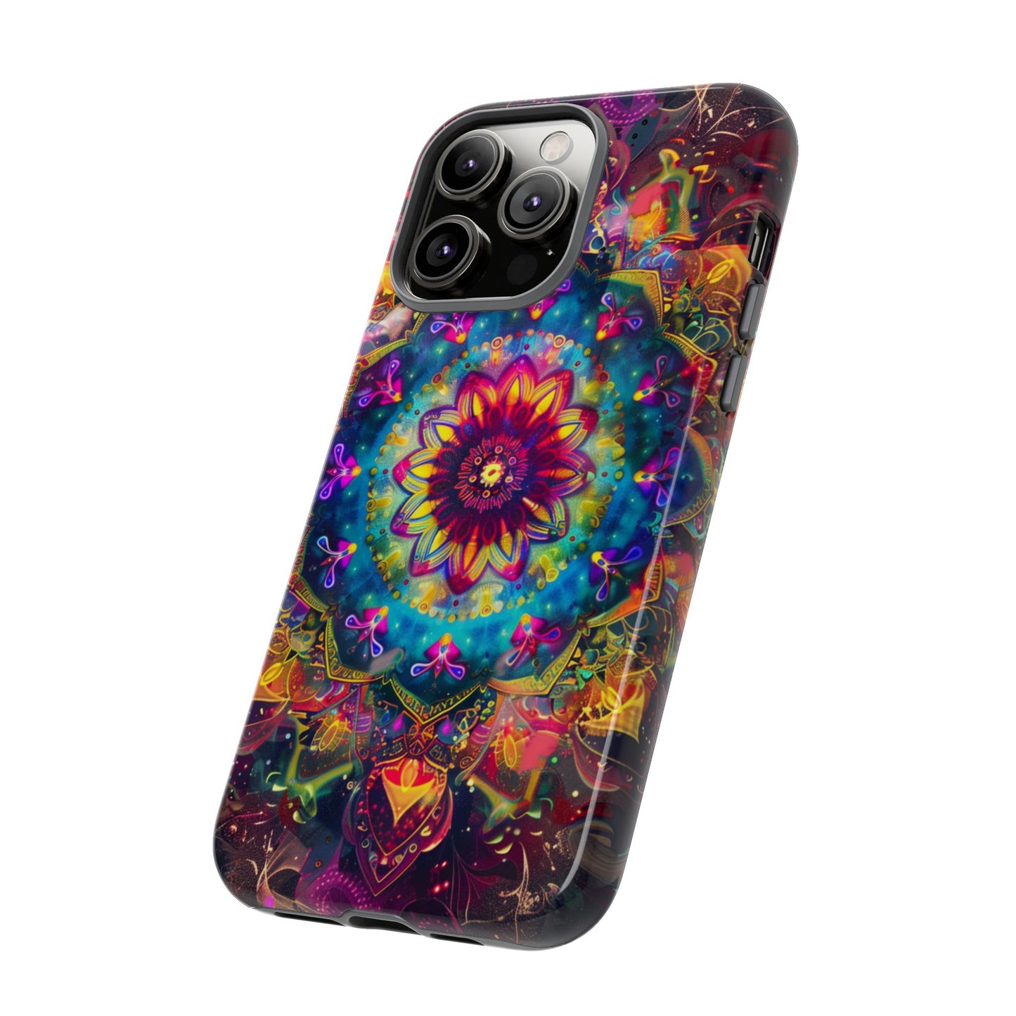 Explore the universe and spirituality with our Cosmic Stained Glass Mandala Phone Case. Ideal for iPhone, Samsung Galaxy, and Google Pixel users looking for a blend of art and protection."