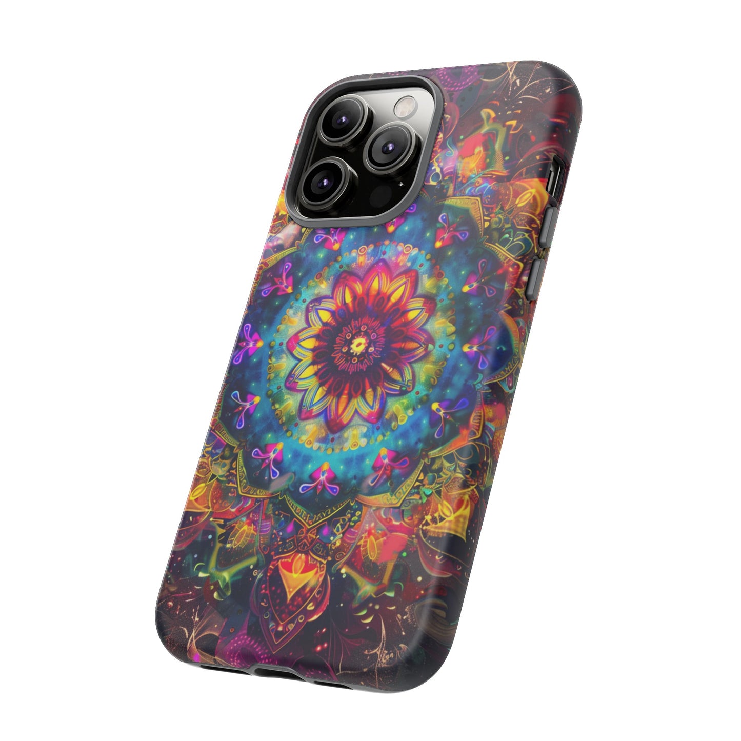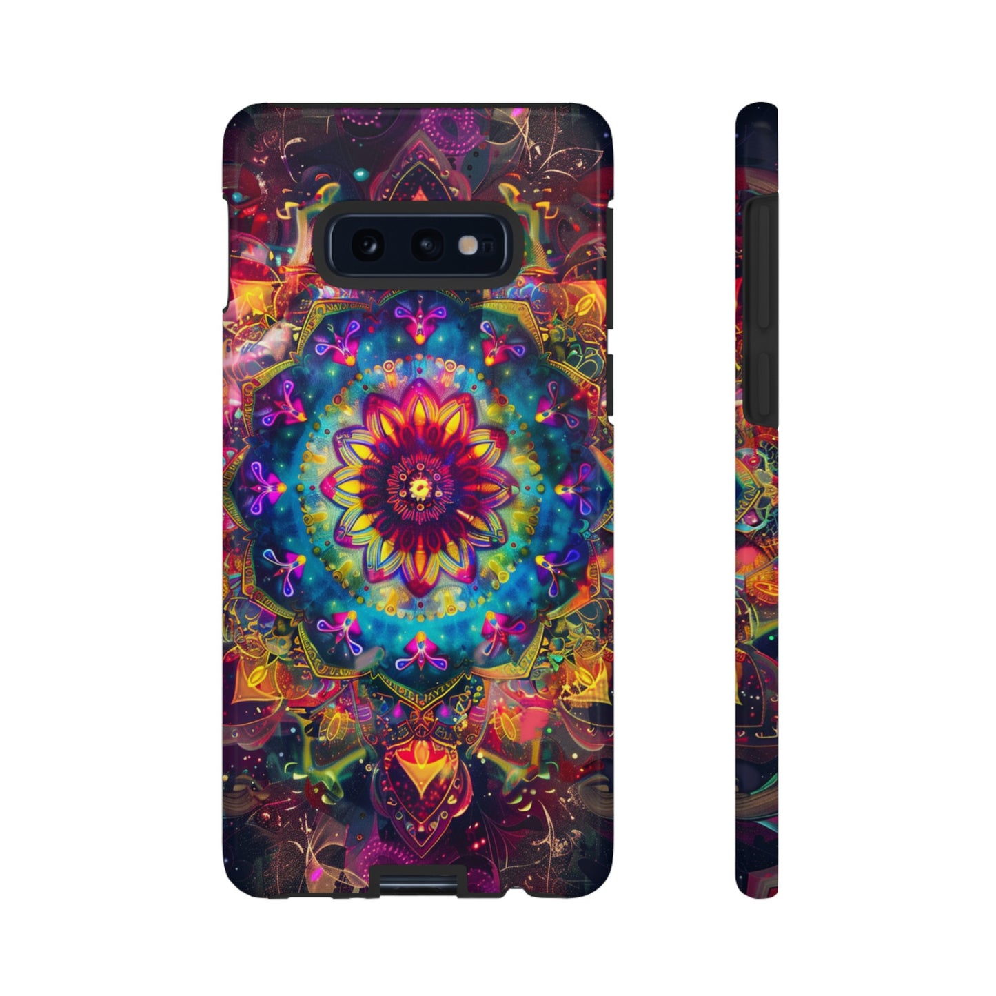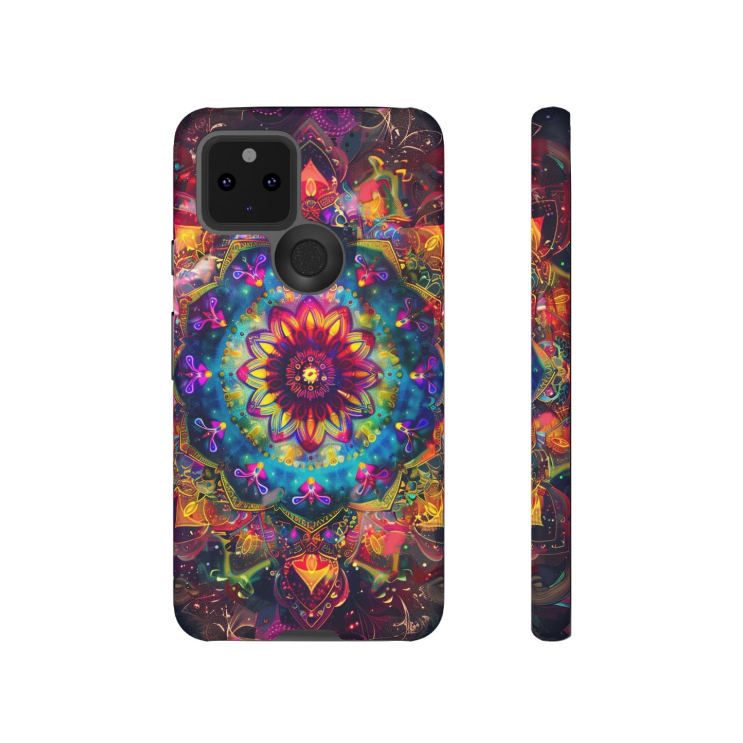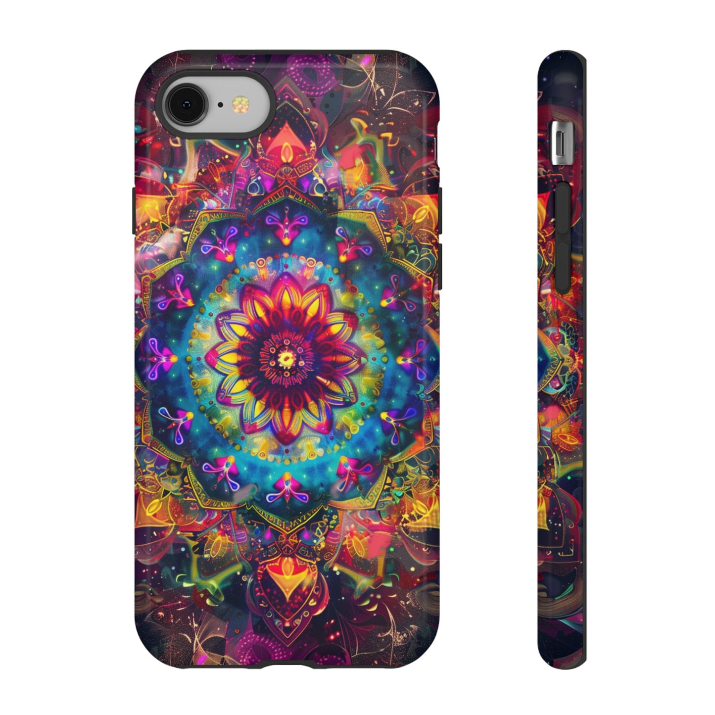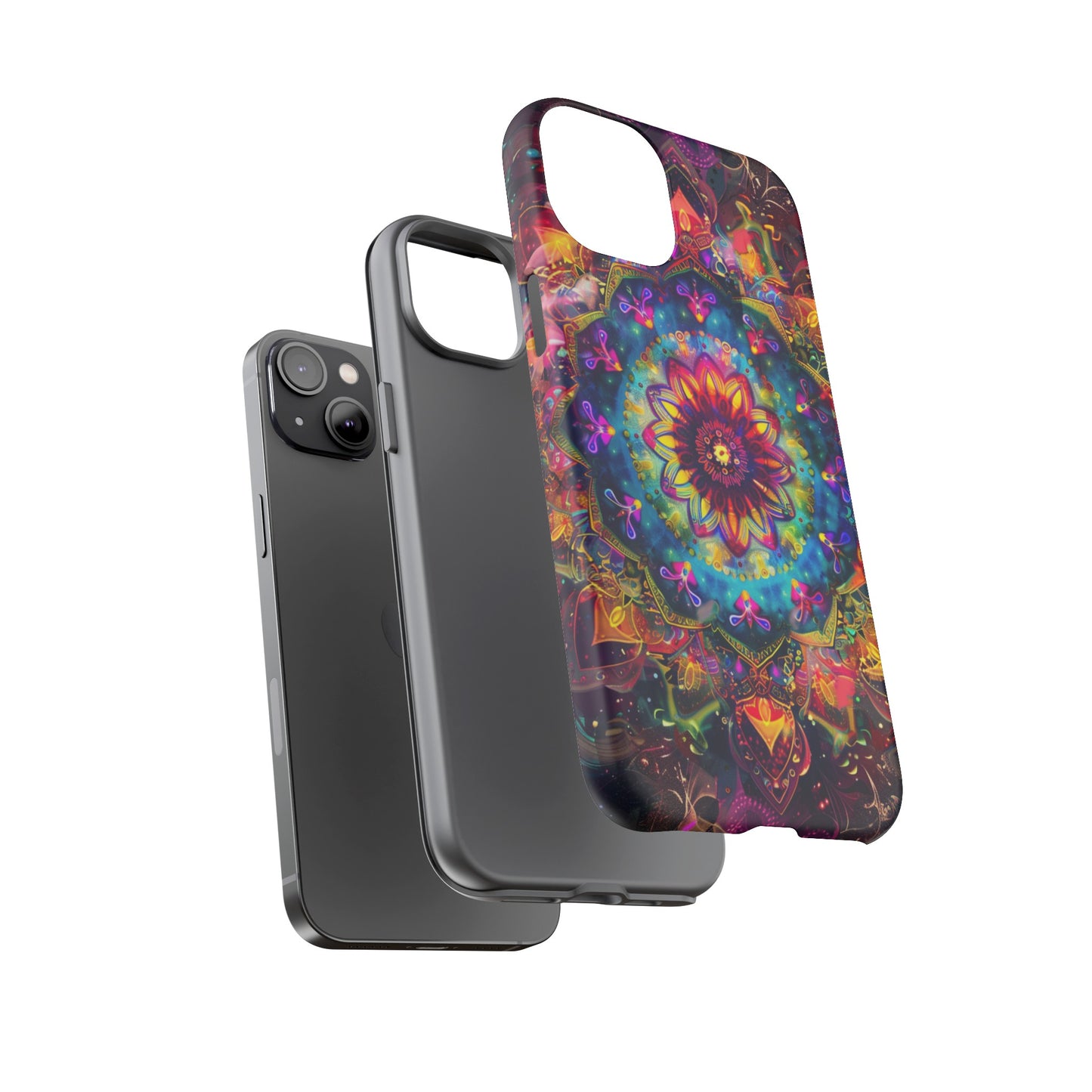 Explore the universe and spirituality with our Cosmic Stained Glass Mandala Phone Case. Ideal for iPhone, Samsung Galaxy, and Google Pixel users looking for a blend of art and protection."
