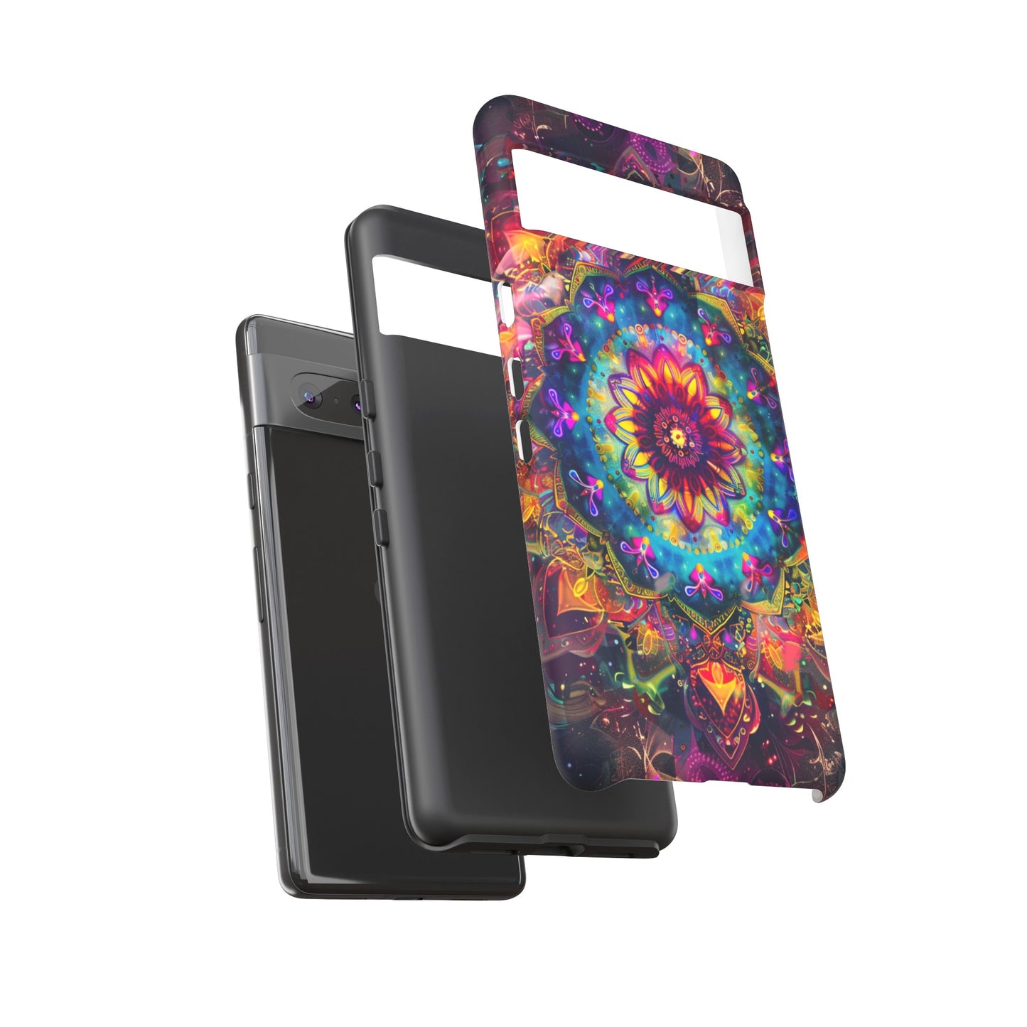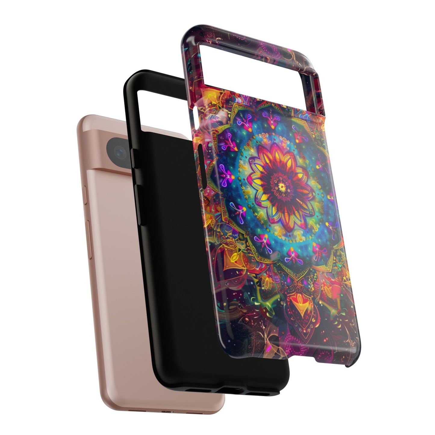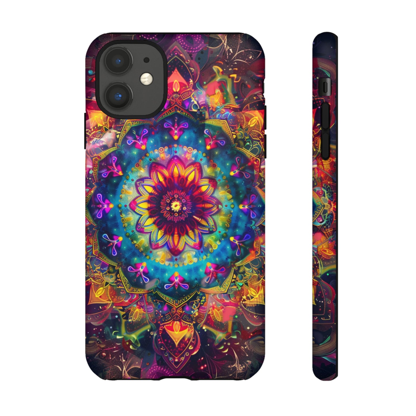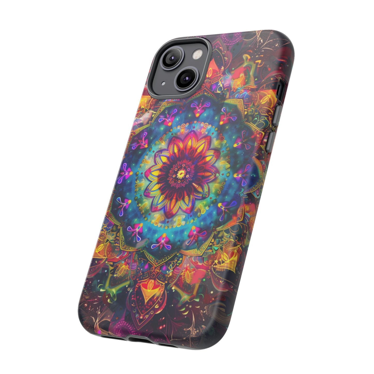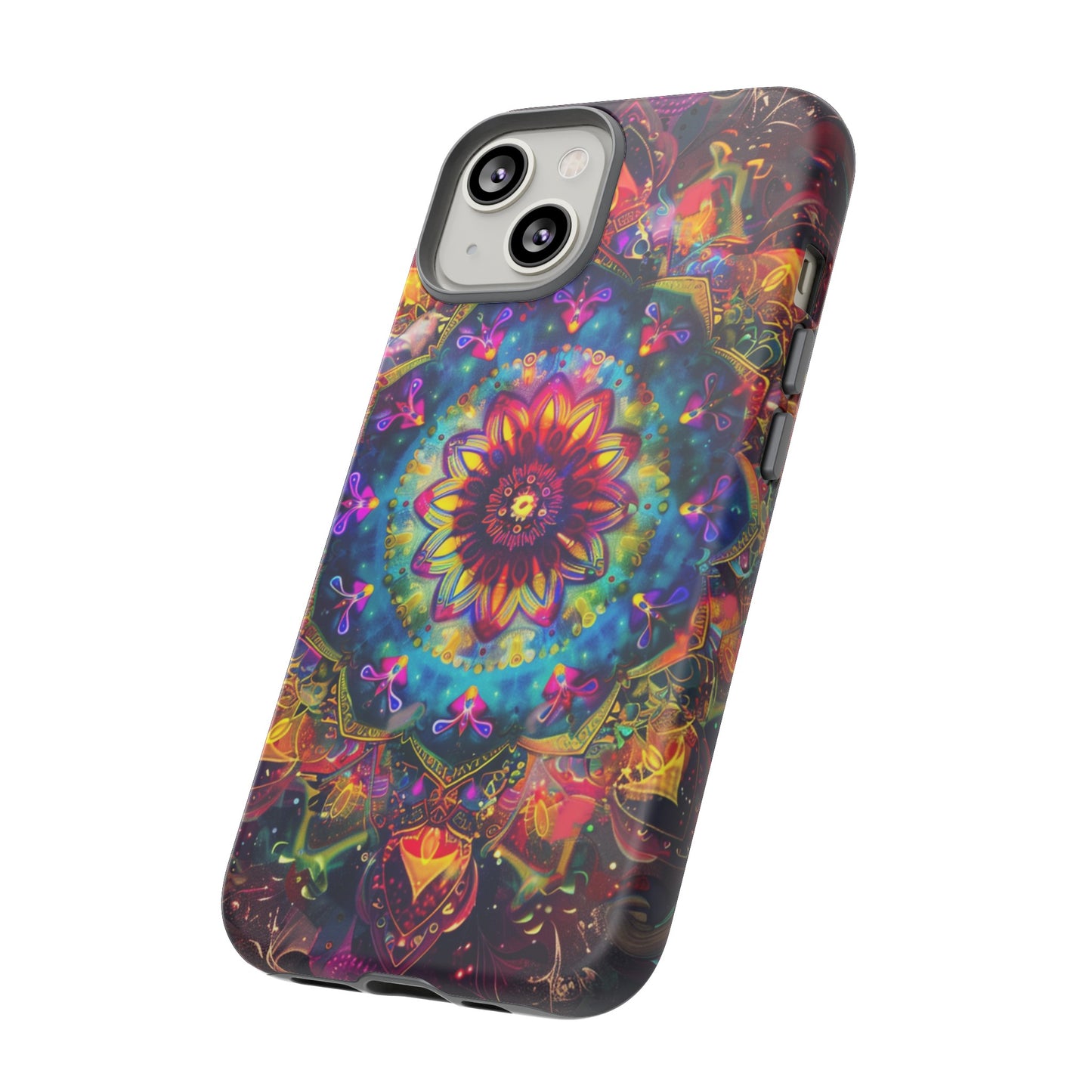 Explore the universe and spirituality with our Cosmic Stained Glass Mandala Phone Case. Ideal for iPhone, Samsung Galaxy, and Google Pixel users looking for a blend of art and protection."
