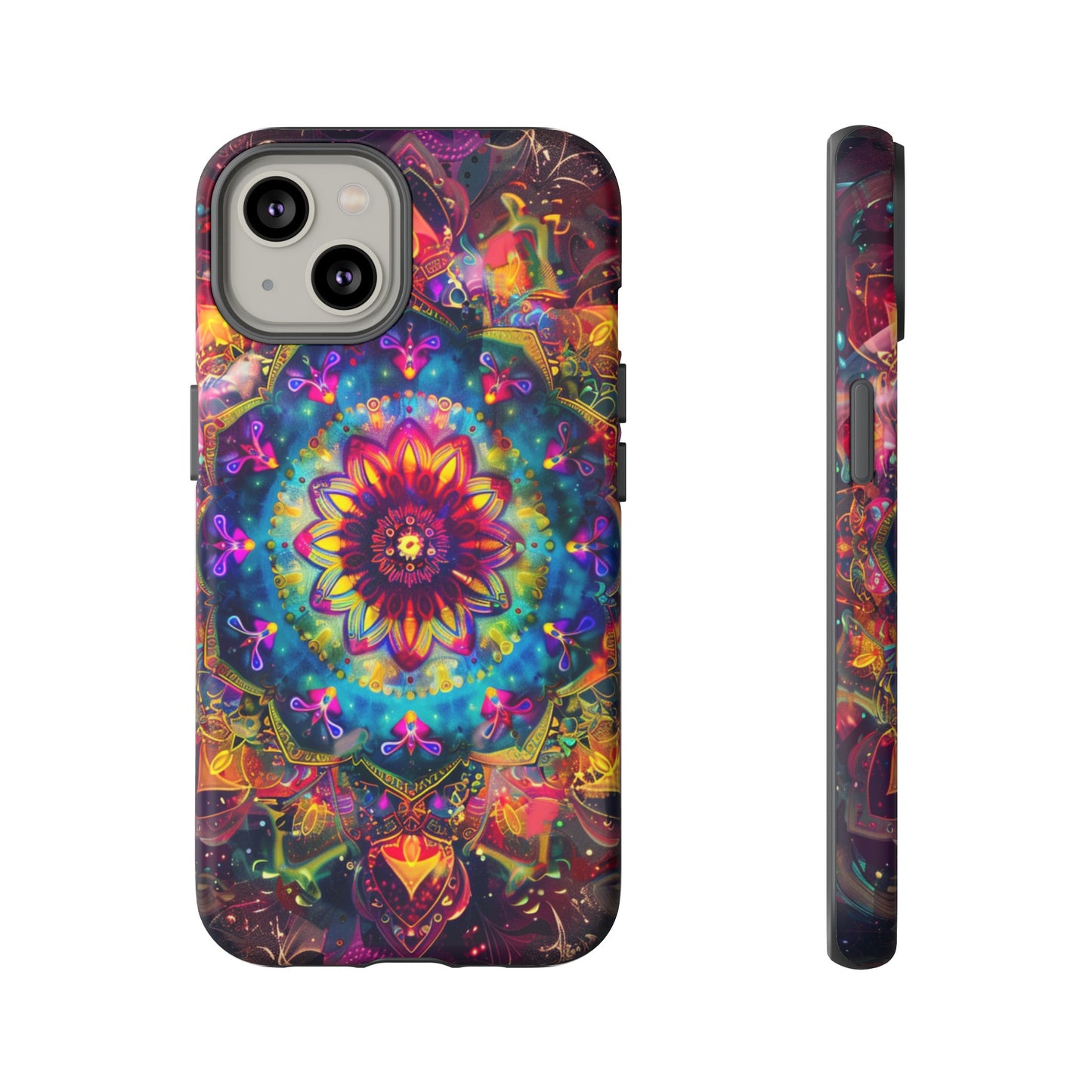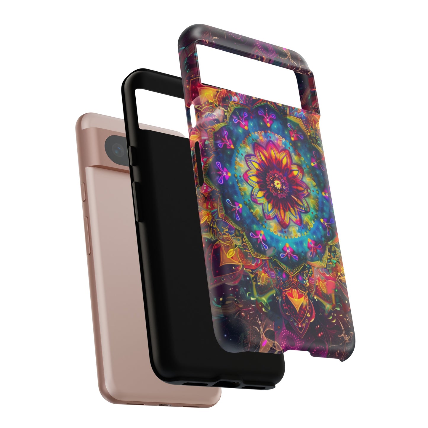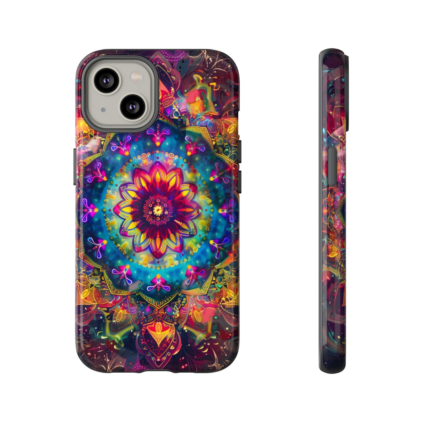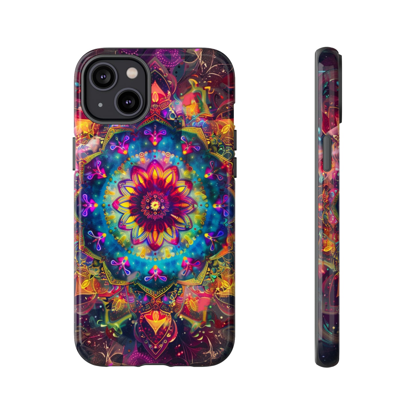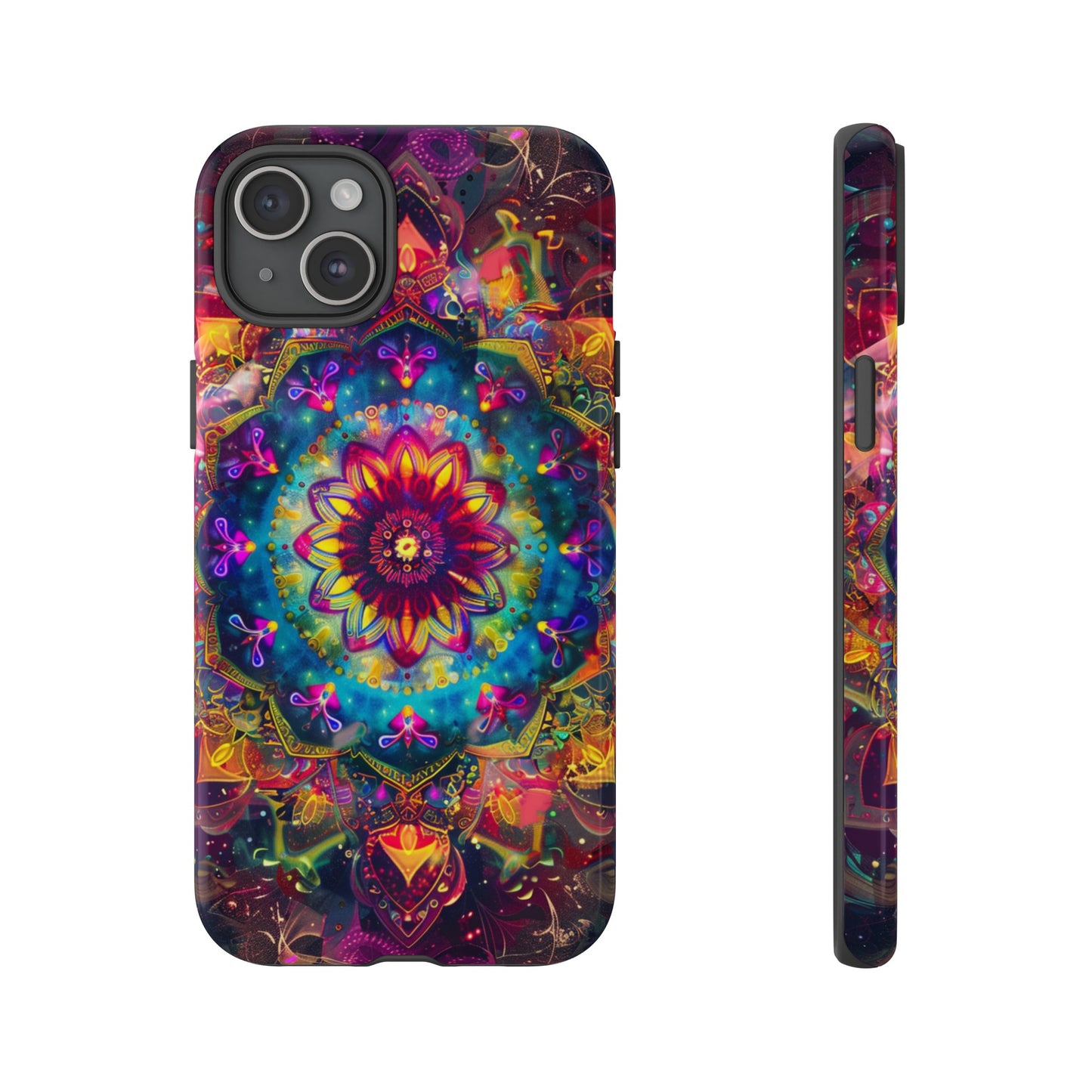 Explore the universe and spirituality with our Cosmic Stained Glass Mandala Phone Case. Ideal for iPhone, Samsung Galaxy, and Google Pixel users looking for a blend of art and protection."