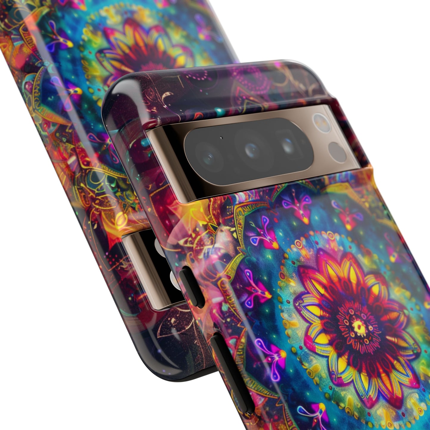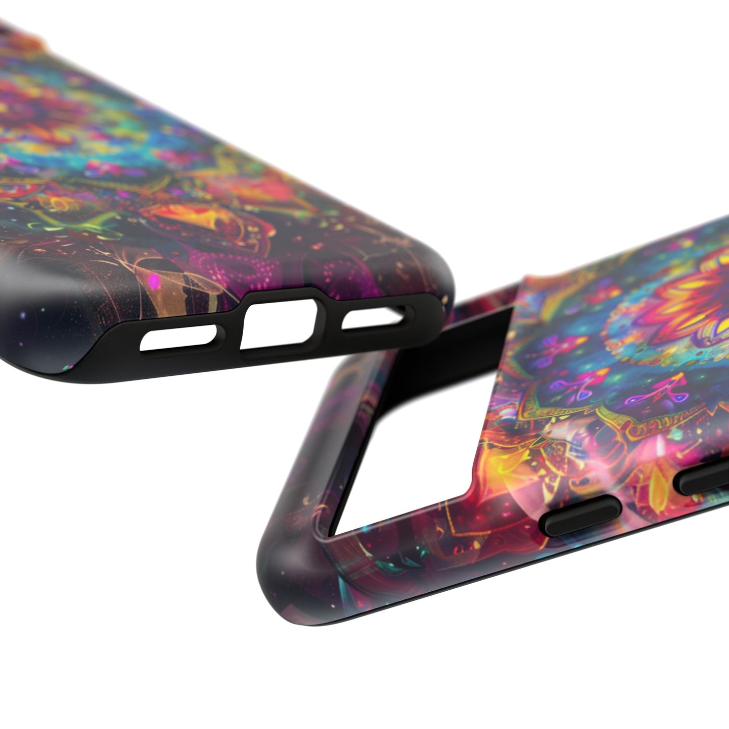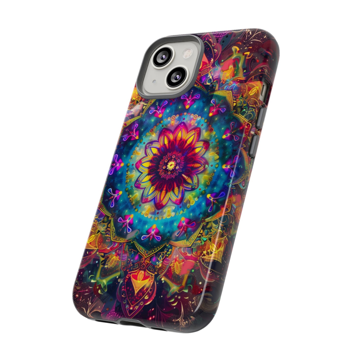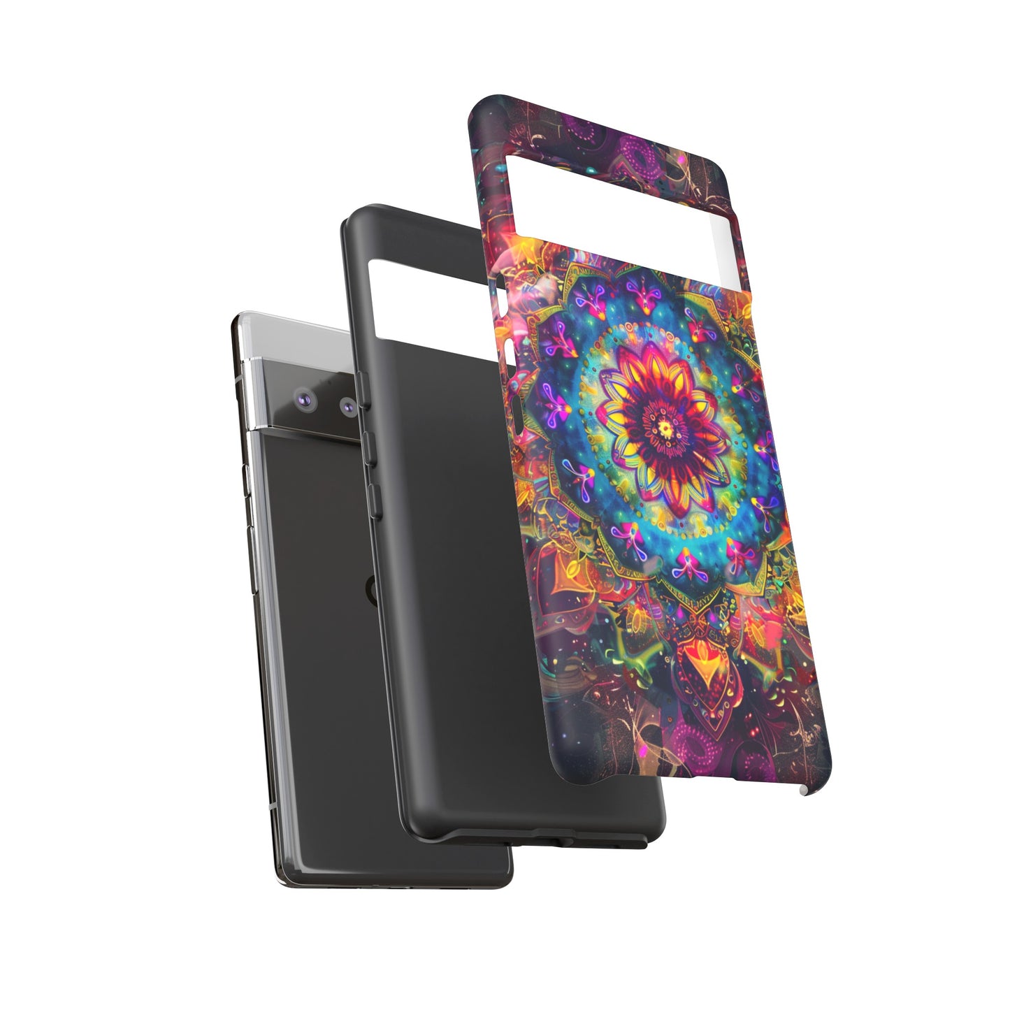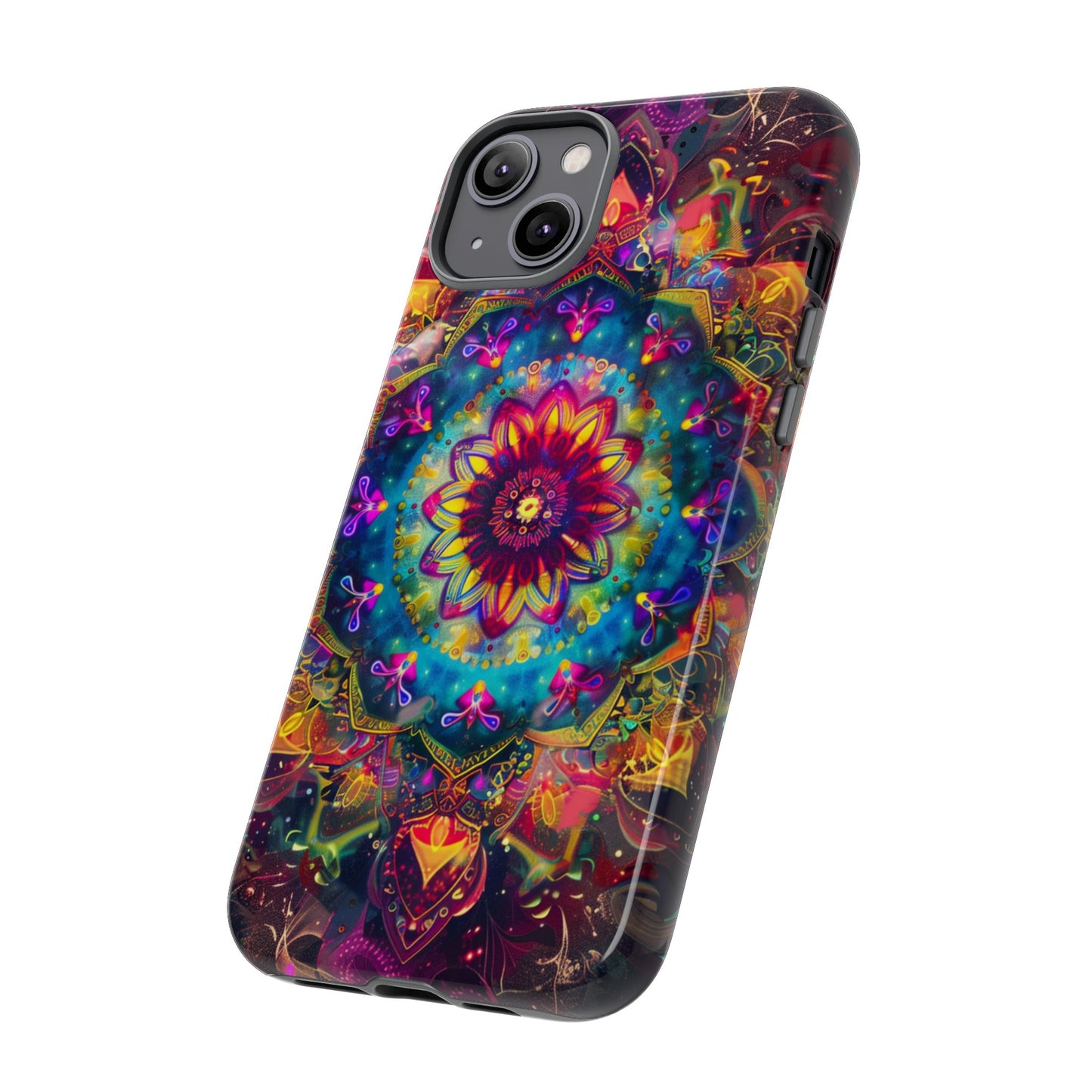 Explore the universe and spirituality with our Cosmic Stained Glass Mandala Phone Case. Ideal for iPhone, Samsung Galaxy, and Google Pixel users looking for a blend of art and protection."