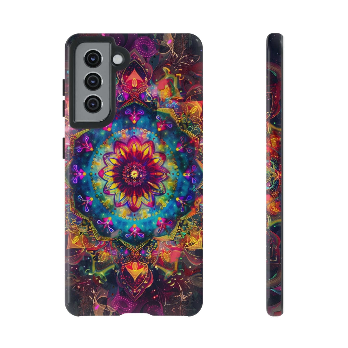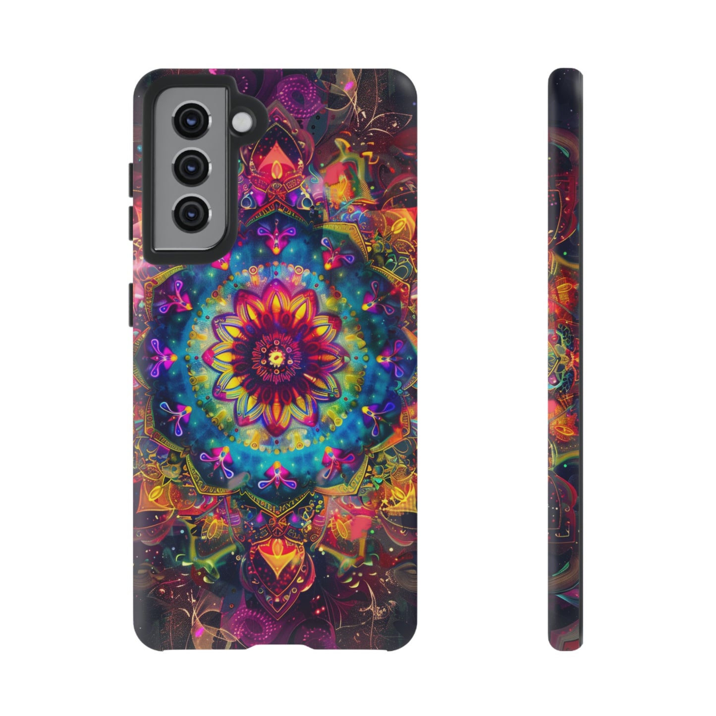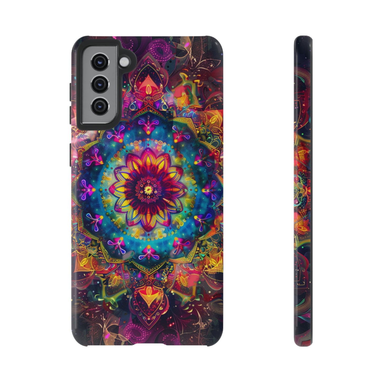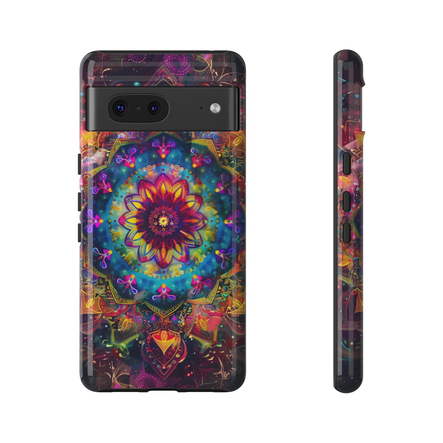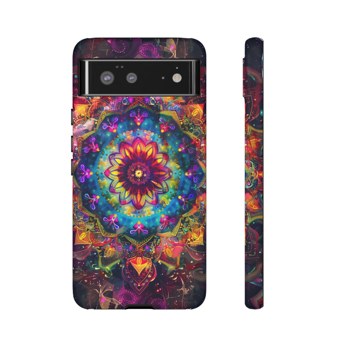 Elevate your device with the spiritual and cosmic elegance of our Cosmic Stained Glass Mandala Phone Case. Compatible with iPhone 15, 14, Pro Max, 13, 12, and Samsung Galaxy S24, S23, S22, S21, as well as Google Pixel devices, this case features a mesmerizing mandala design, rendered in the style of vibrant stained glass. The intricate patterns combine rich, cosmic colors that capture the essence of both the universe and spiritual symbolism. This case is not just a protective accessory; it’s a piece of art that offers a daily reminder of unity and harmony.
