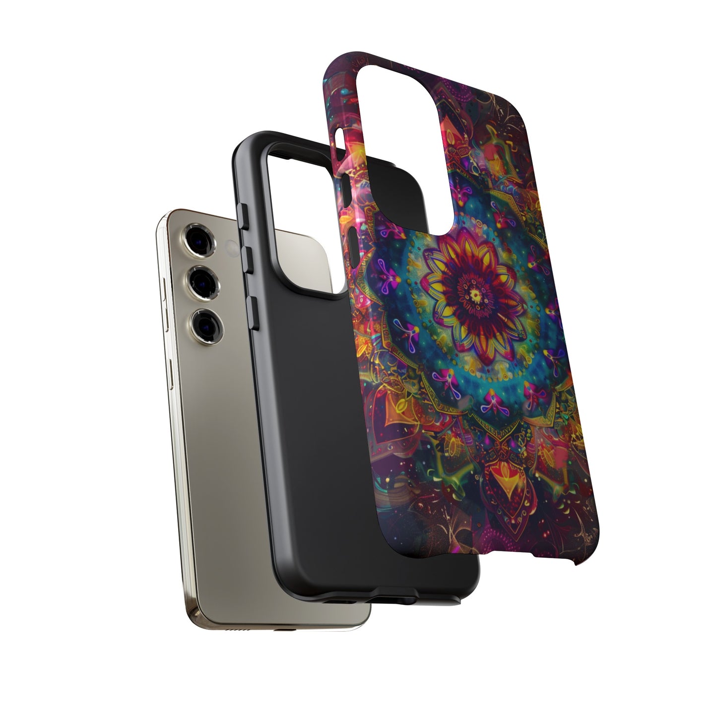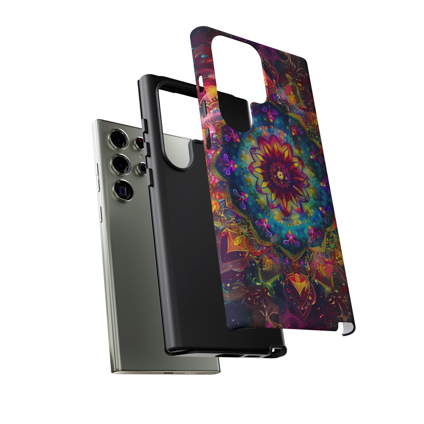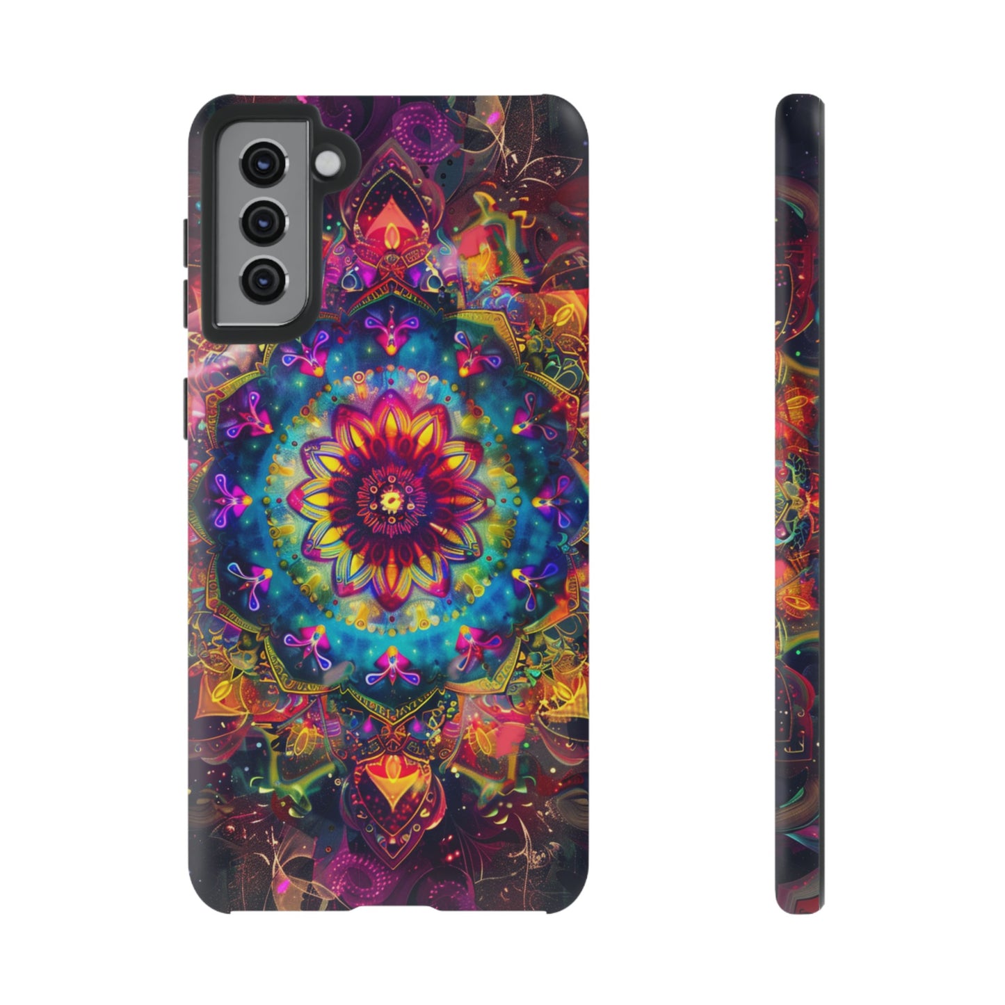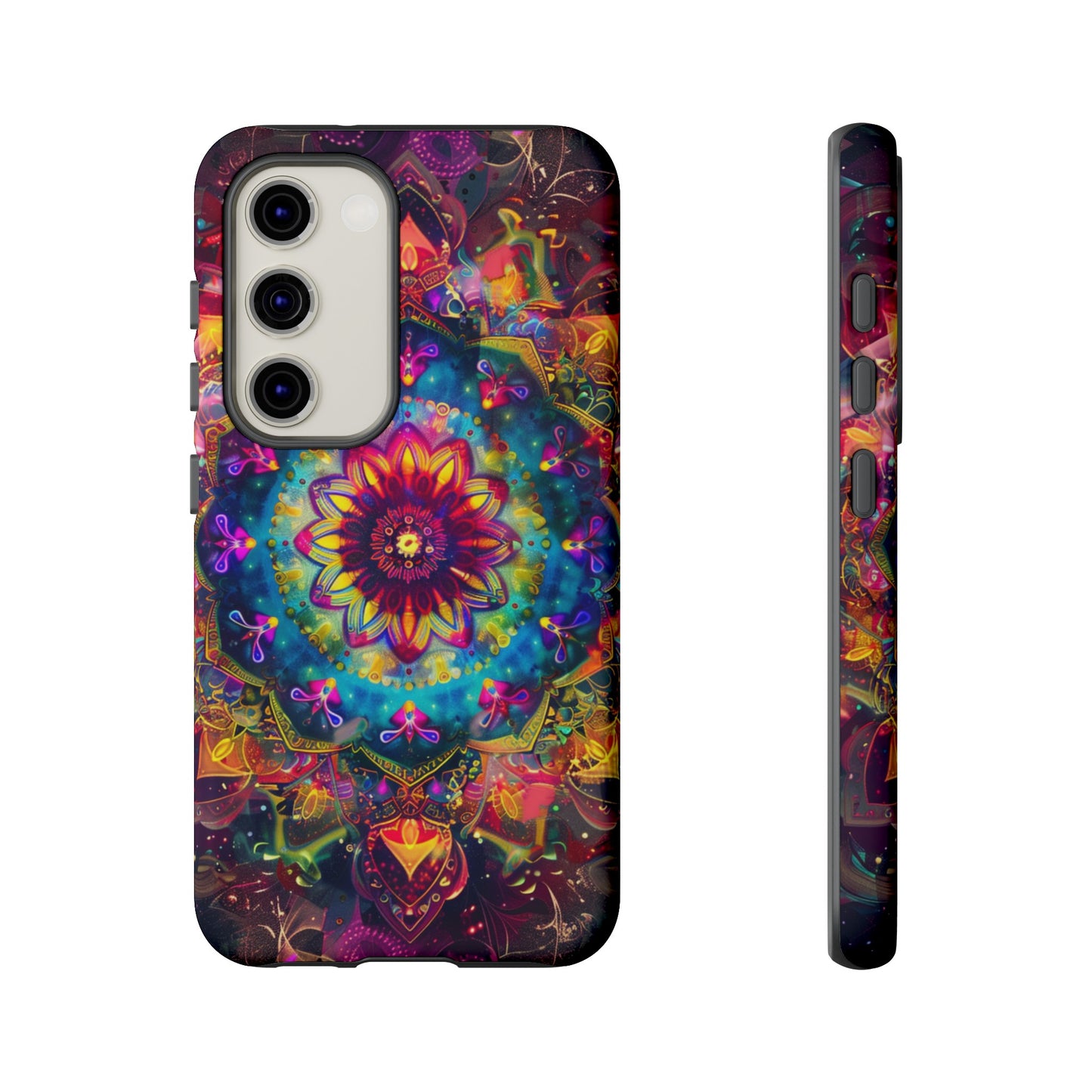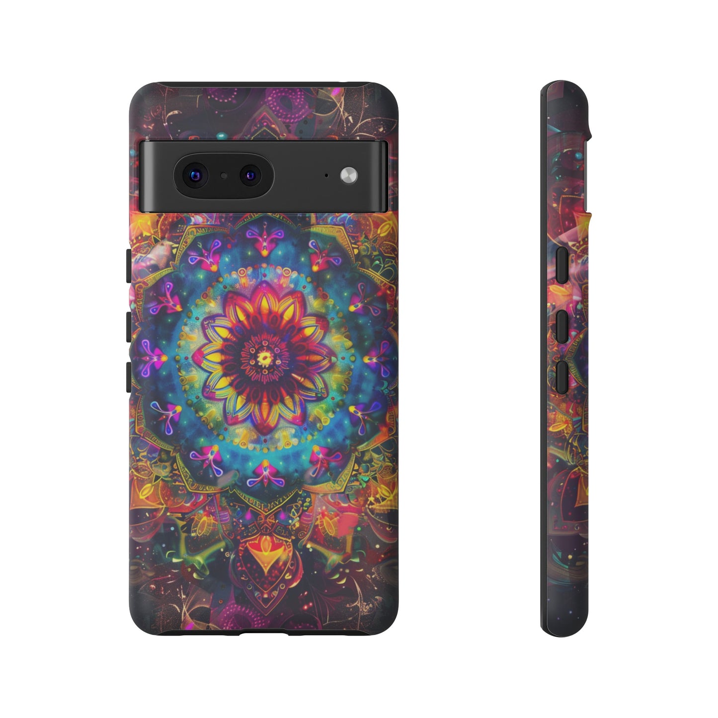 Elevate your device with the spiritual and cosmic elegance of our Cosmic Stained Glass Mandala Phone Case. Compatible with iPhone 15, 14, Pro Max, 13, 12, and Samsung Galaxy S24, S23, S22, S21, as well as Google Pixel devices, this case features a mesmerizing mandala design, rendered in the style of vibrant stained glass. The intricate patterns combine rich, cosmic colors that capture the essence of both the universe and spiritual symbolism. This case is not just a protective accessory; it’s a piece of art that offers a daily reminder of unity and harmony.