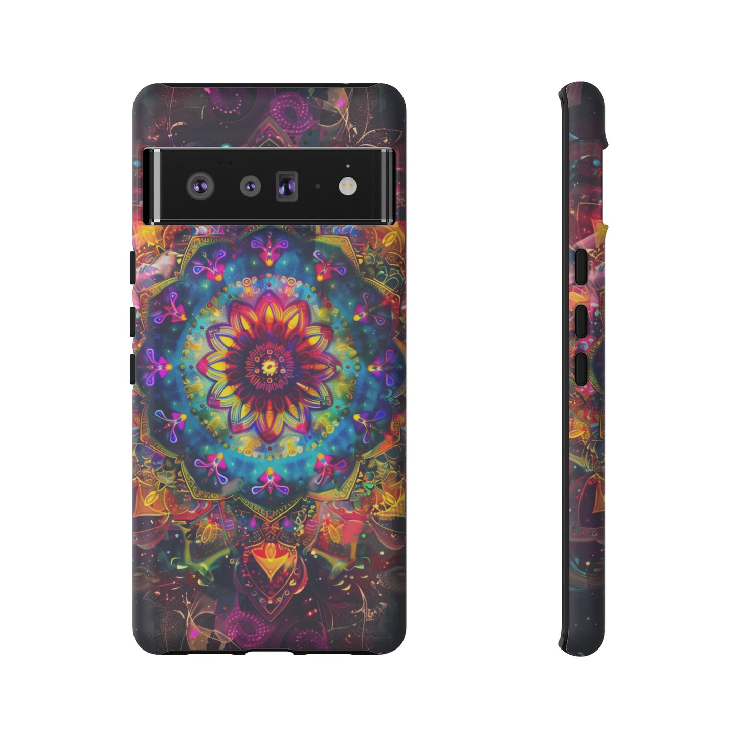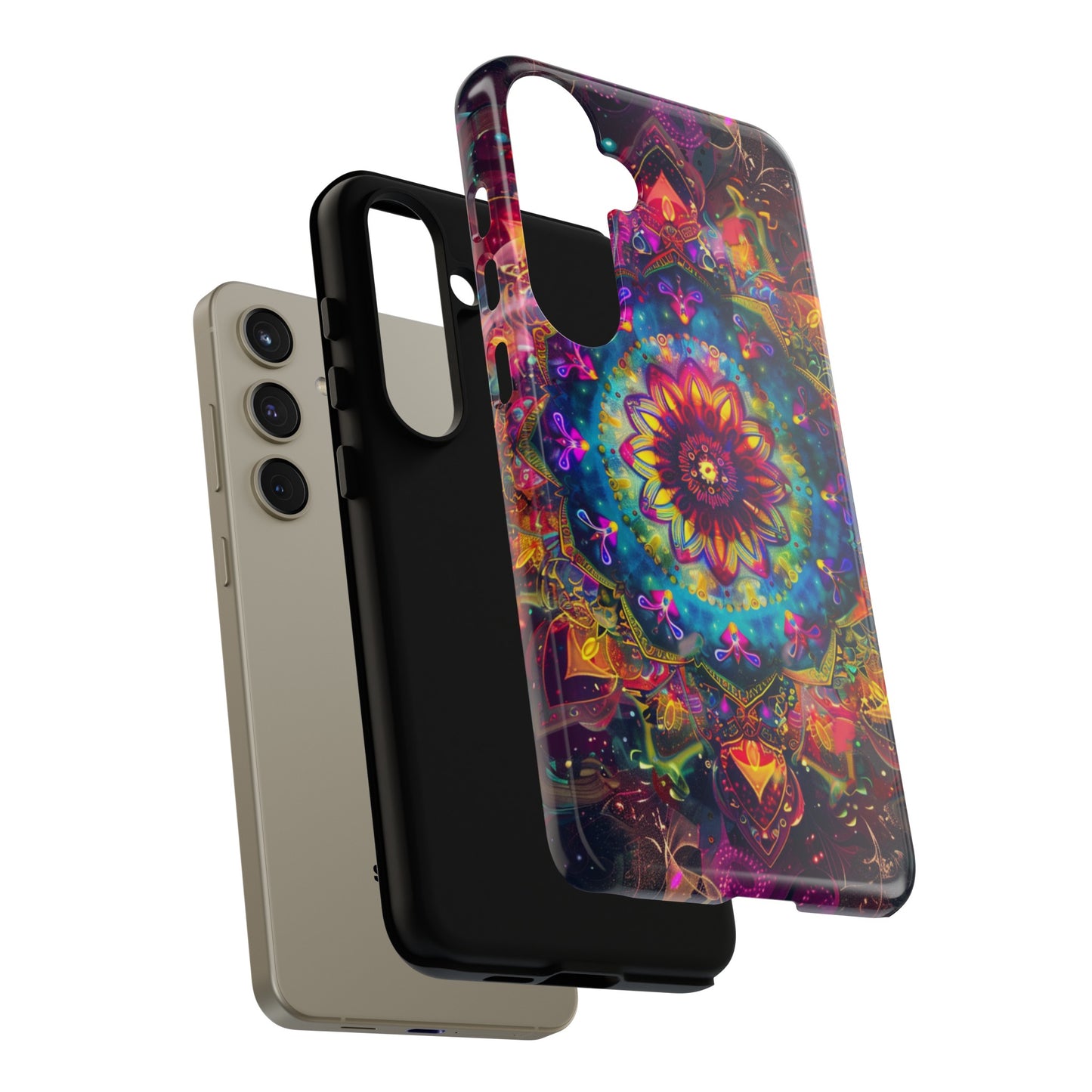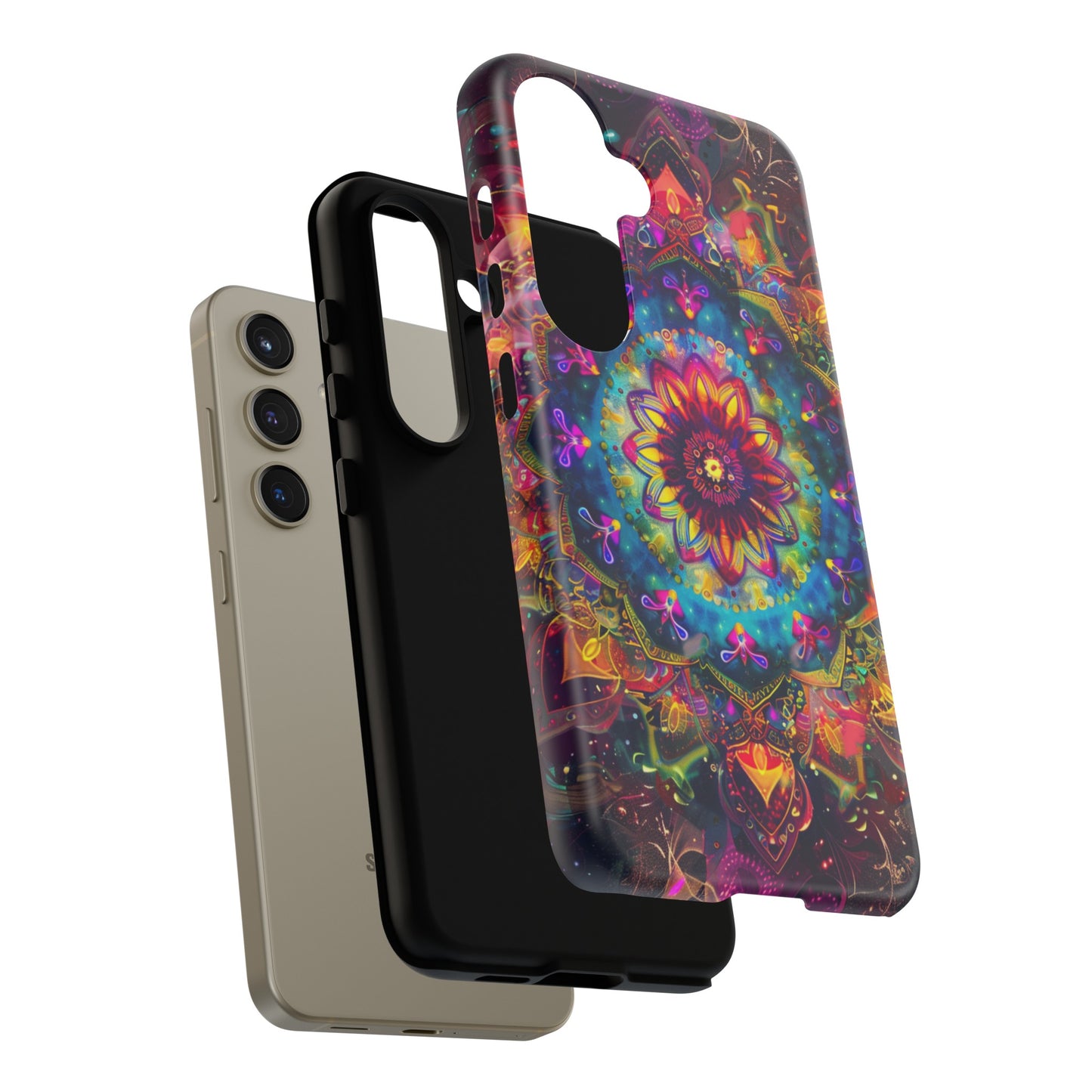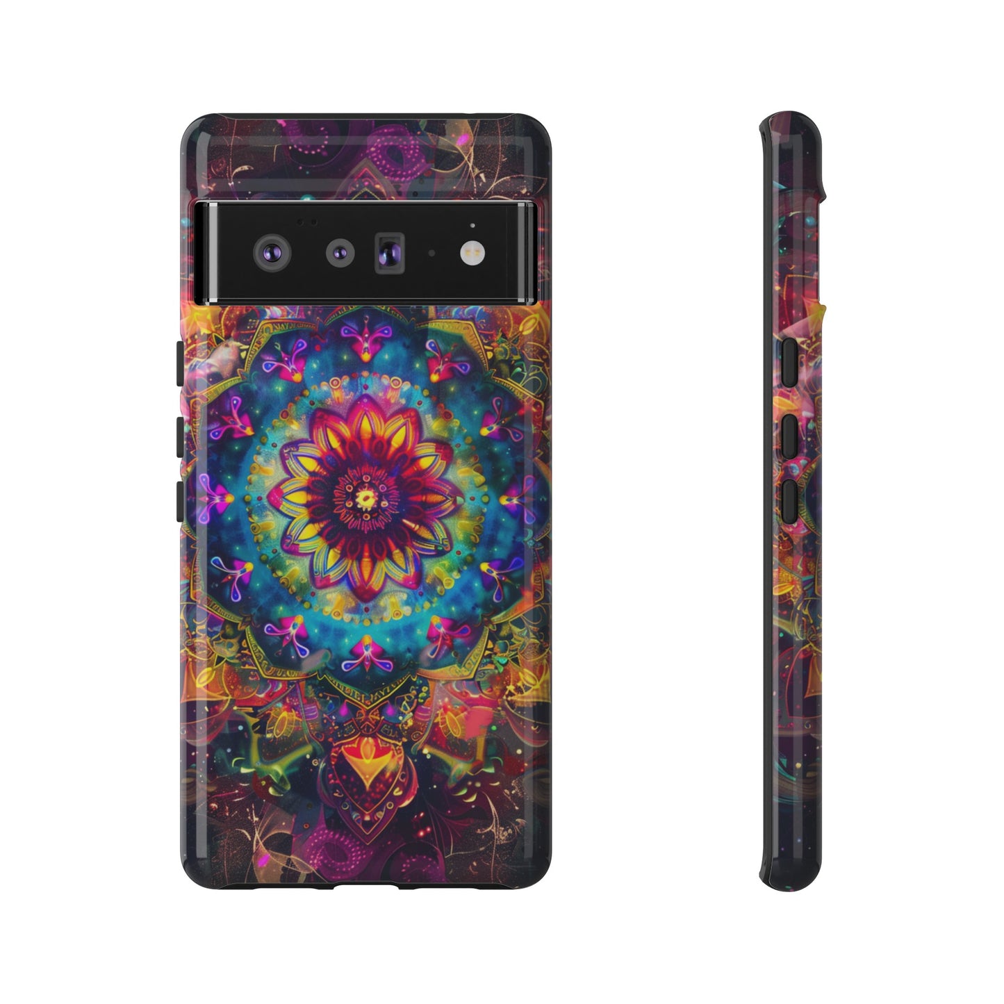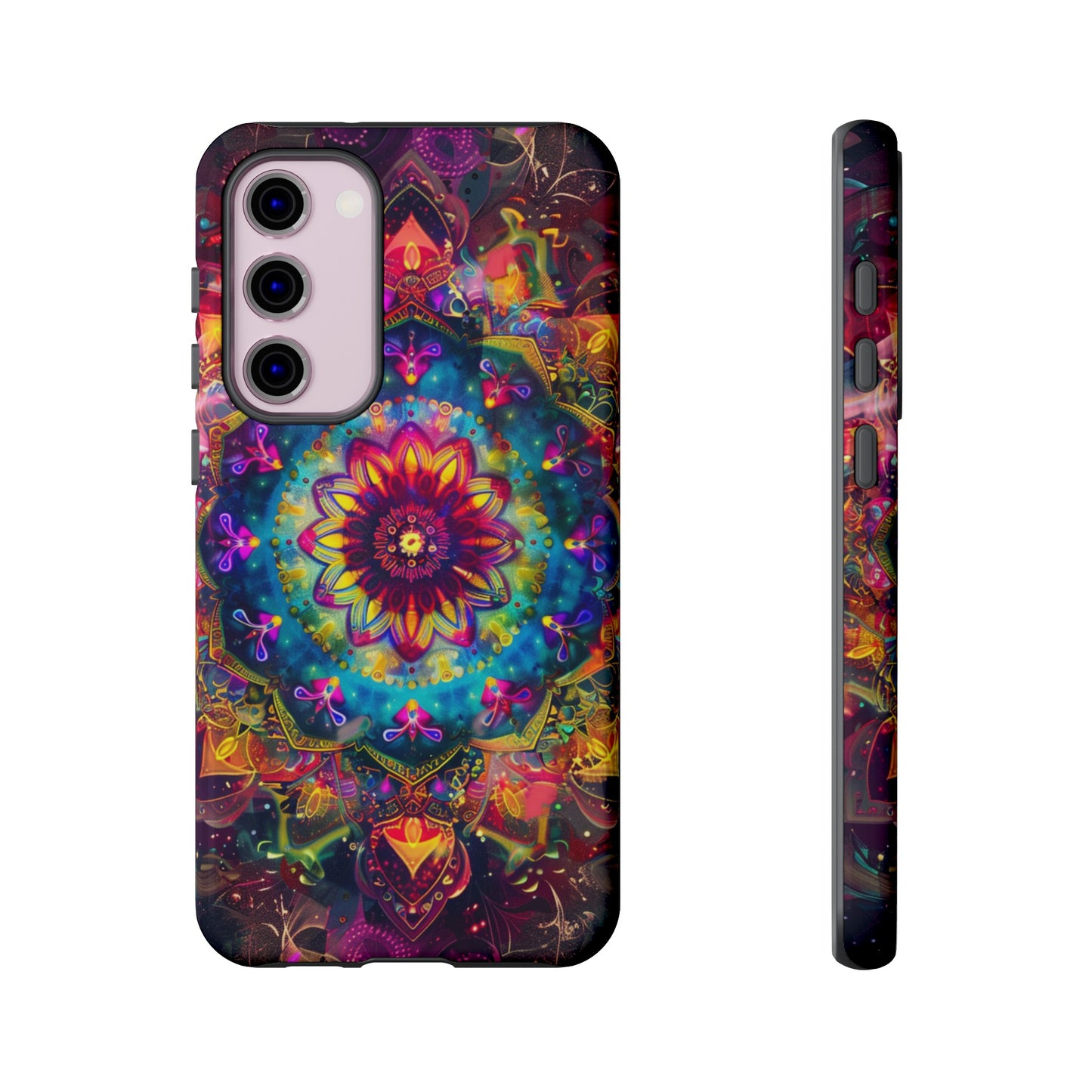 Elevate your device with the spiritual and cosmic elegance of our Cosmic Stained Glass Mandala Phone Case. Compatible with iPhone 15, 14, Pro Max, 13, 12, and Samsung Galaxy S24, S23, S22, S21, as well as Google Pixel devices, this case features a mesmerizing mandala design, rendered in the style of vibrant stained glass. The intricate patterns combine rich, cosmic colors that capture the essence of both the universe and spiritual symbolism. This case is not just a protective accessory; it’s a piece of art that offers a daily reminder of unity and harmony.