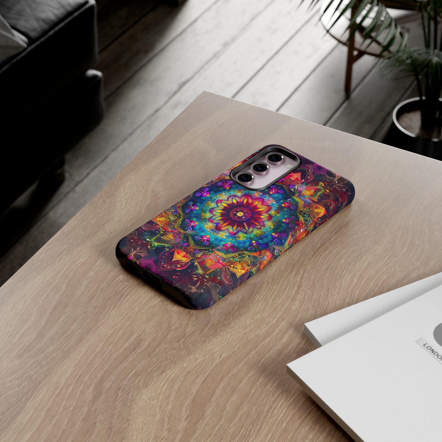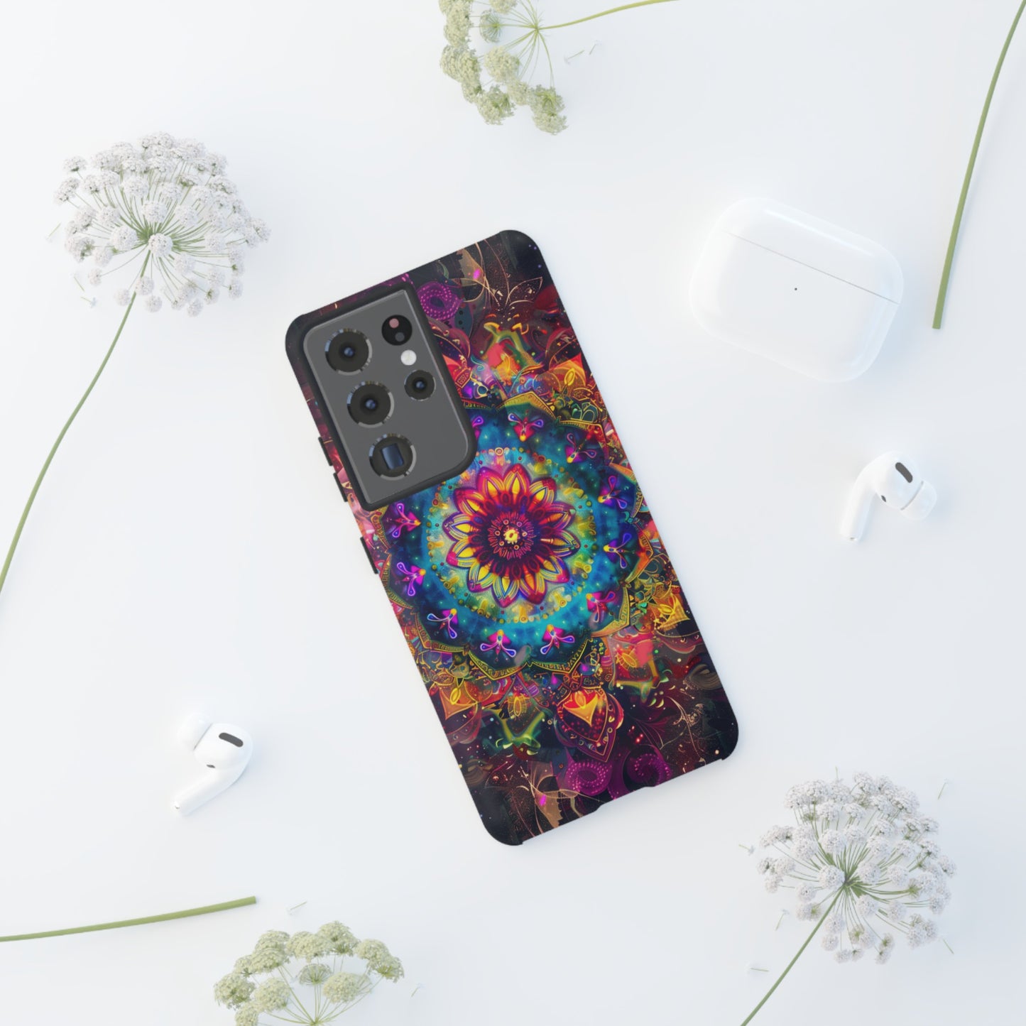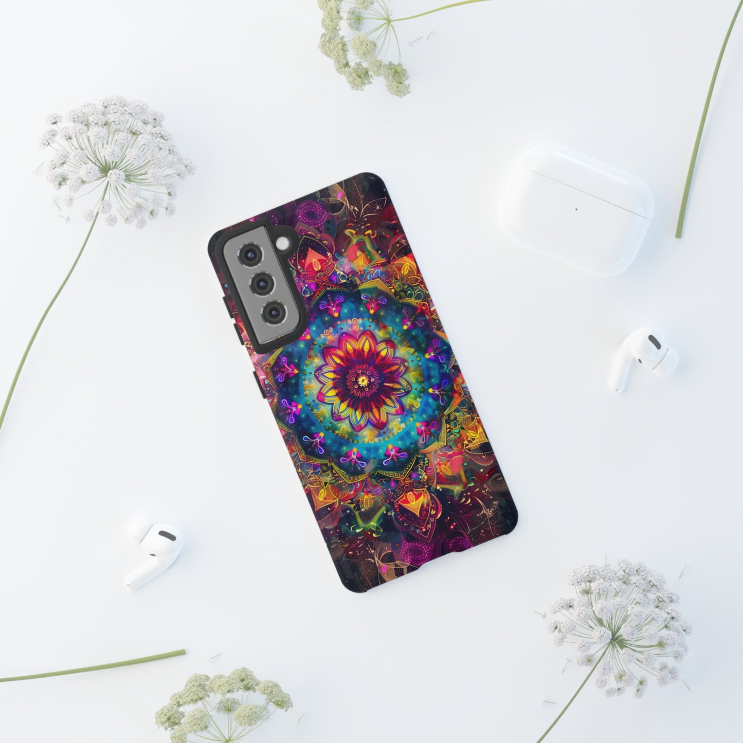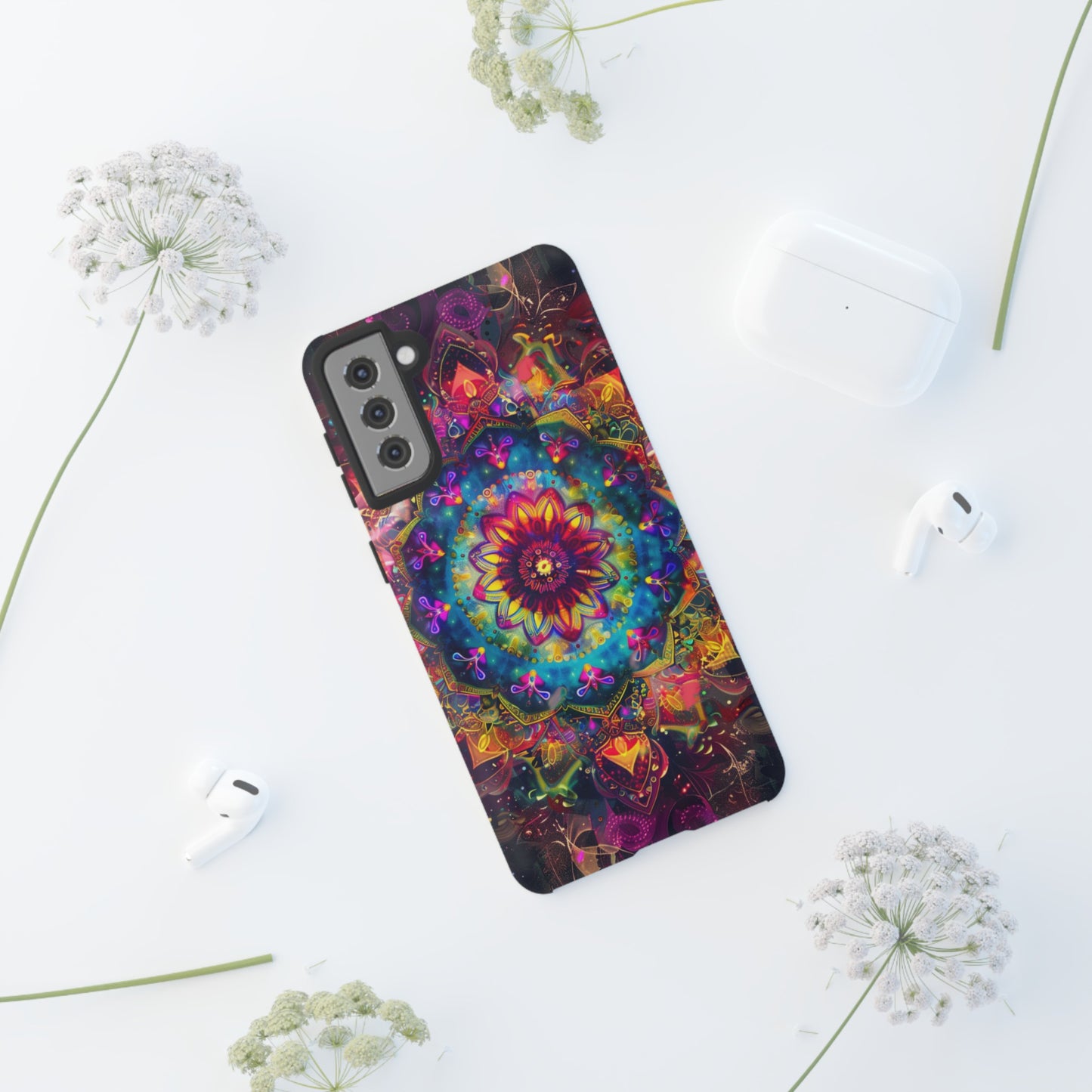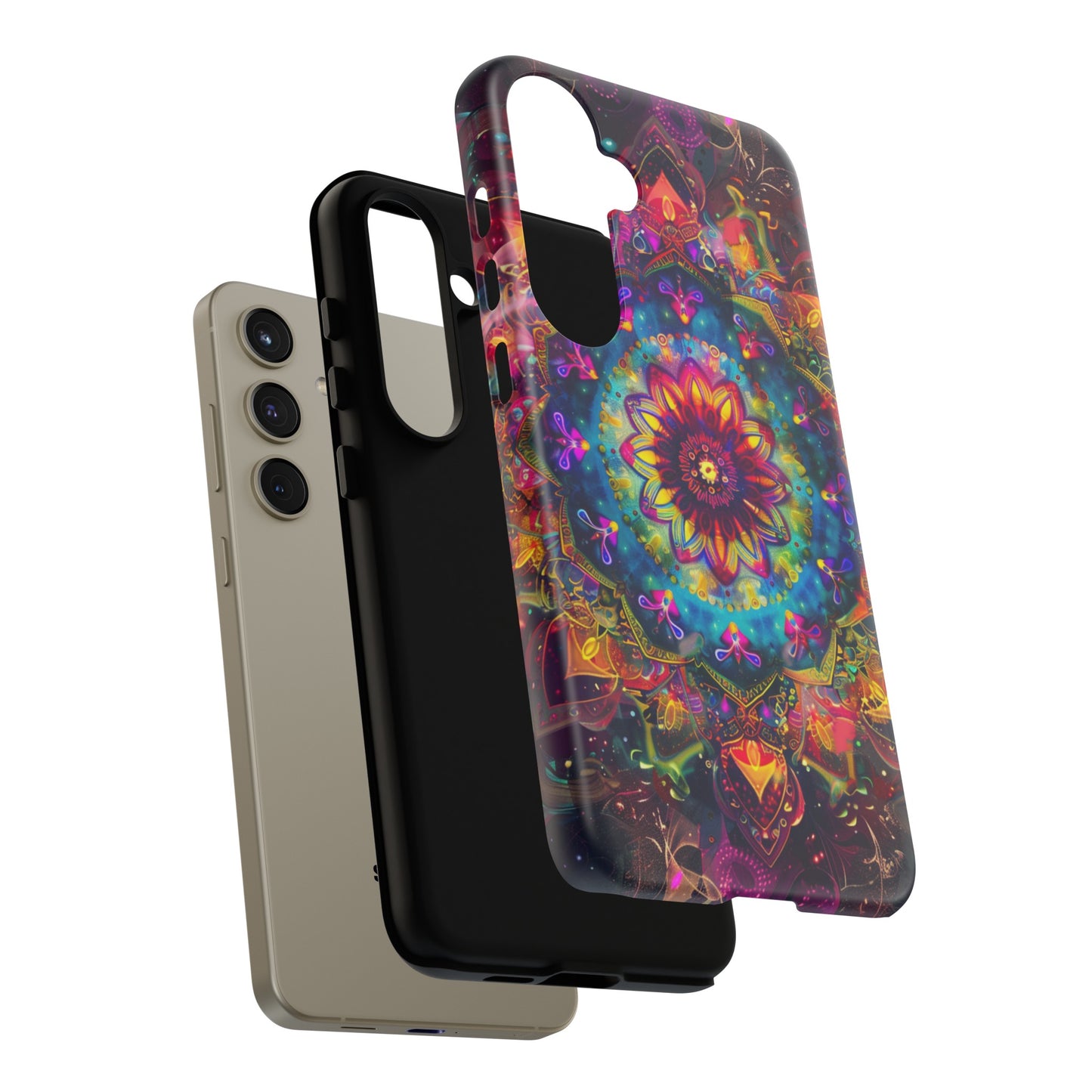 Elevate your device with the spiritual and cosmic elegance of our Cosmic Stained Glass Mandala Phone Case. Compatible with iPhone 15, 14, Pro Max, 13, 12, and Samsung Galaxy S24, S23, S22, S21, as well as Google Pixel devices, this case features a mesmerizing mandala design, rendered in the style of vibrant stained glass. The intricate patterns combine rich, cosmic colors that capture the essence of both the universe and spiritual symbolism. This case is not just a protective accessory; it’s a piece of art that offers a daily reminder of unity and harmony.
