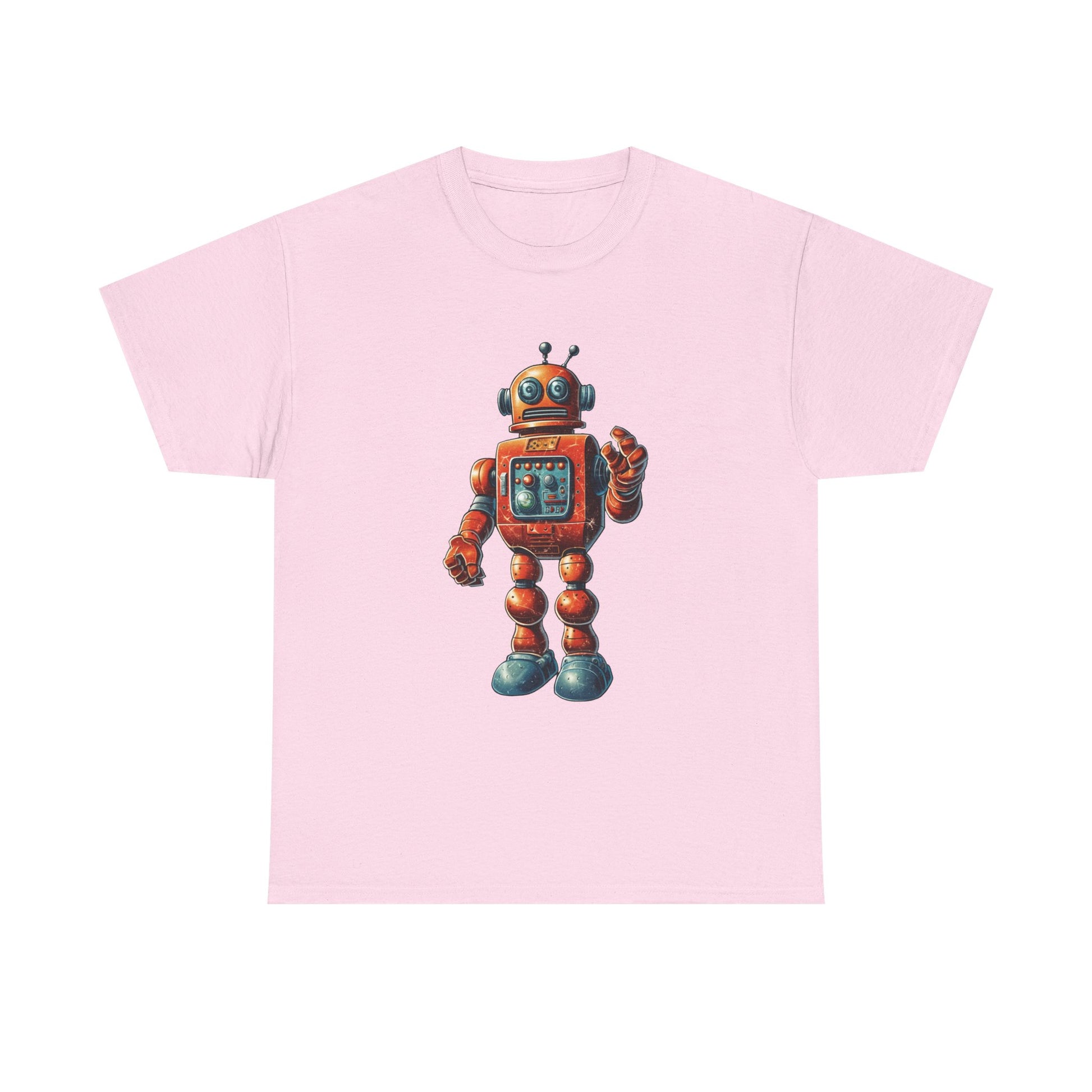 Drawing from classic mid-century robot toy design, this shirt blends retro futurism with clean sci-fi style. It’s made for collectors, sci-fi fans, and anyone who appreciates the era when the future was imagined in metal, gears, and bold colors.