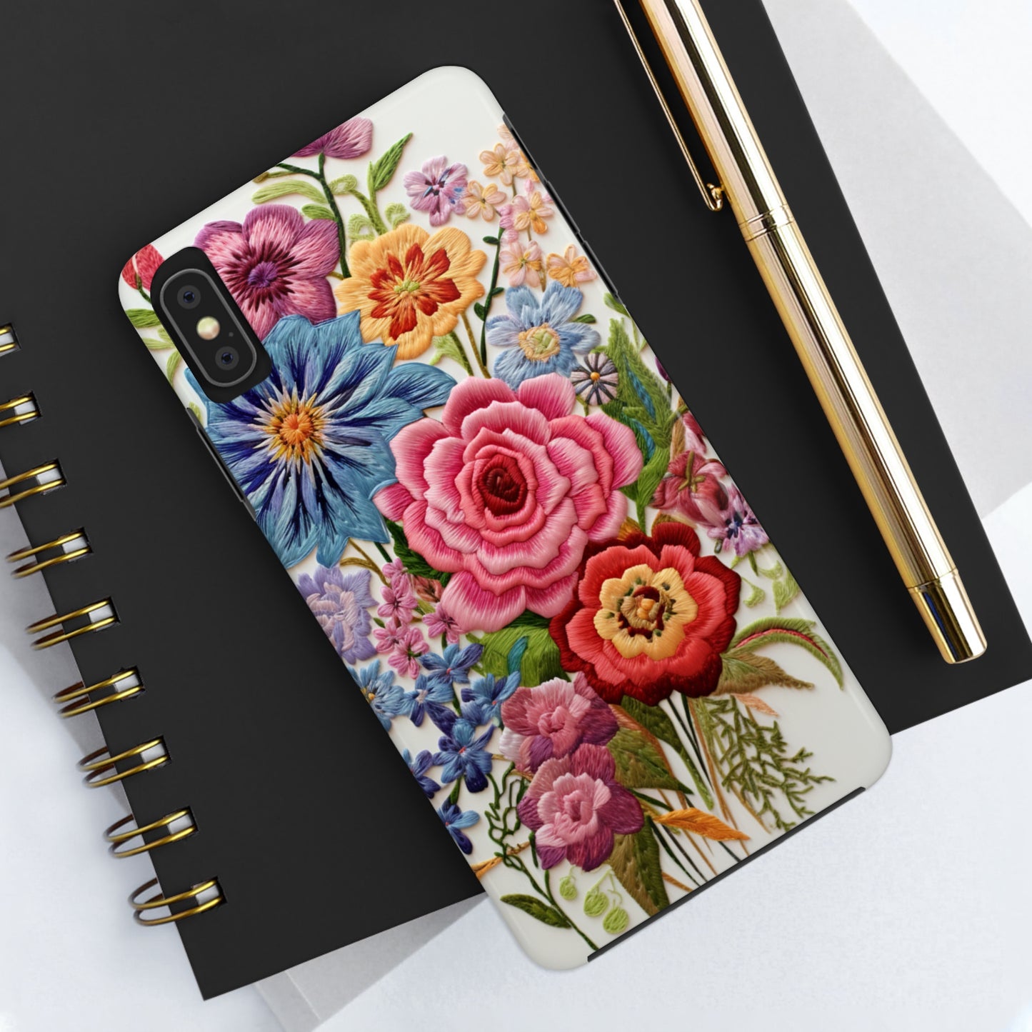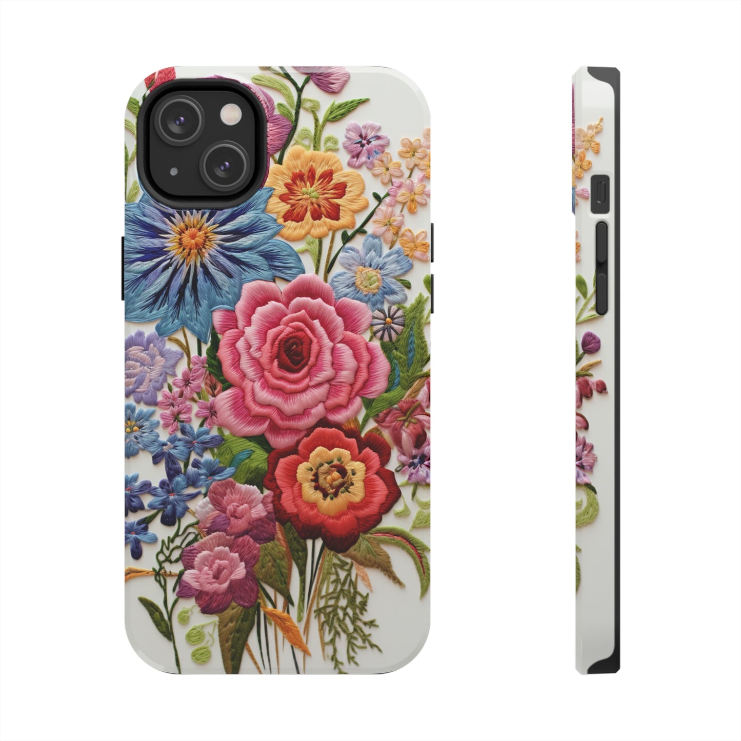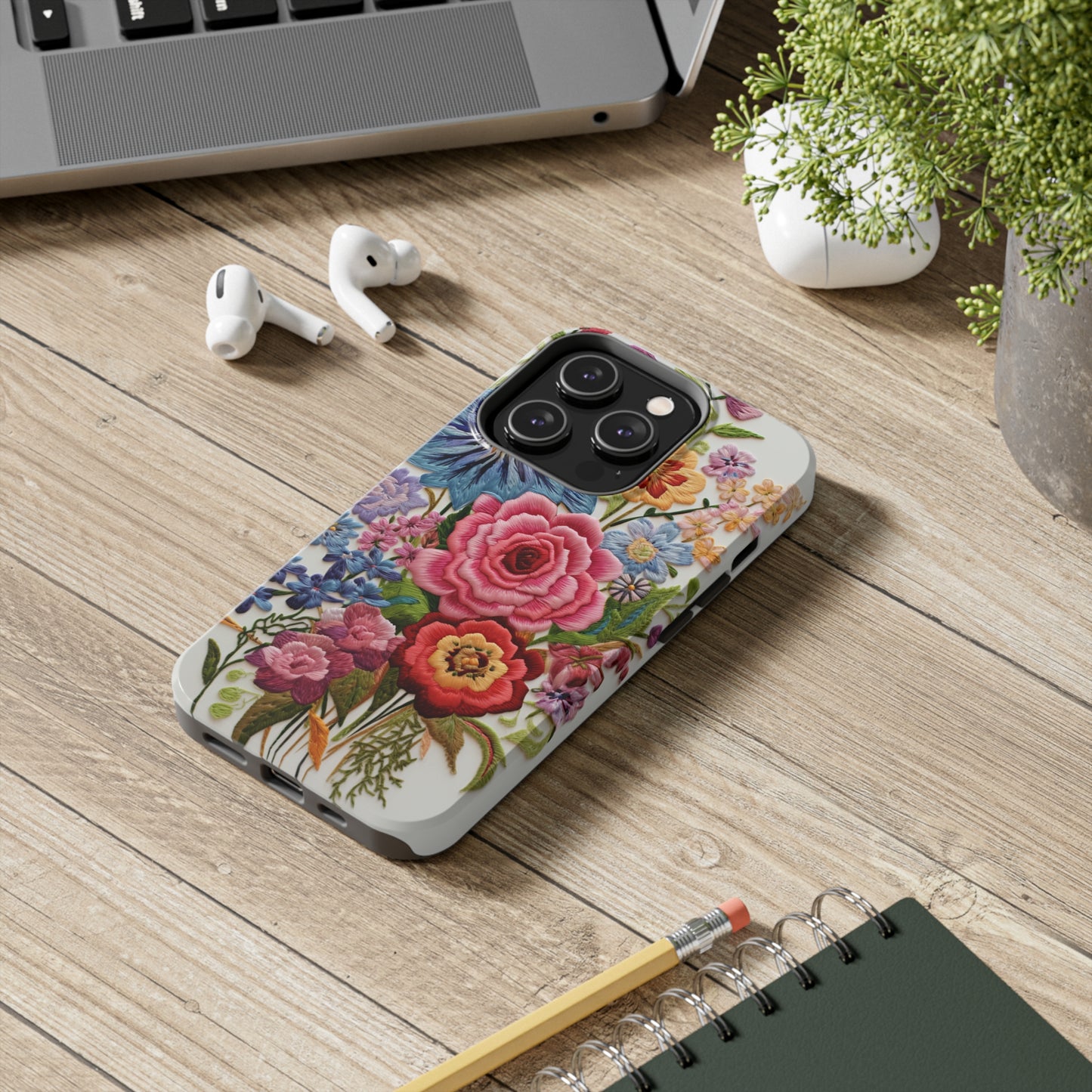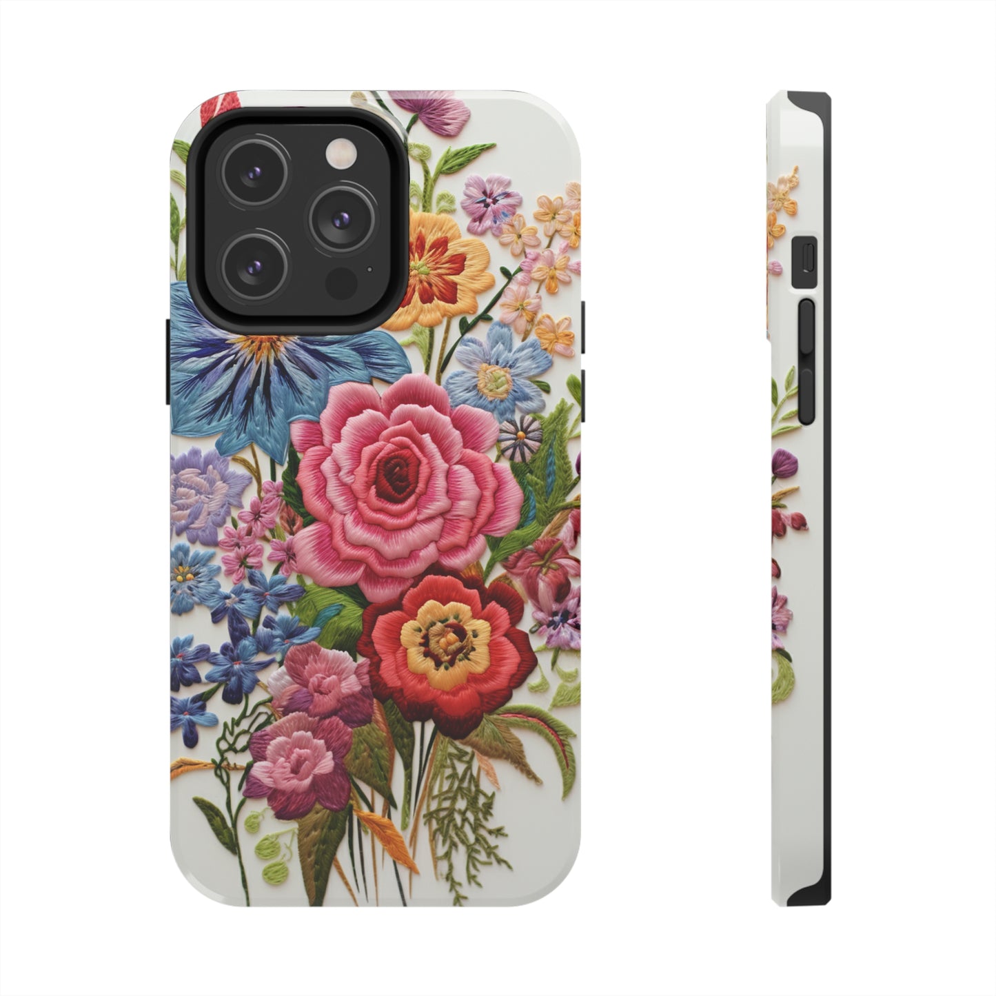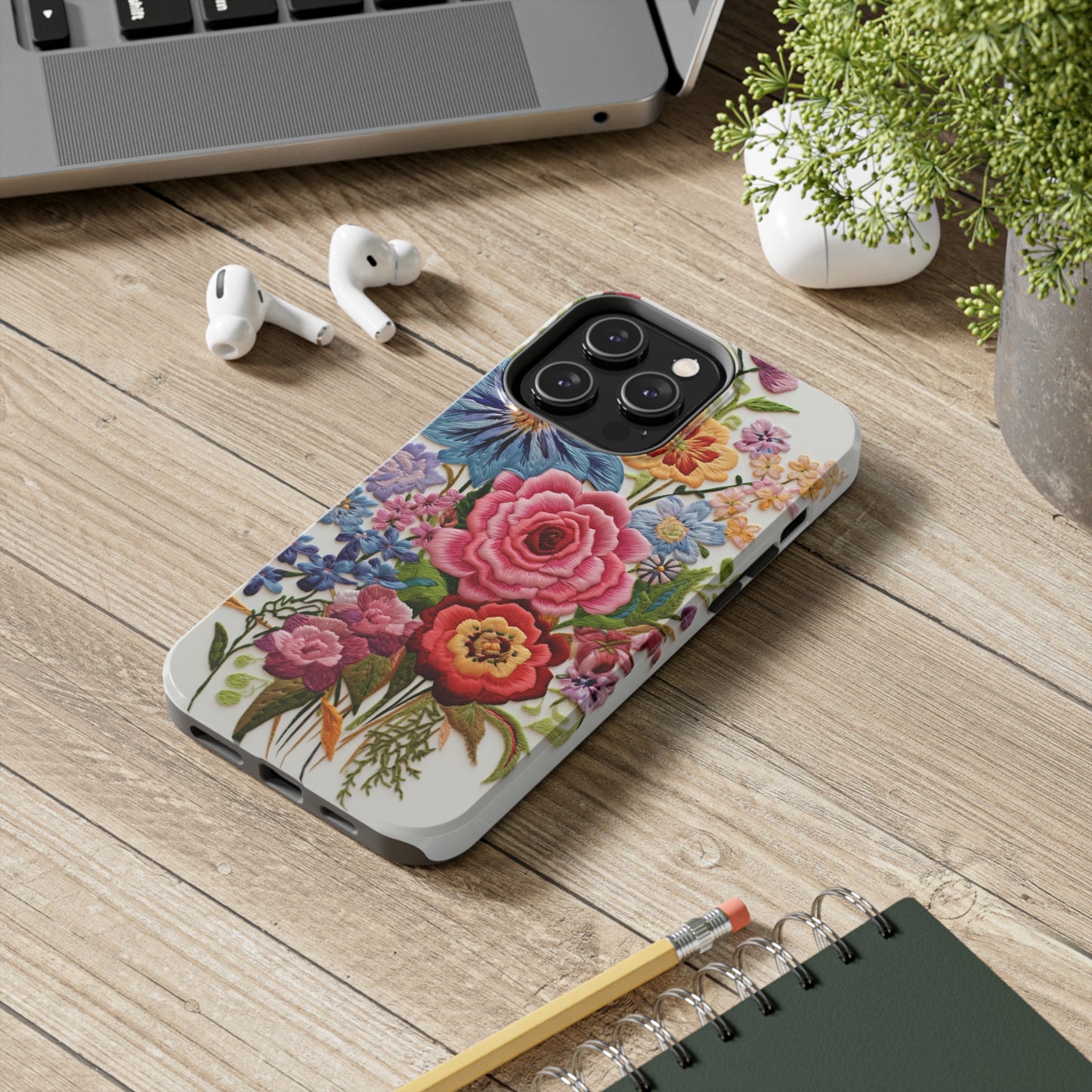 Embroidery Style Floral Aesthetic Flowers in Retro Vintage Tough Case iPhone Case