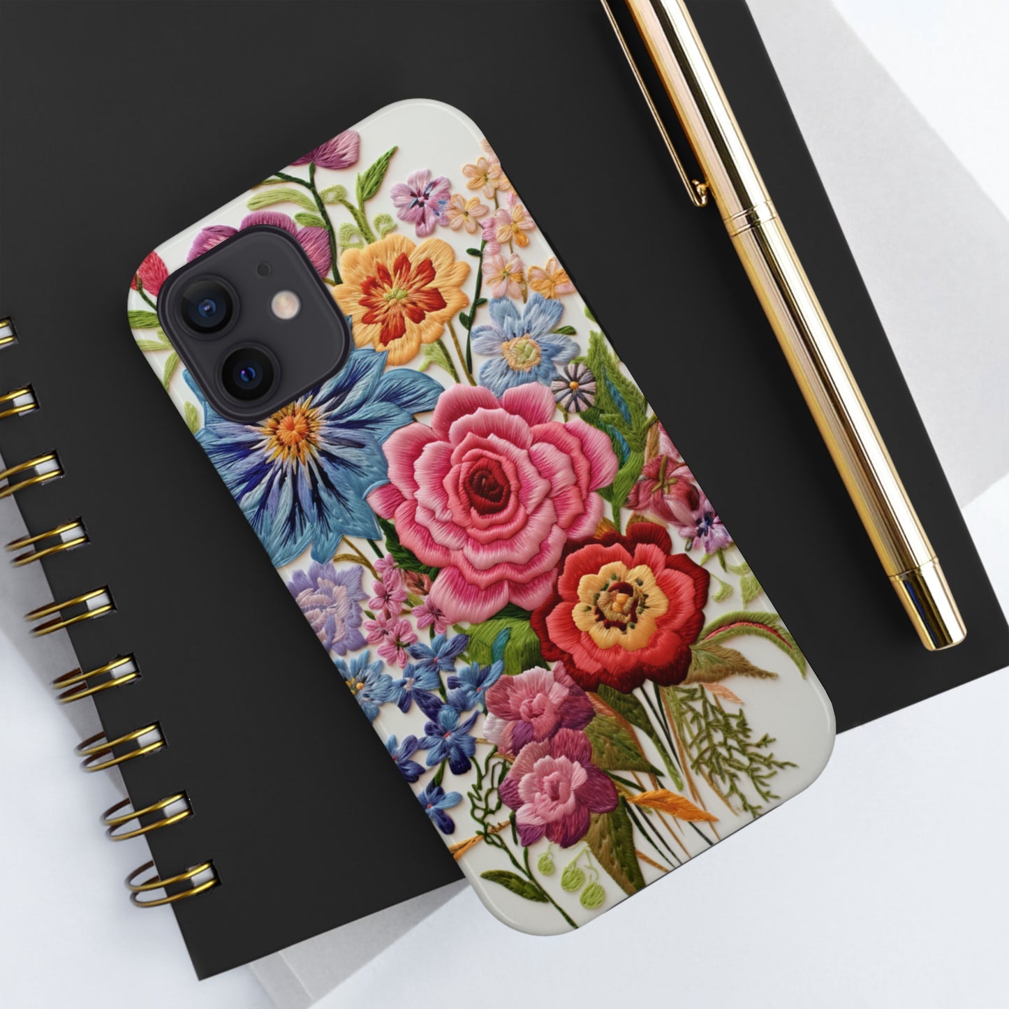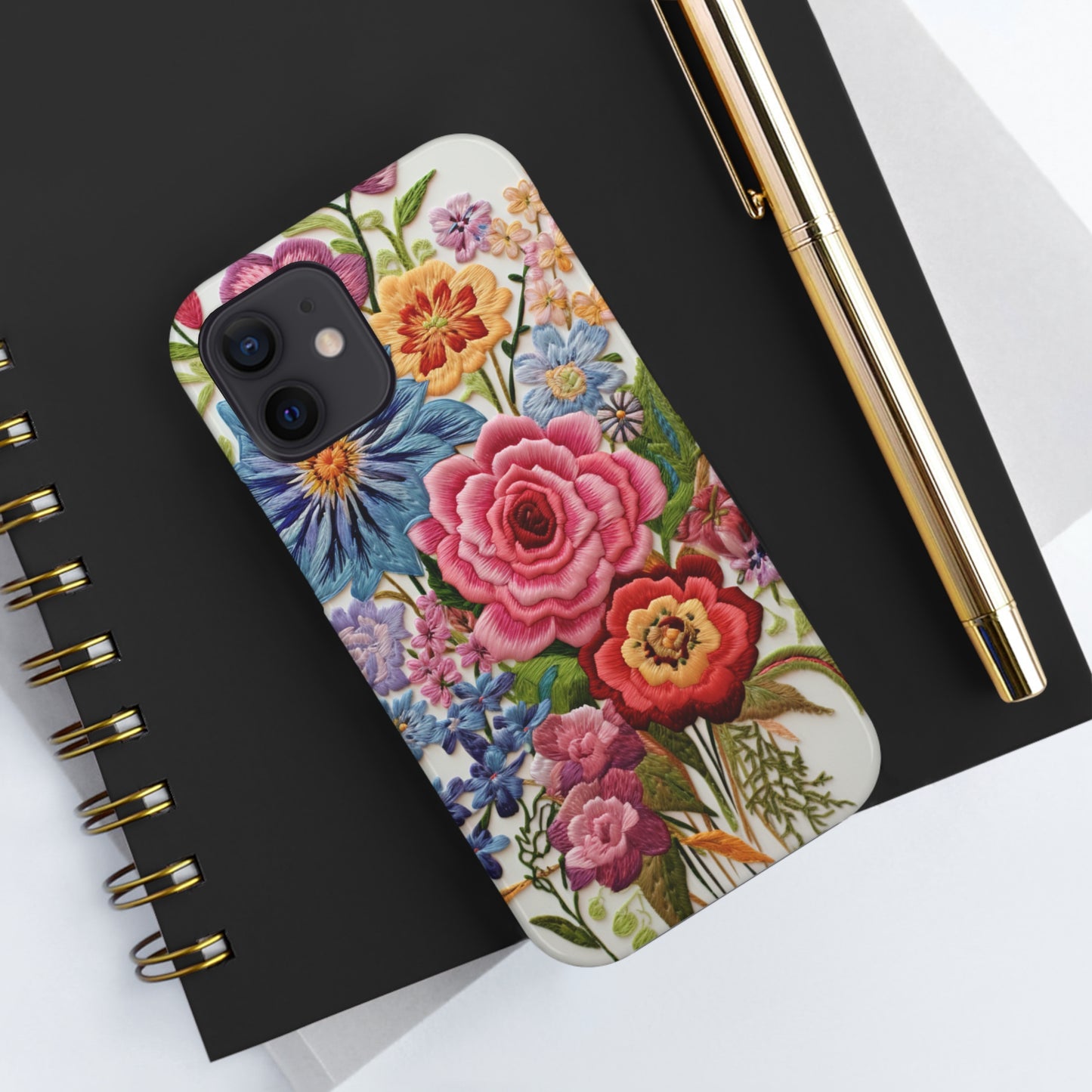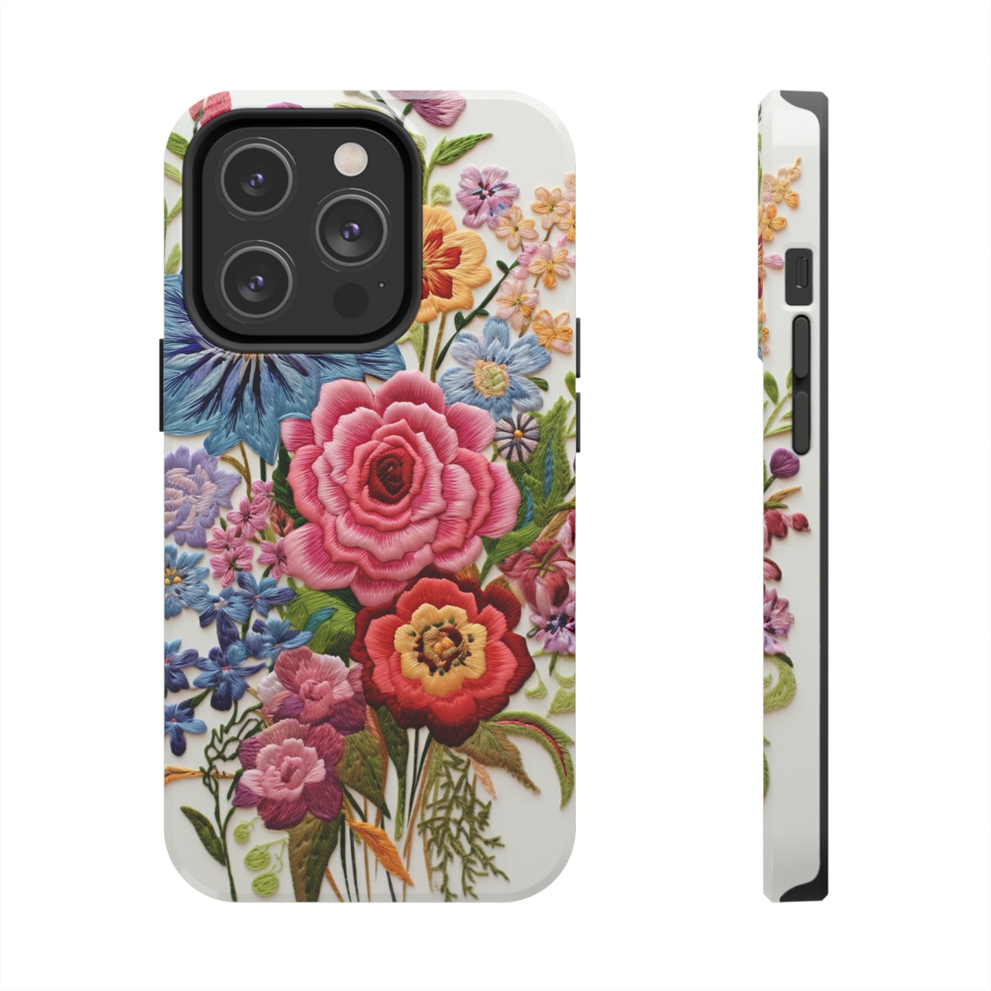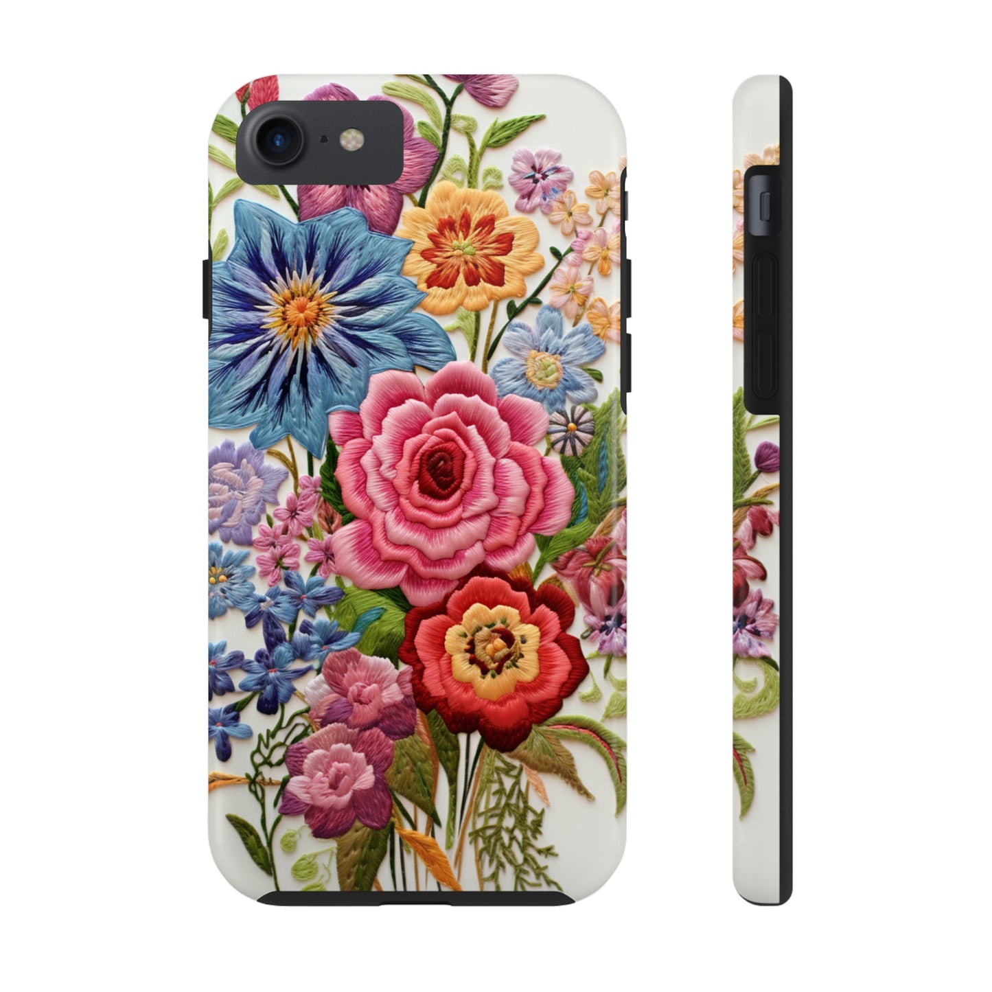 Embroidery Style Floral Aesthetic Flowers in Retro Vintage Tough Case iPhone Case