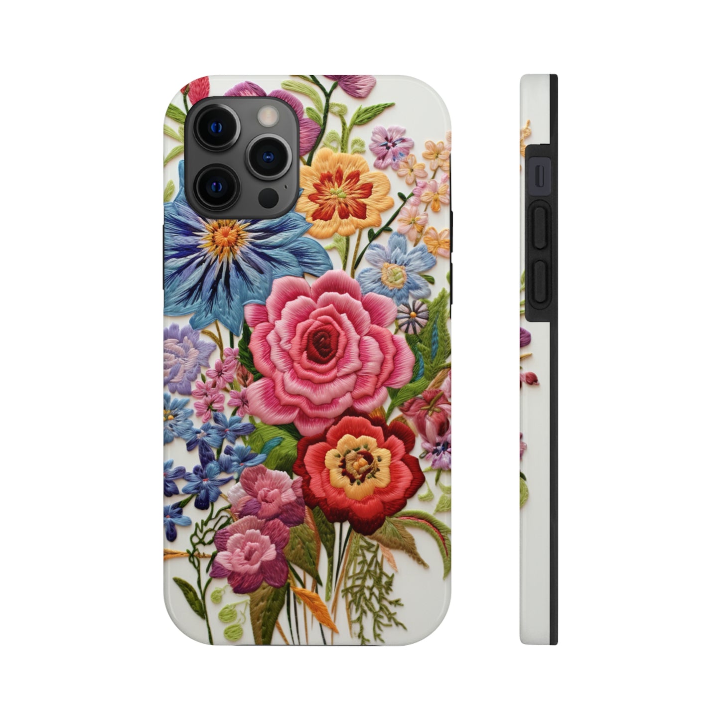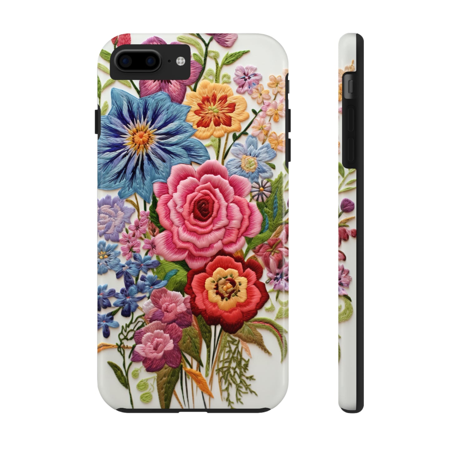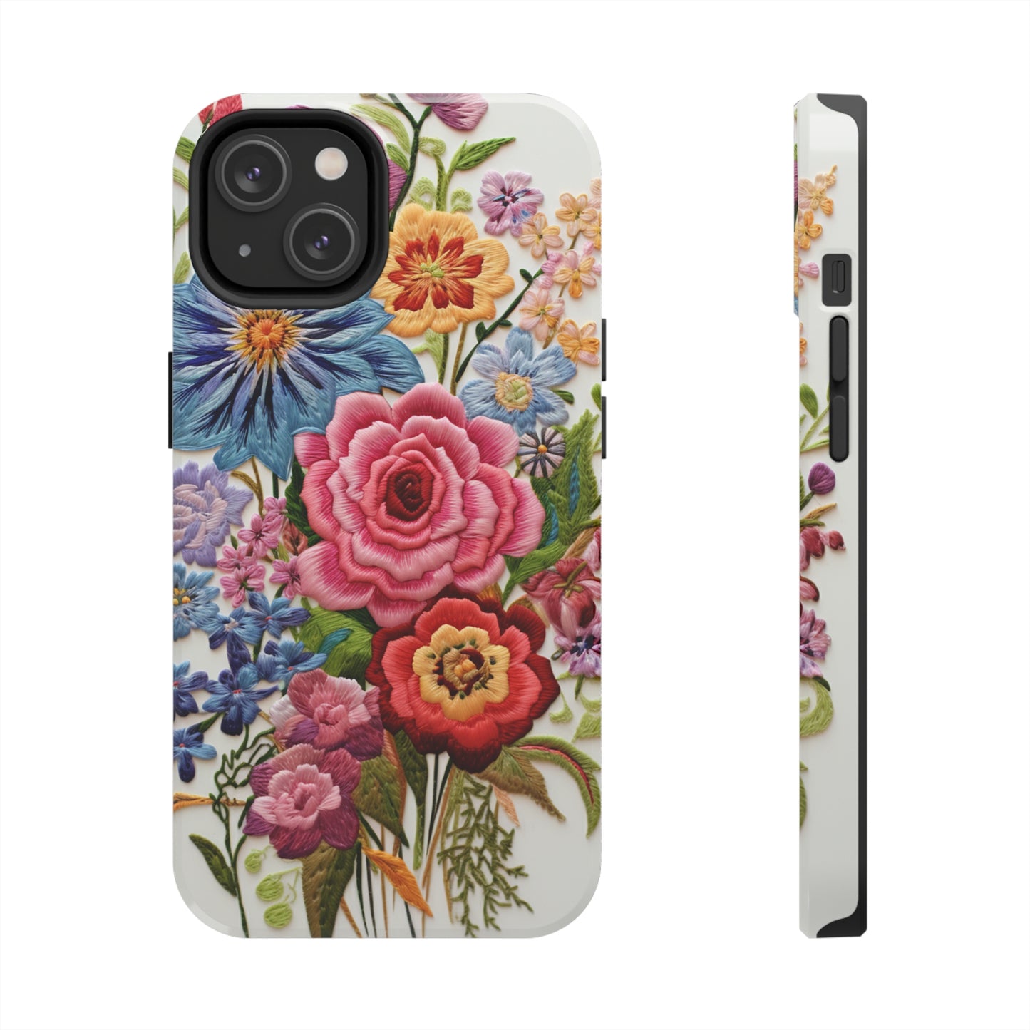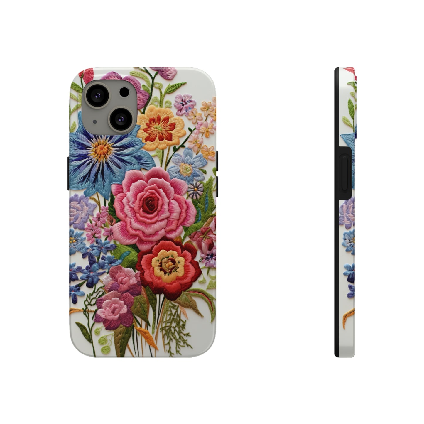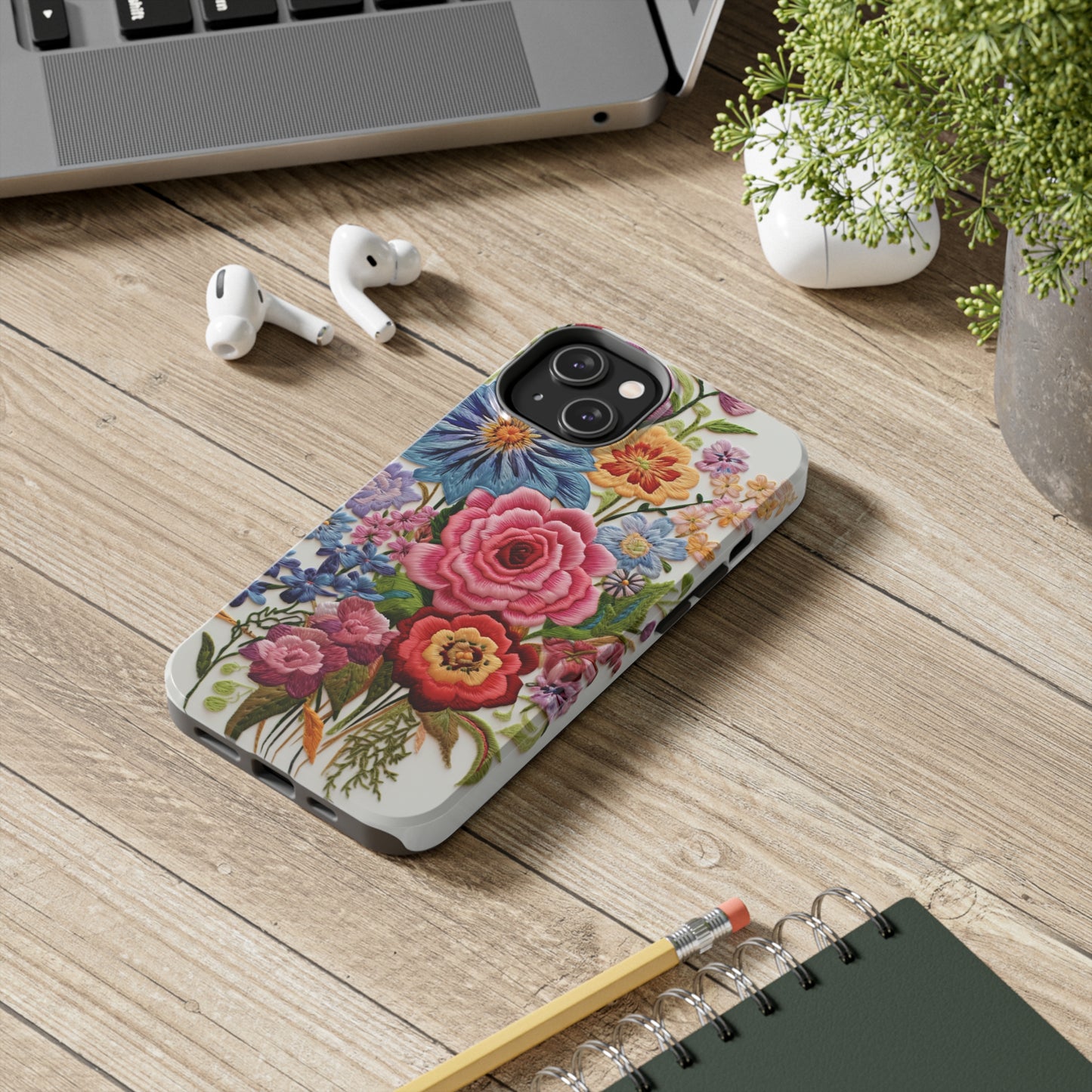 Embroidery Style Floral Aesthetic Flowers in Retro Vintage Tough Case iPhone Case