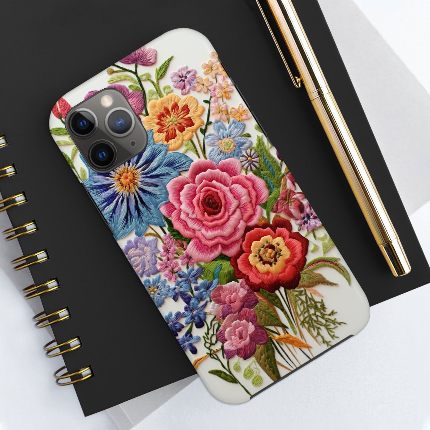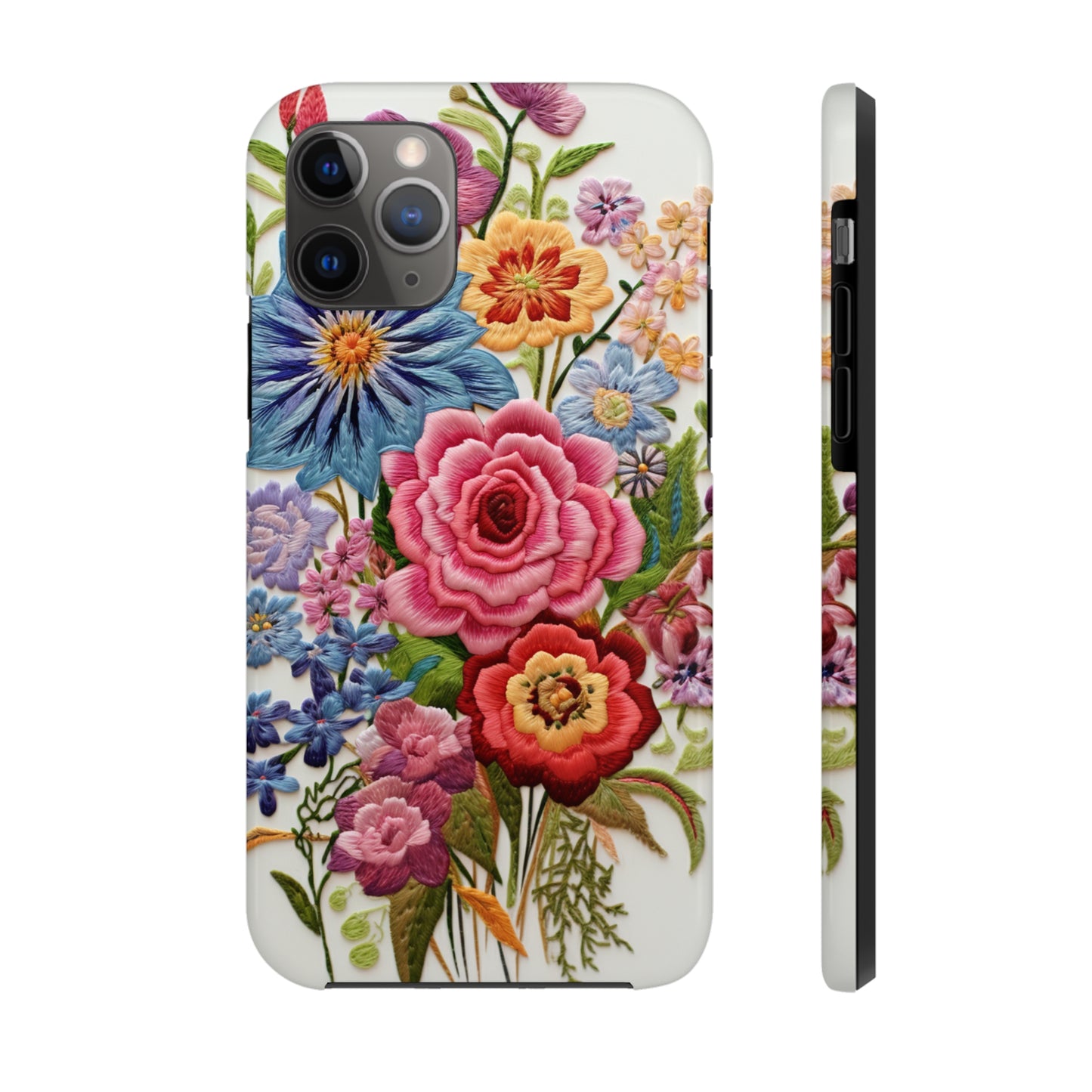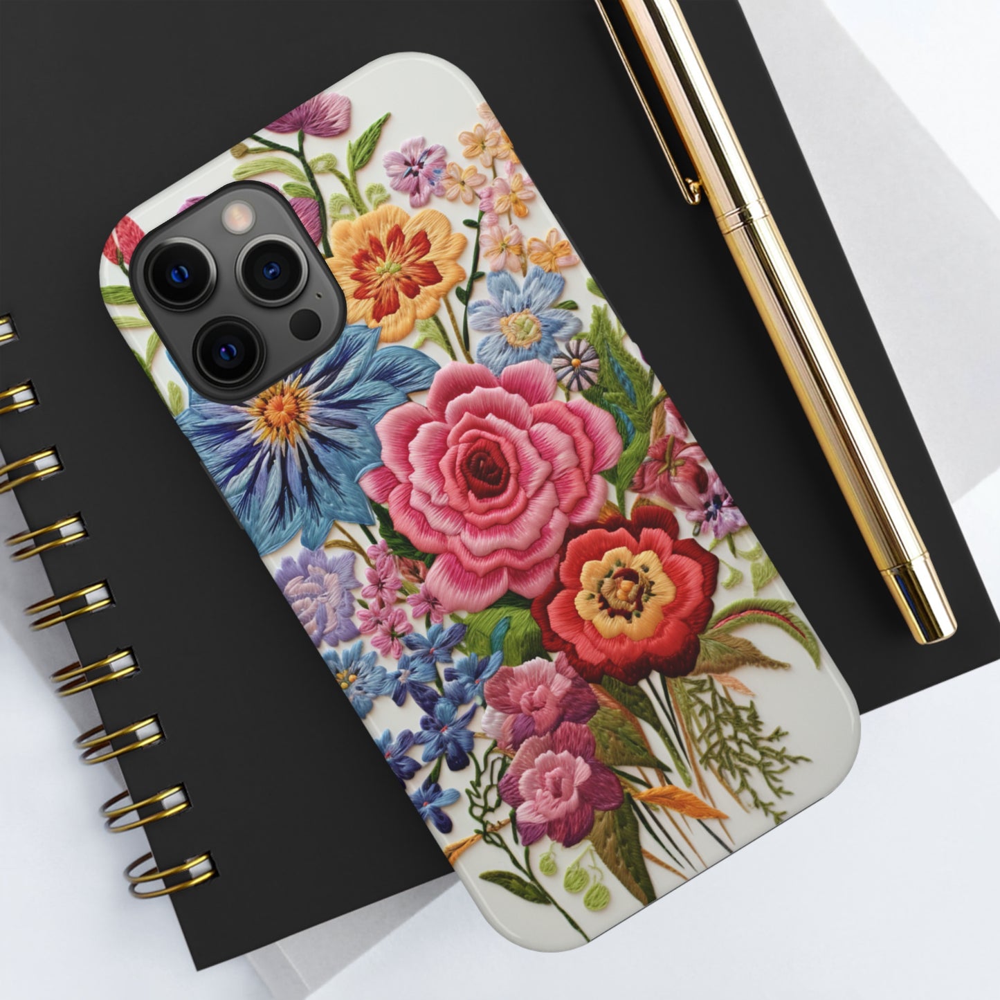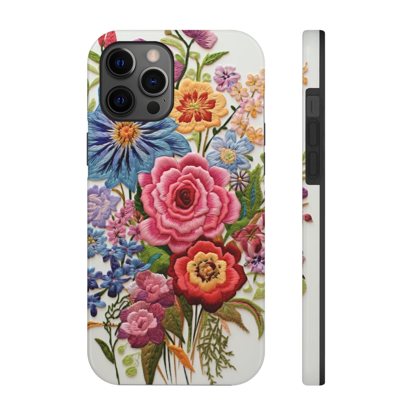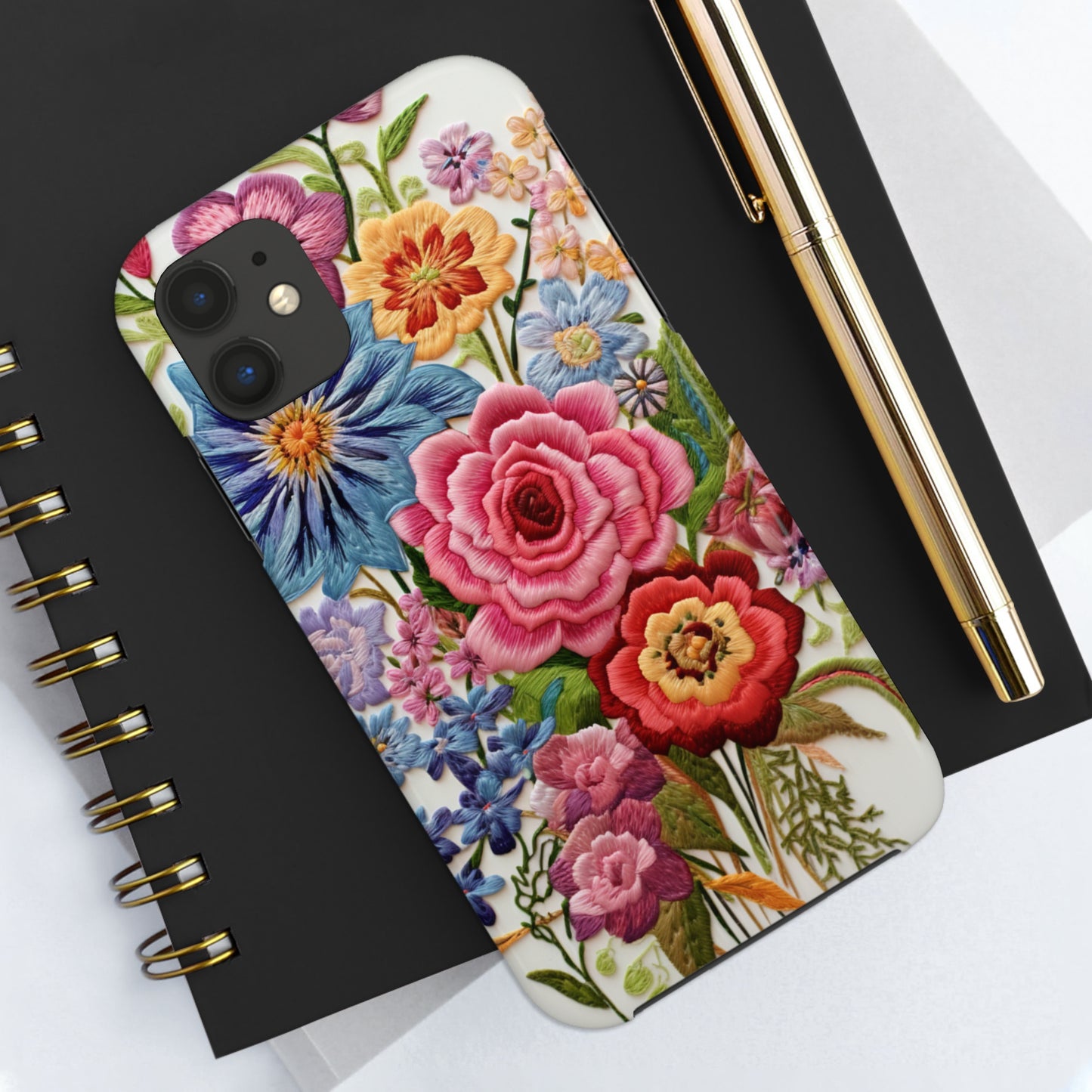 Embroidery Style Floral Aesthetic Flowers in Retro Vintage Tough Case iPhone Case