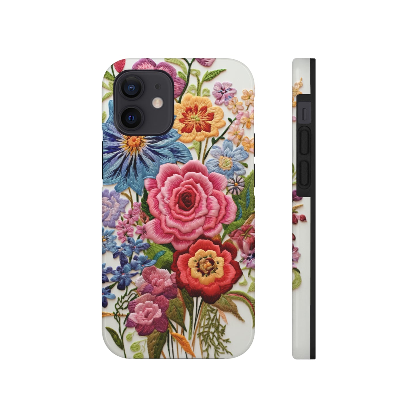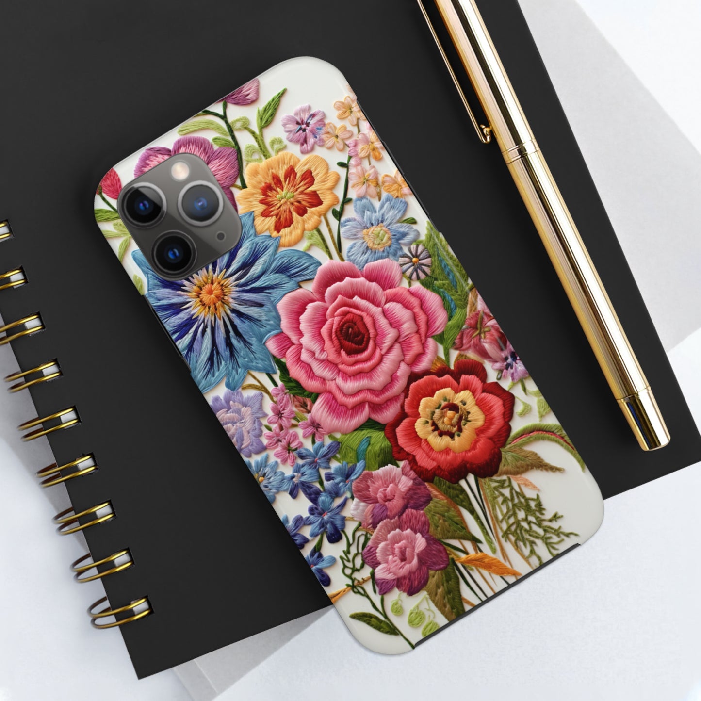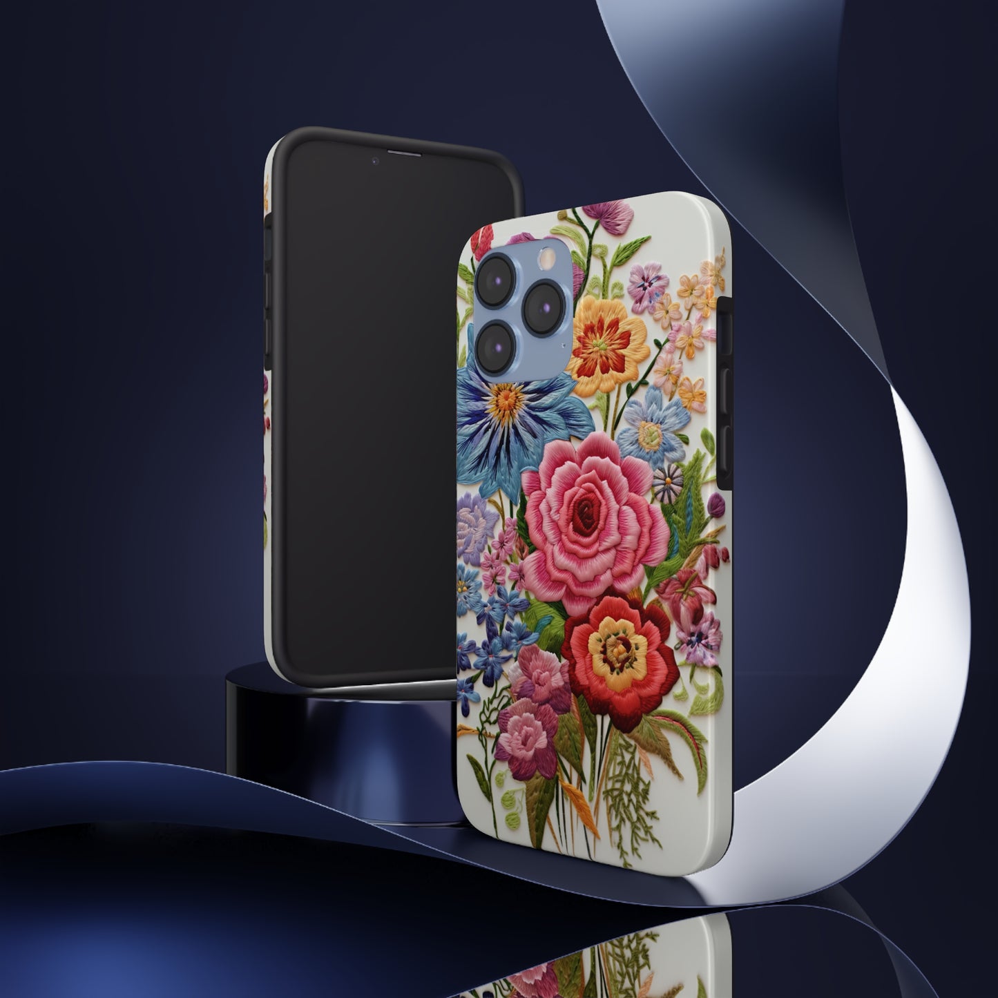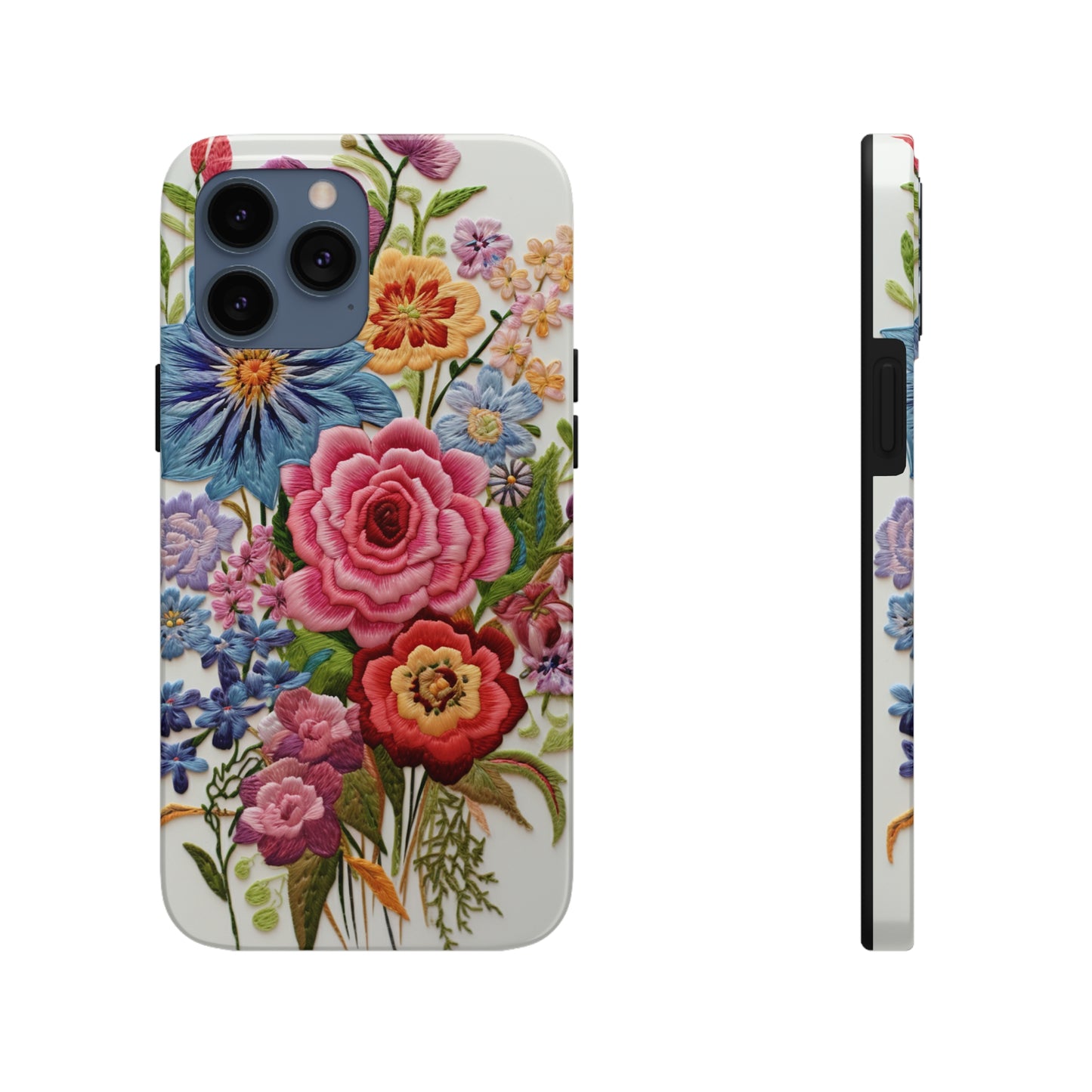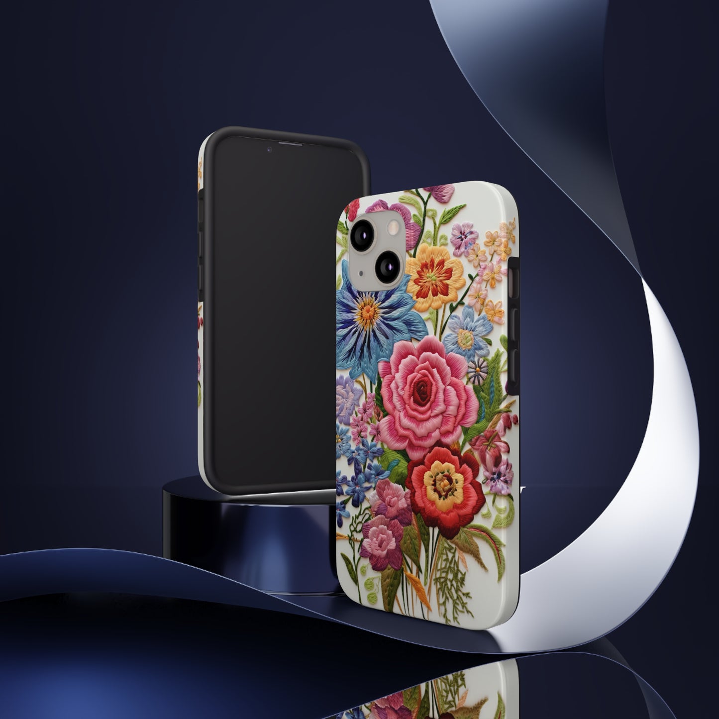 Embroidery Style Floral Aesthetic Flowers in Retro Vintage Tough Case iPhone Case