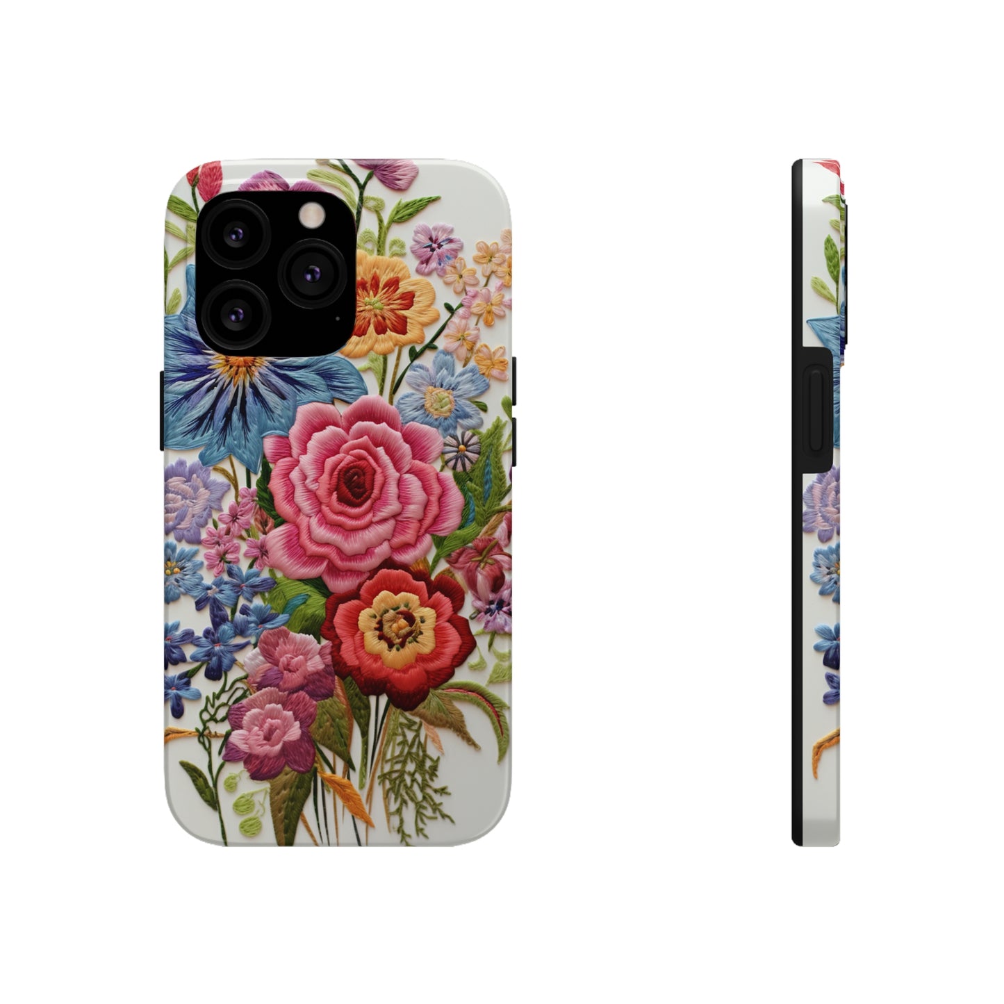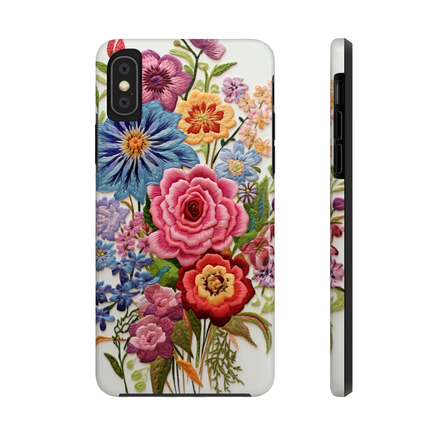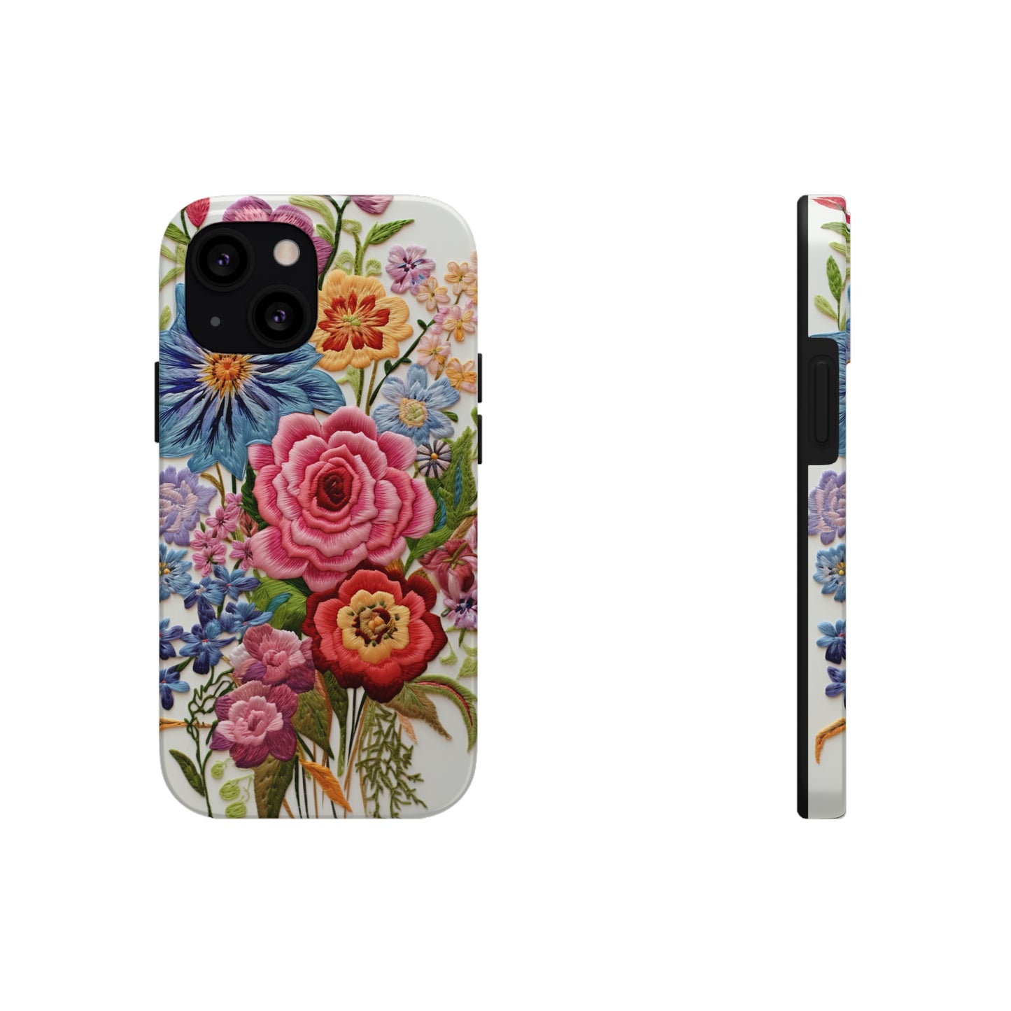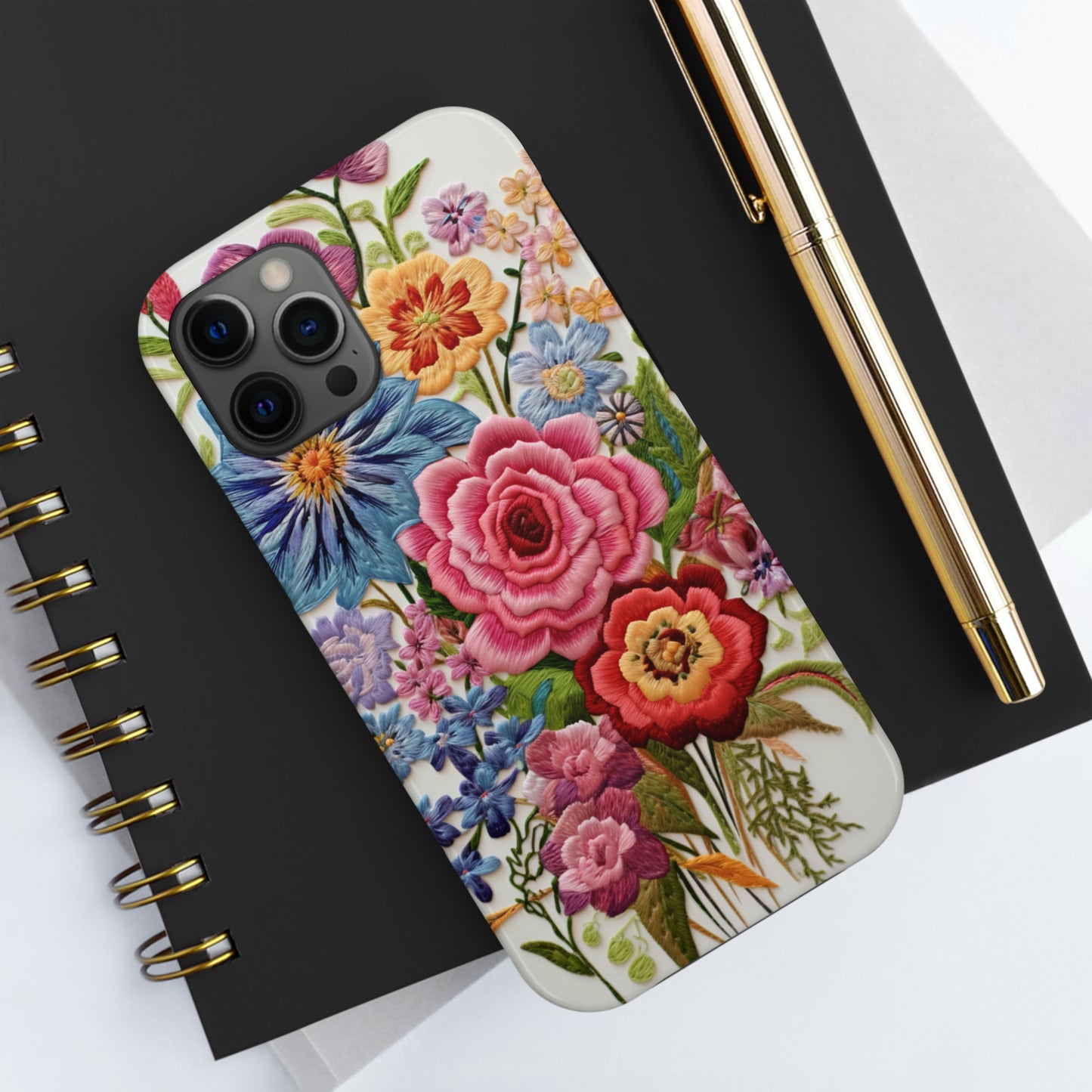 Embroidery Style Floral Aesthetic Flowers in Retro Vintage Tough Case iPhone Case