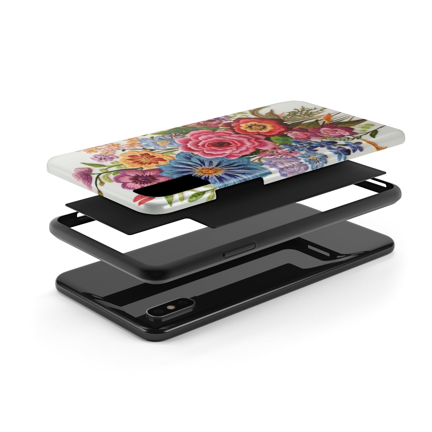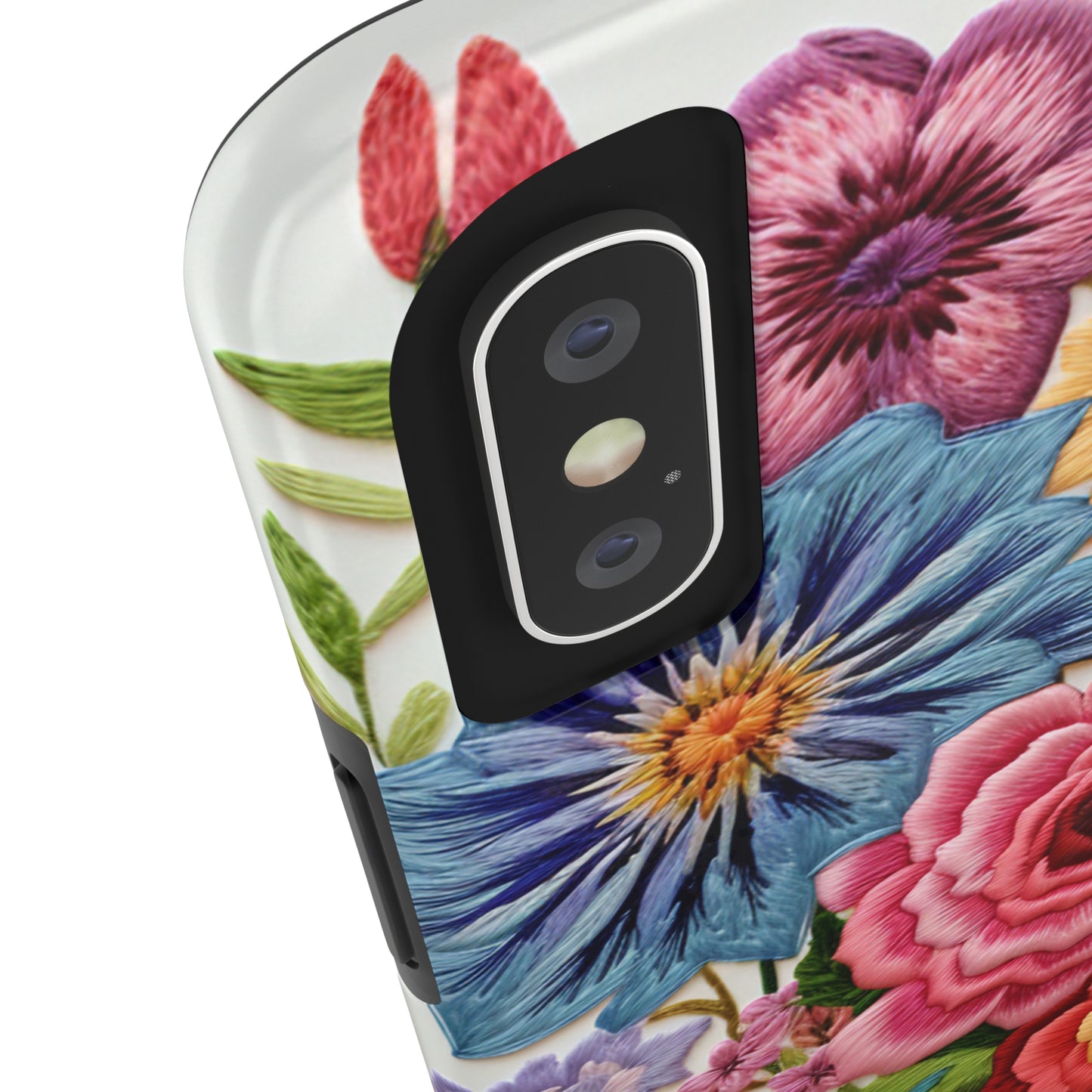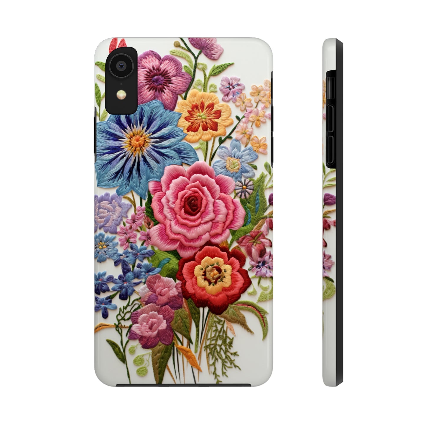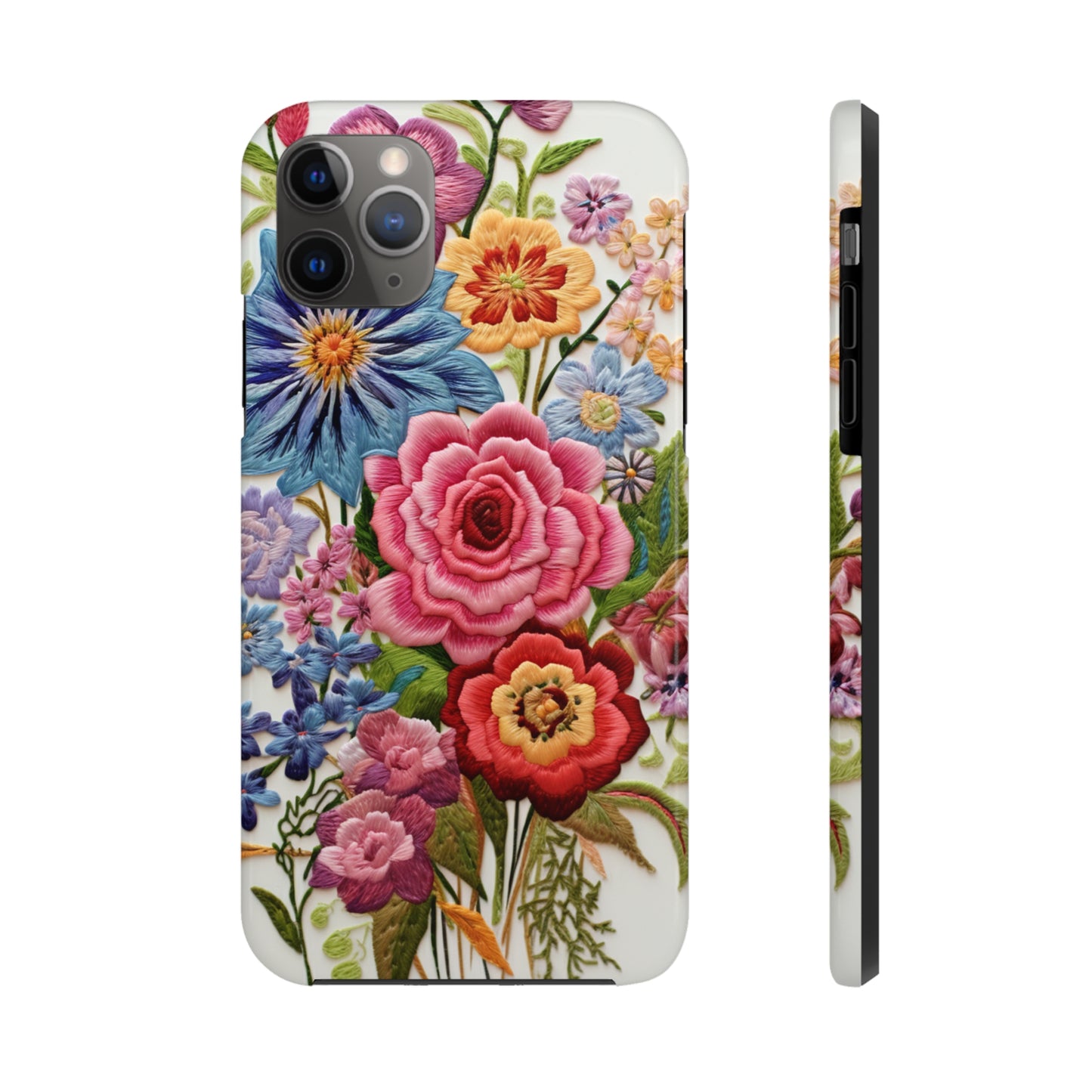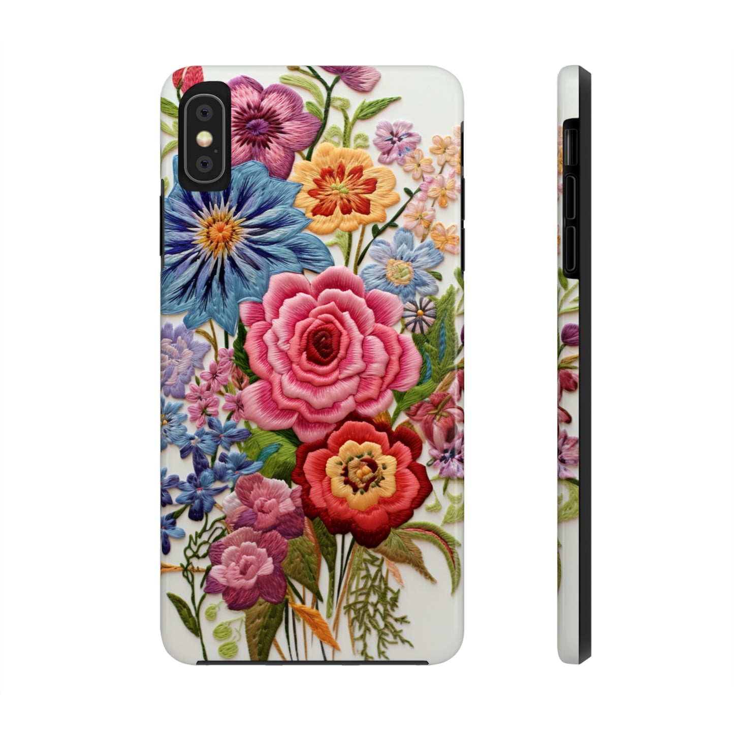 Embroidery Style Floral Aesthetic Flowers in Retro Vintage Tough Case iPhone Case